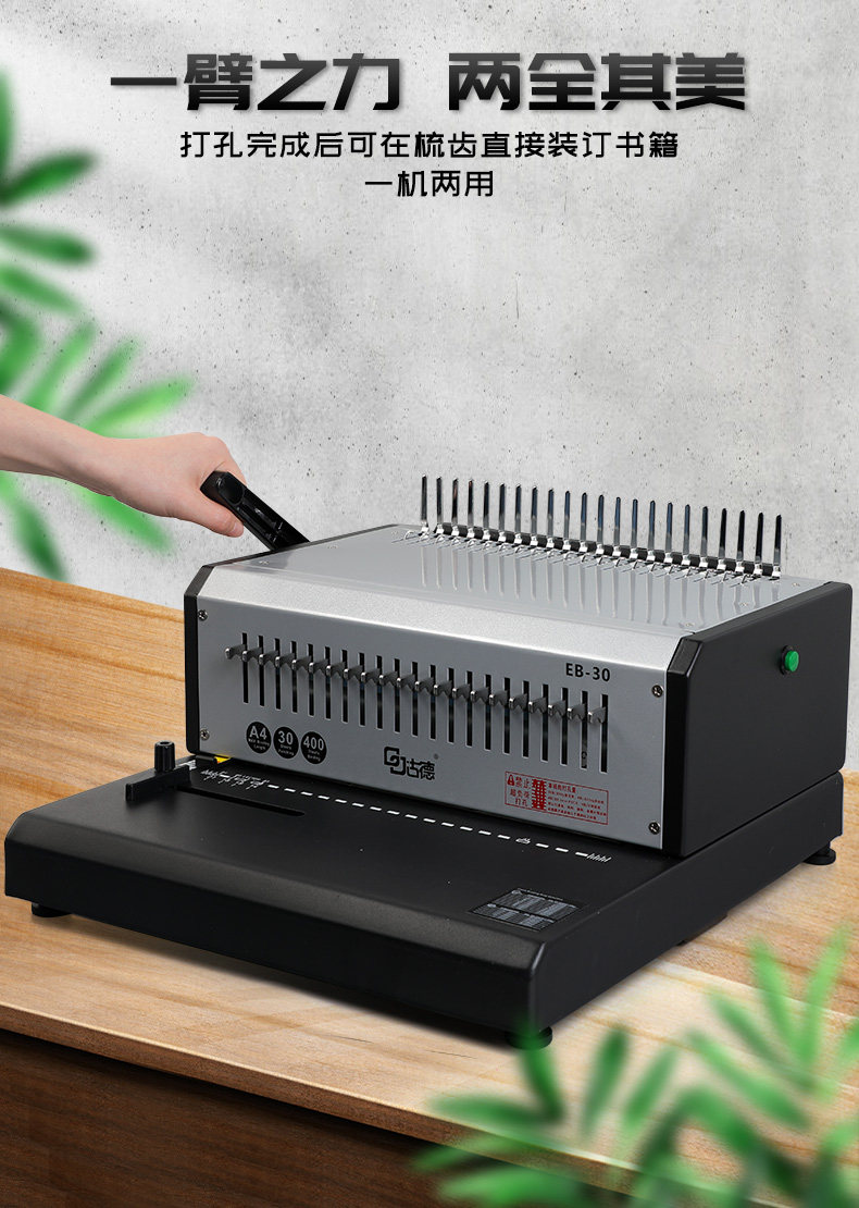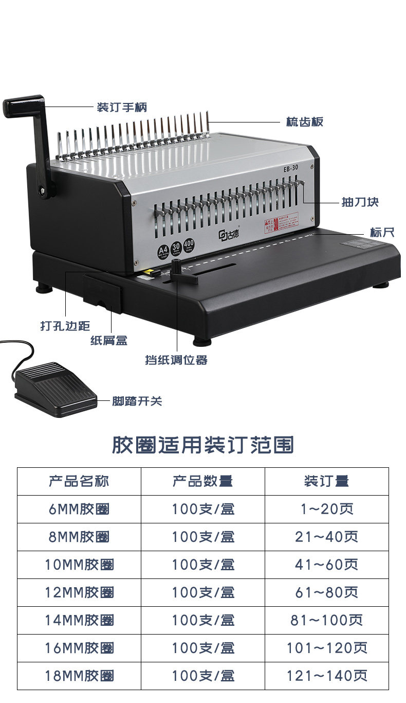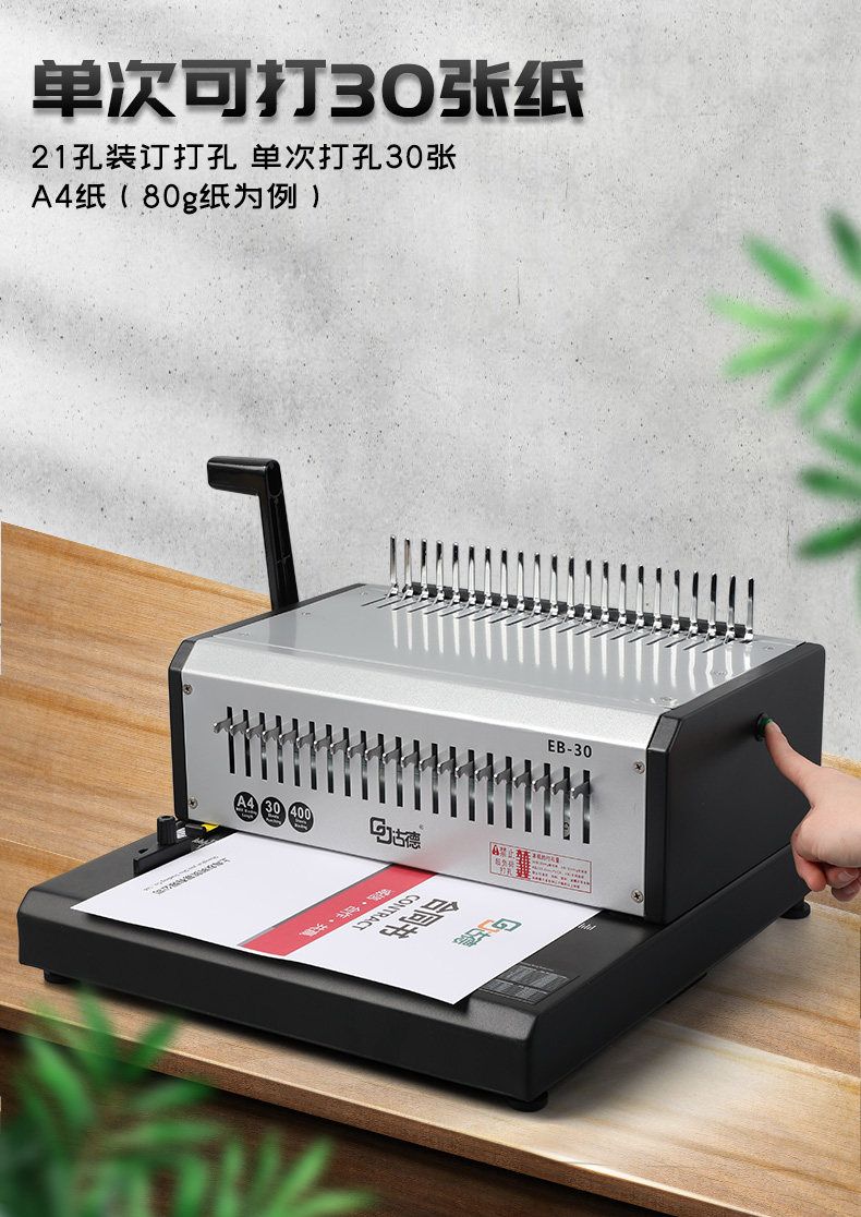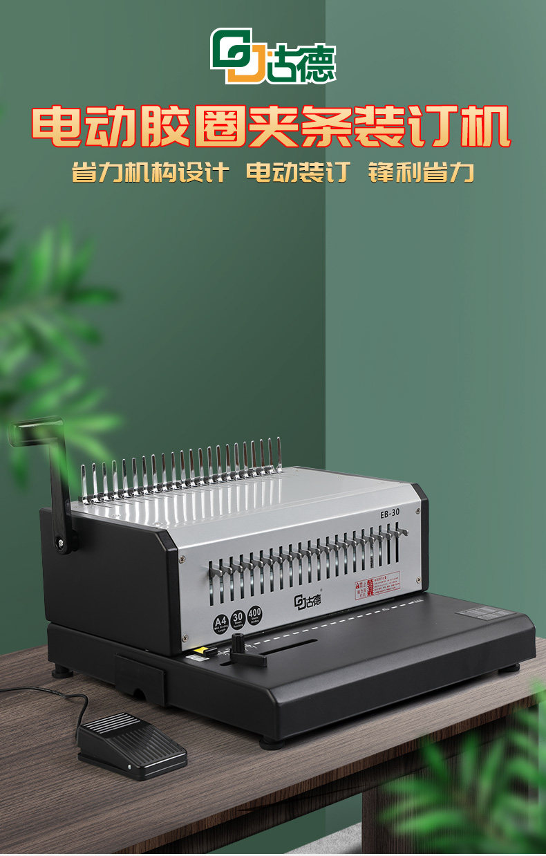Gude Rubber Ring Binder Electric Binding Machine Eb-30 Automatic 10-Hole Binder 21-Hole Rubber Ring Puncher Office Automatic Puncher Contract Tender Document Thick Layer Heavy-Duty Electric Binding Machine