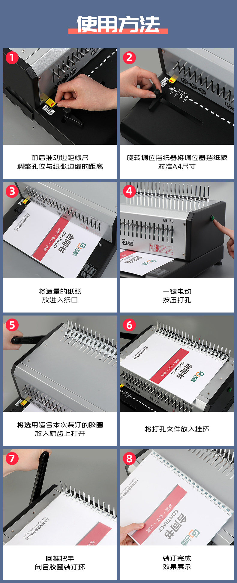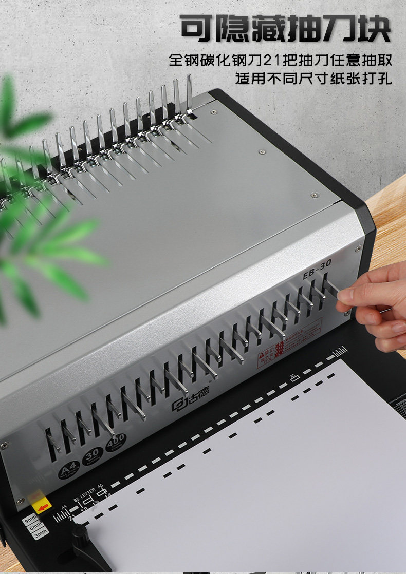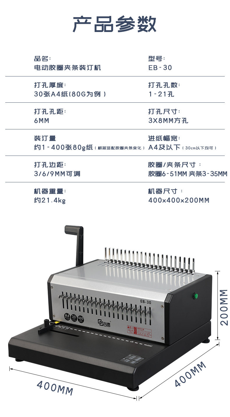 Gude Rubber Ring Binder Electric Binding Machine Eb-30 Automatic 10-Hole Binder 21-Hole Rubber Ring Puncher Office Automatic Puncher Contract Tender Document Thick Layer Heavy-Duty Electric Binding Machine