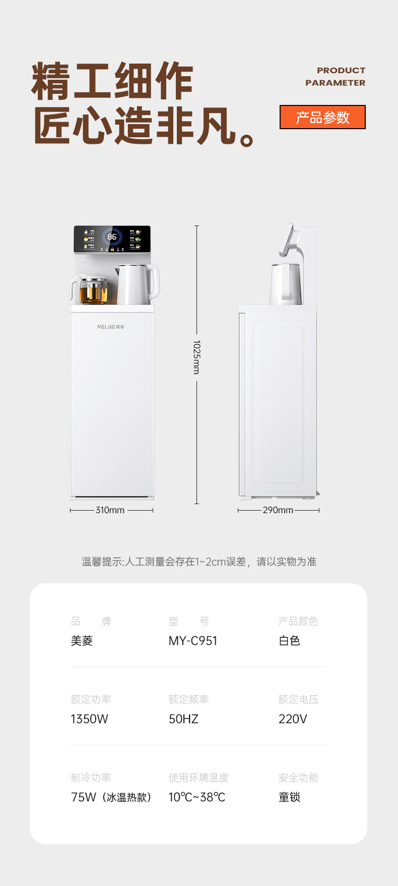 Meiling Tea Bar Machine Water Dispenser for Home Use, Fully Automatic New Model, Vertical Smart Water Dispenser with Bottom Water Tank, Office All-In-One Machine