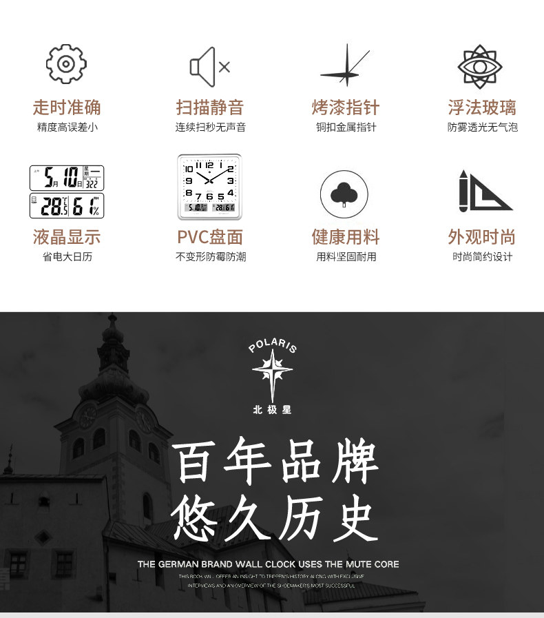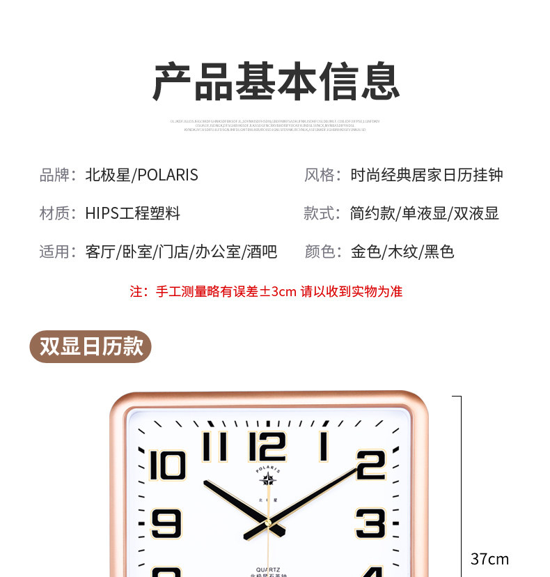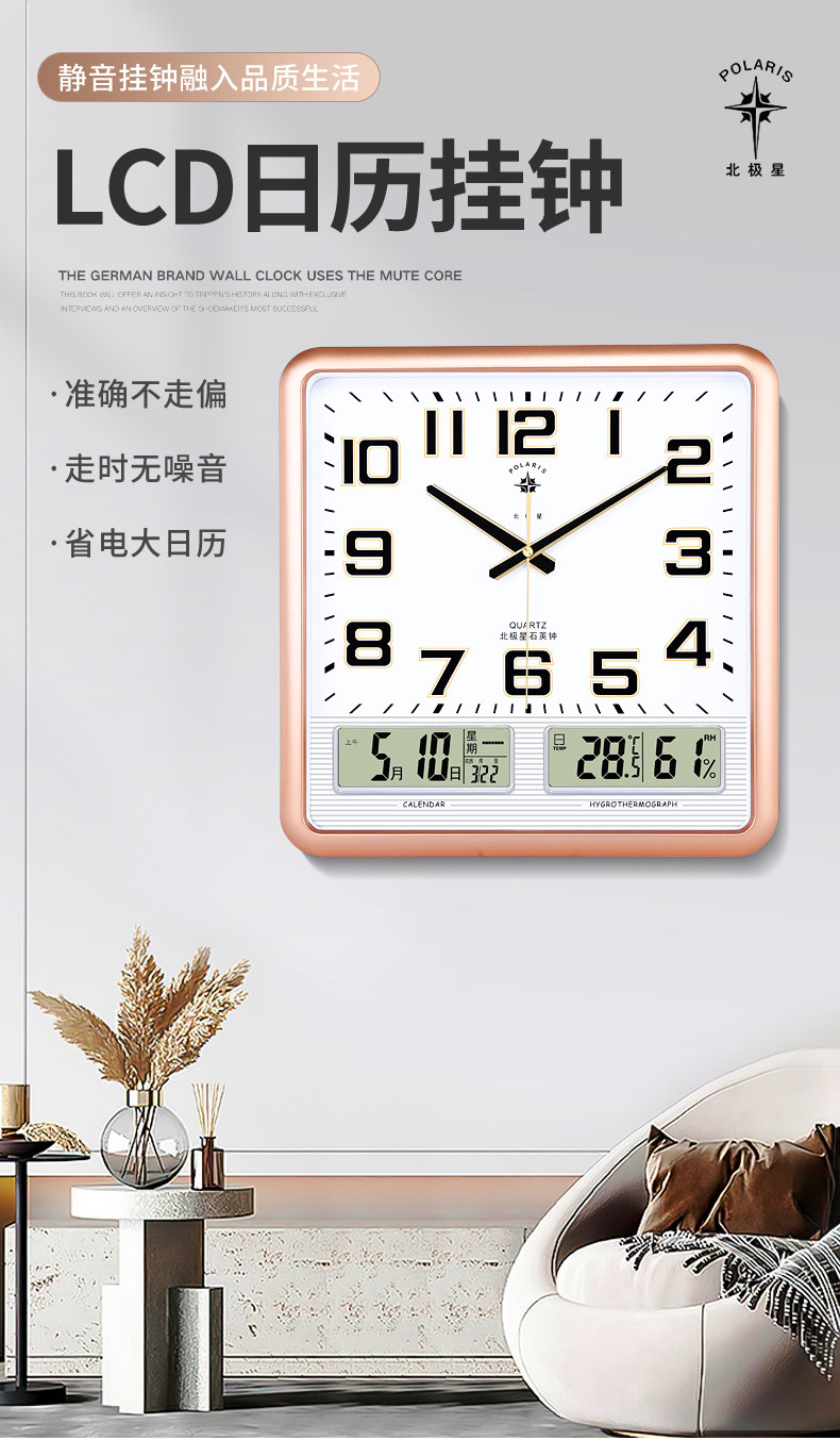 Polaris Clock Living Room Wall Clock Calendar Wall Clock Home Perpetual Calendar Modern Elegant Clock Simple Quartz Clock