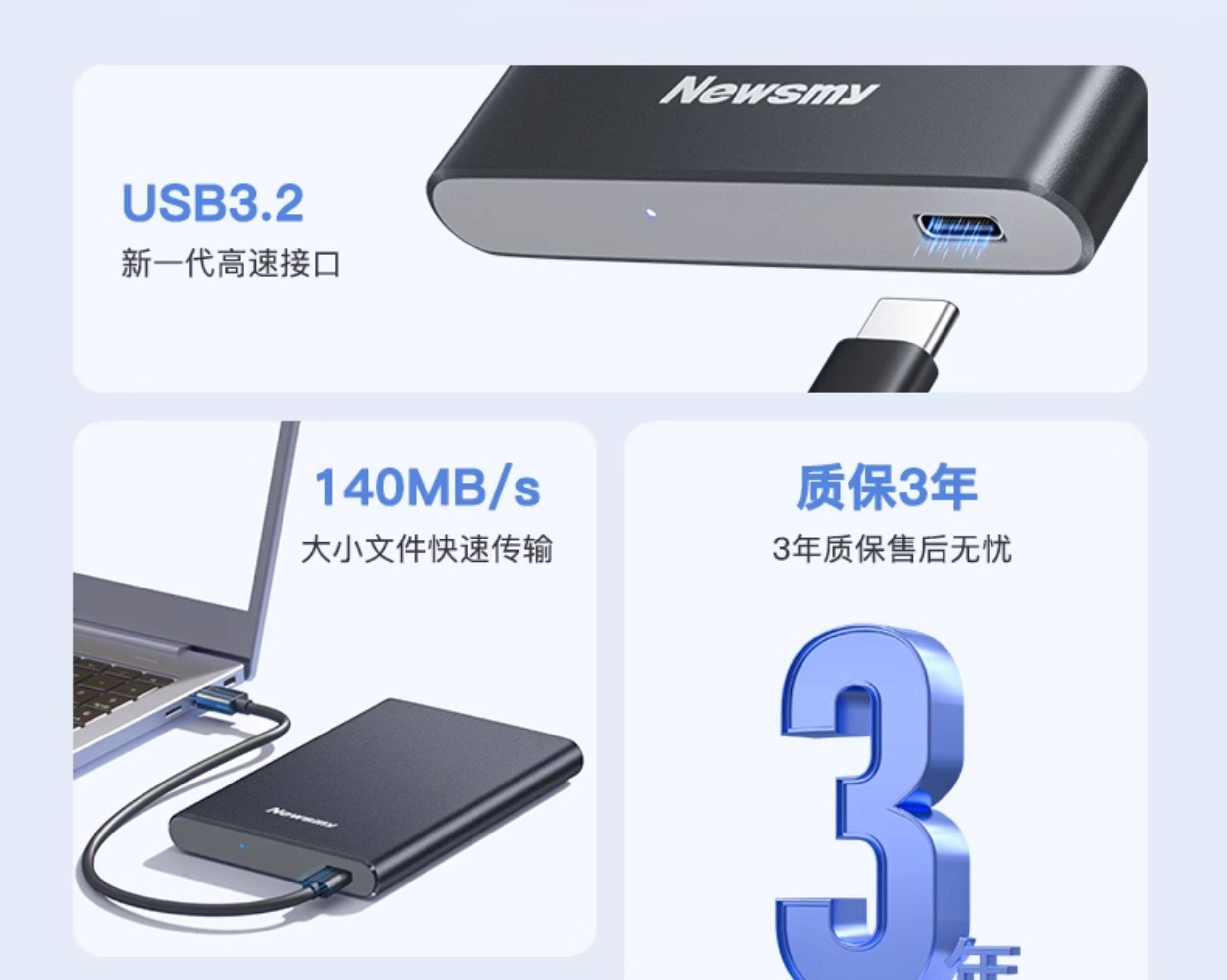 Newman Mobile Hard Drive 500g Mechanical 1t Large Capacity 2t Storage Genuine High-Speed Solid-State External Mobile Game
