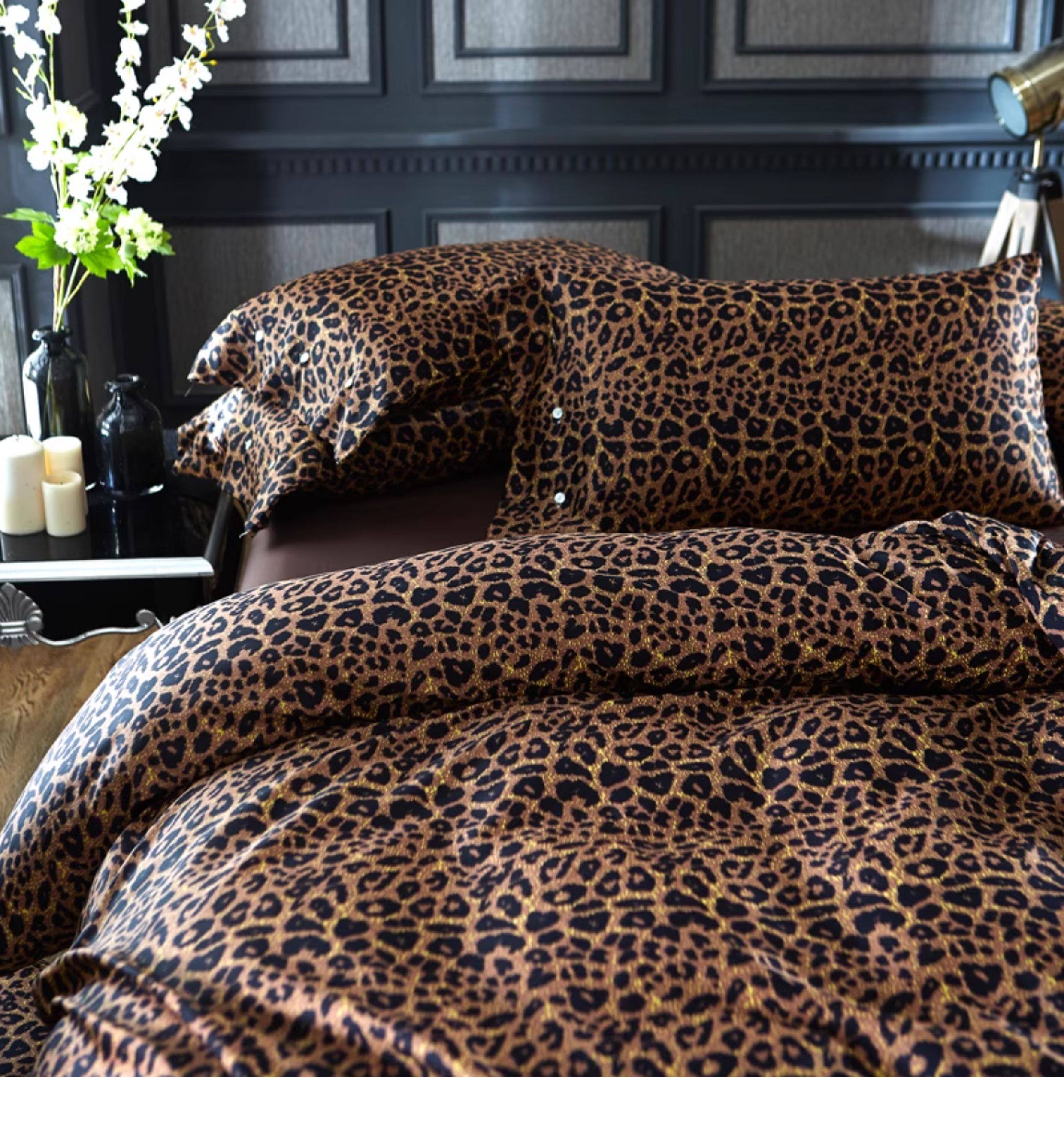 Tv Series Joyful Melody Leopard Print Four-Piece Set Pure Cotton Satin Long-Staple Cotton 60 Count All-Cotton 4-Piece Set 1.8m Bed Sheet Style