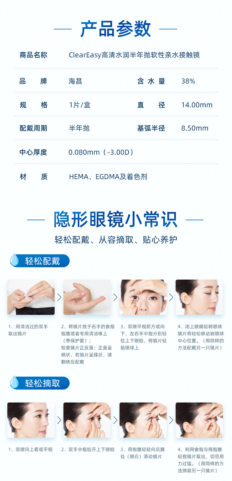 Contact Lens and Care Solution Product Name Clear Easy Hd Hydrating Half-Year Disposable