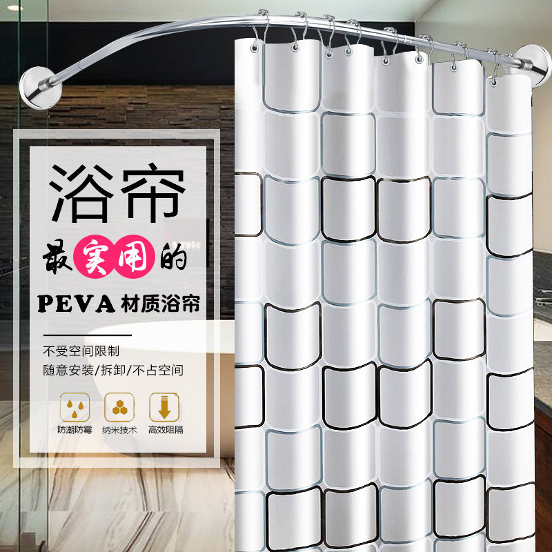 Bathroom Shower Curtain Partition Curtain Shower Curtain Set No-Drill L-Shaped Shower Curtain Rod Curved Bathroom Curtain Waterproof Shower Curtain