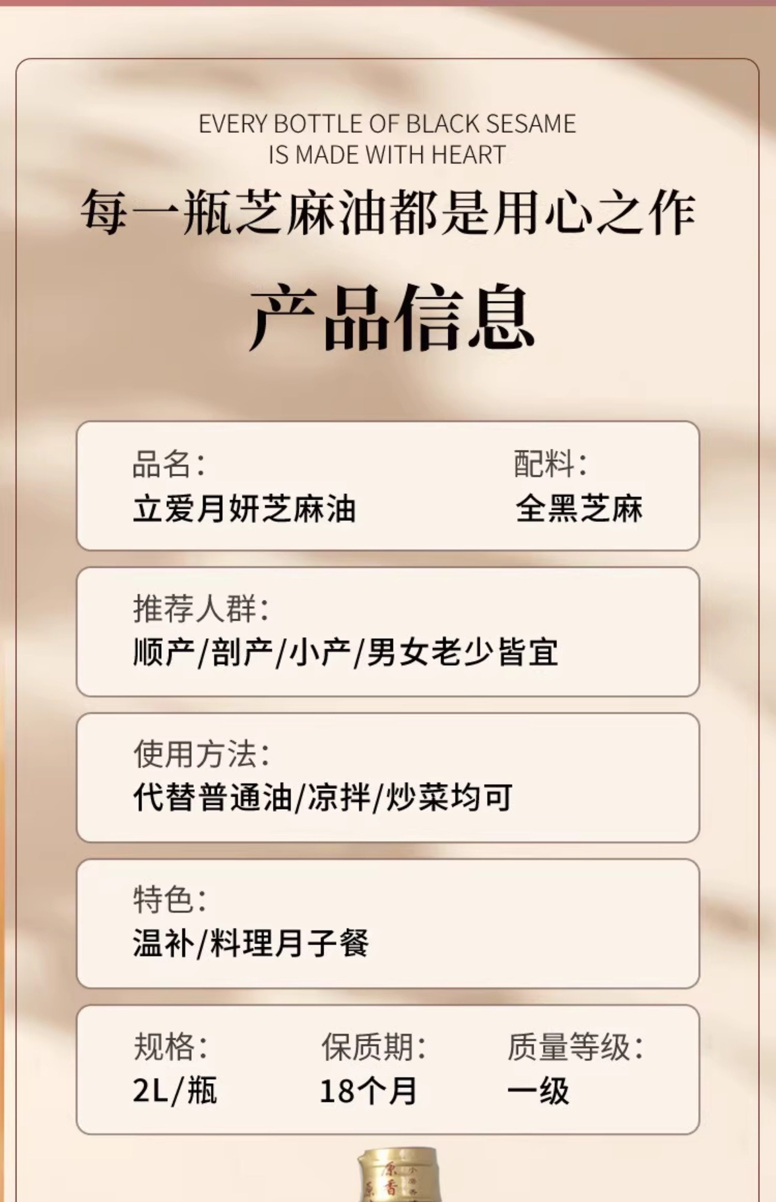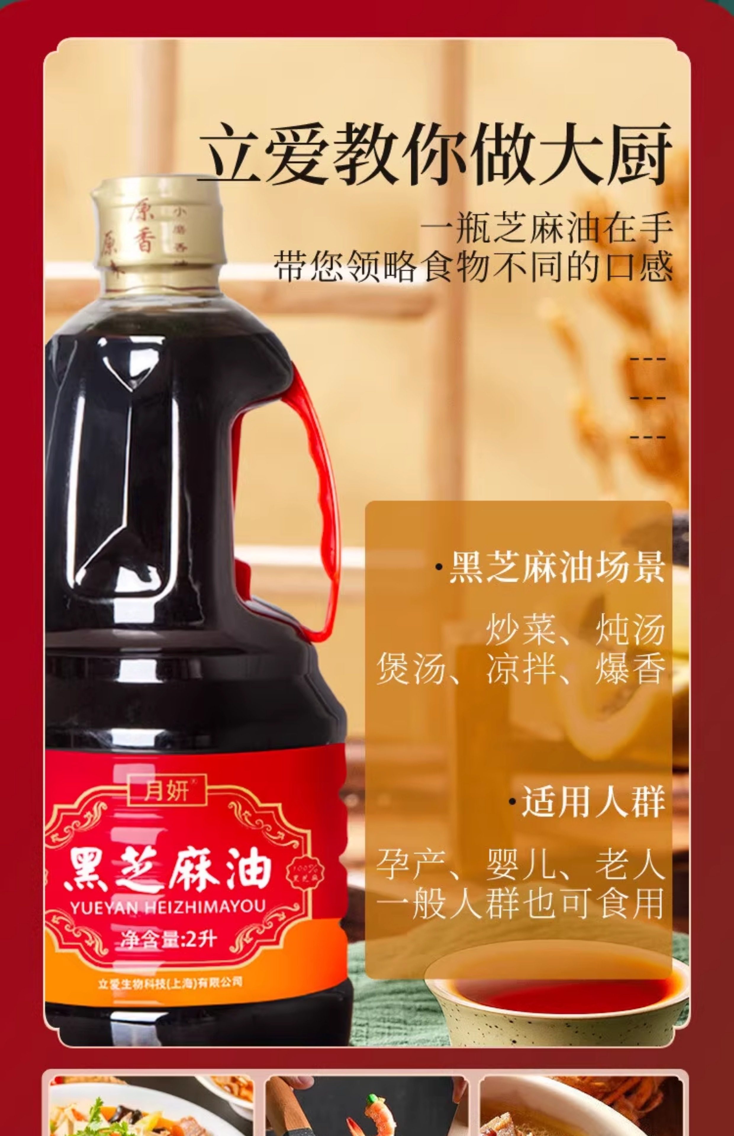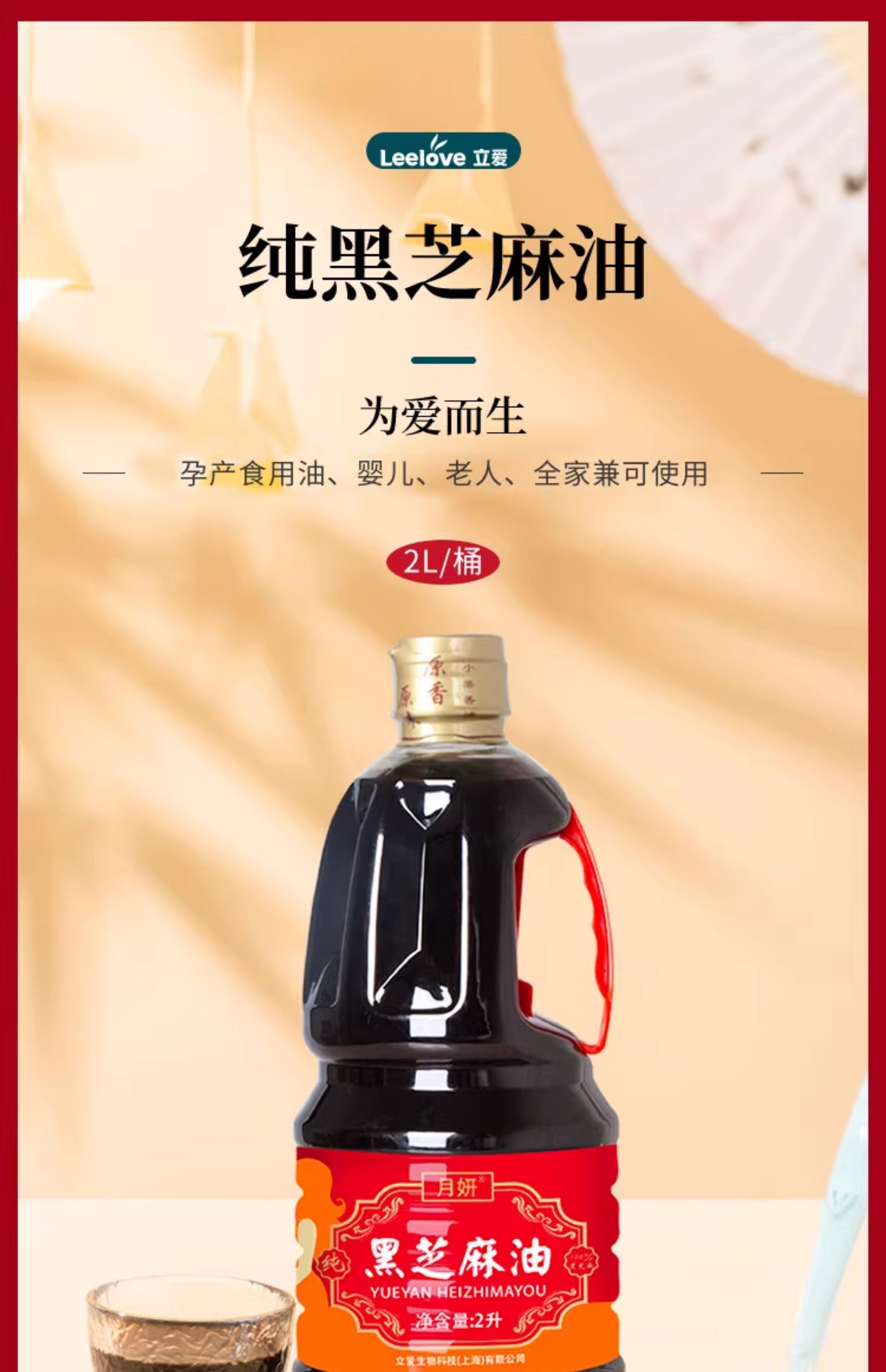 Lai Ai Pure Black Sesame Oil Large Bottle 2L Postpartum Conditioning Supplement Flaxseed Oil Maternity Meal Pure Handmade Special Edible Oil