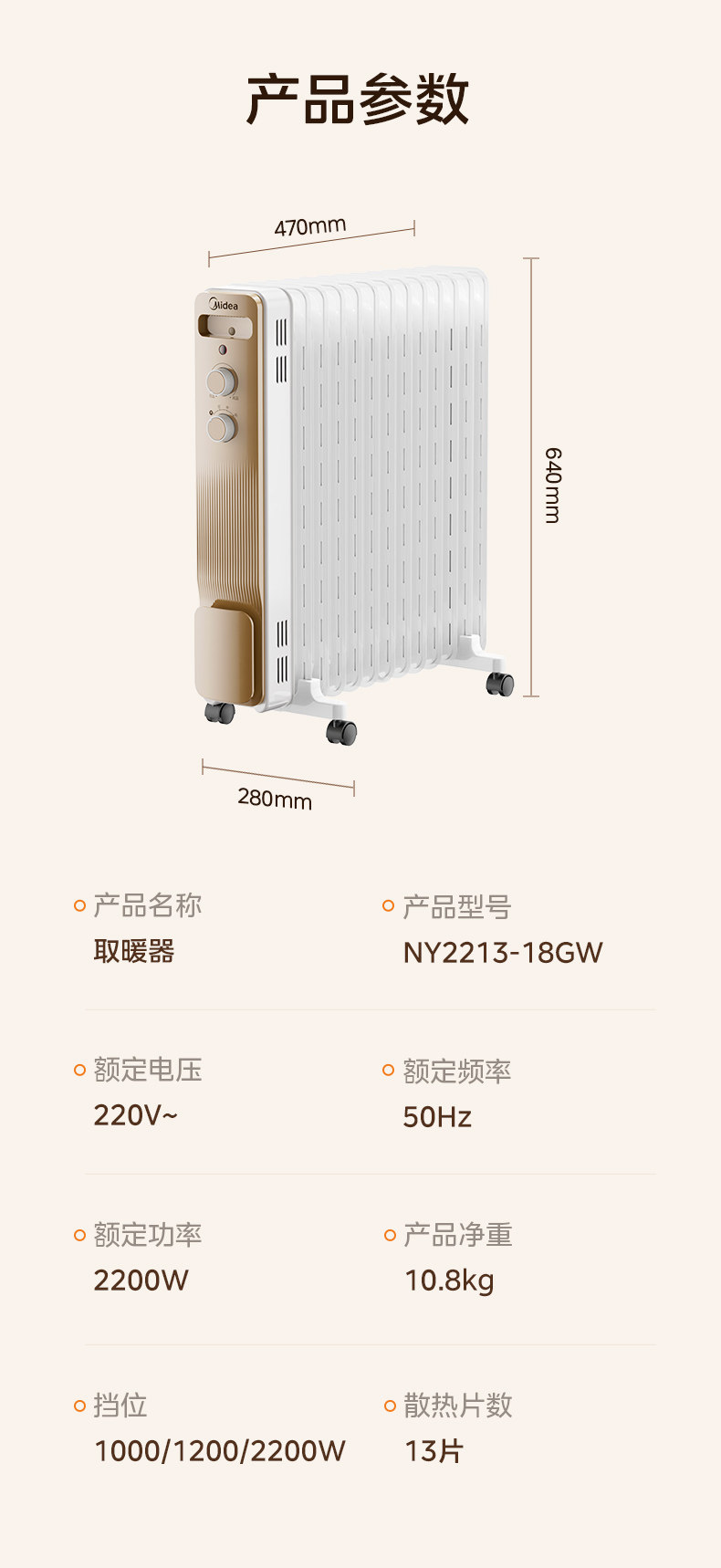 | Midea Heater Model | NY2213-18GW |
