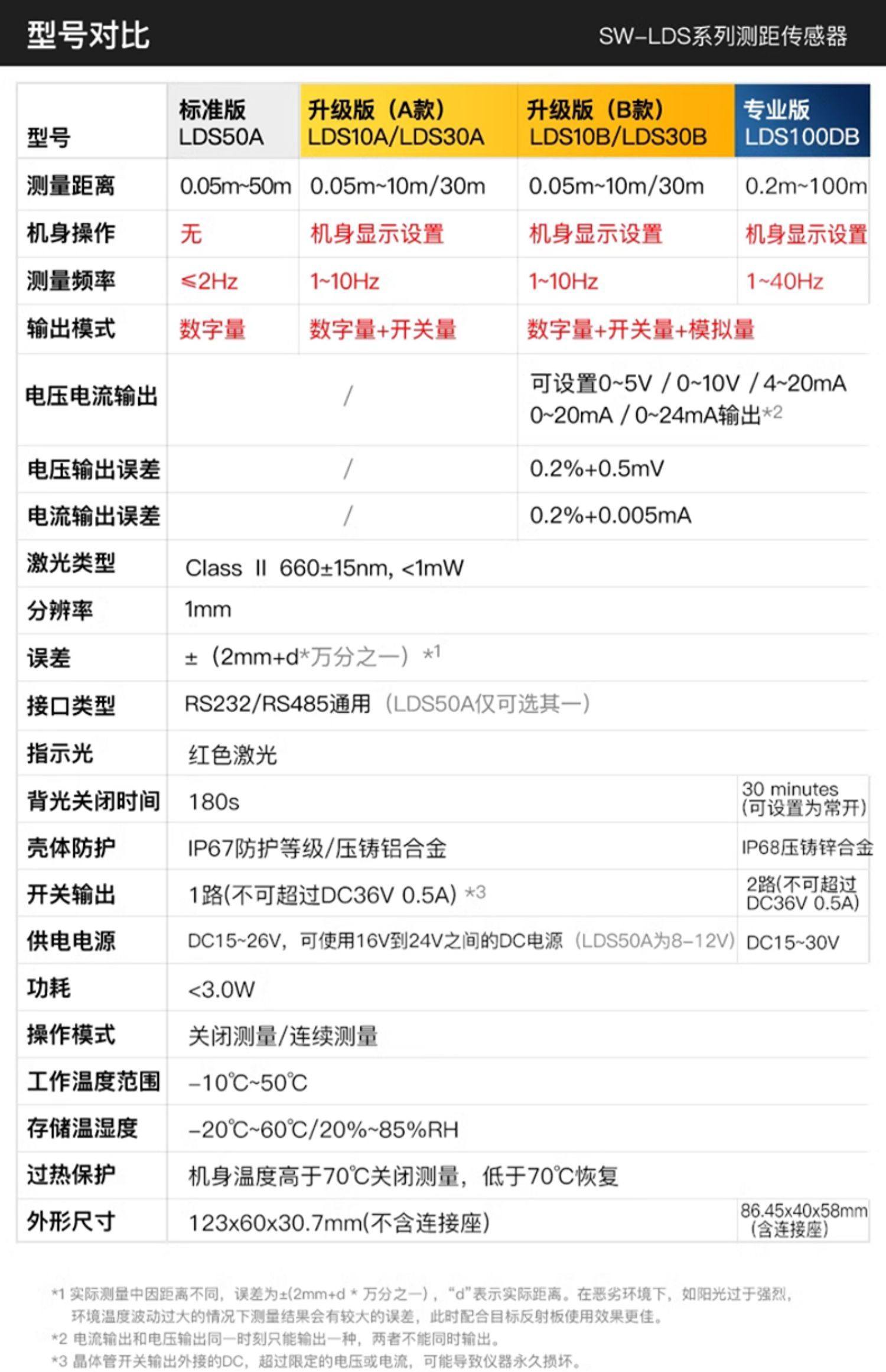 | Color Classification | 50m Ranging ≤2Hz Sensor (Rs485 Interface) Can Be Personalized,50m Ranging ≤2Hz Sensor (Rs232 Interface) Can Be Personalized,50m Ranging ≤2Hz Sensor (Rs485+Rs232 Interface+Analog Quantity+Switch Quantity),10m Ranging ≤10Hz Sensor (Digital Output) Rs232+Rs485 Interface,10m Ranging ≤10Hz Sensor (Analog + Switching Value) Rs232+Rs485 Interface,30m Ranging ≤10Hz Sensor (Digital Output) Rs232+Rs485 Interface,30m Ranging ≤10Hz Sensor (Analog + Switching Value) Rs232+Rs485 Interface,100m Ranging ≤40Hz Sensor (Analog + Switching Value) Rs232+Rs485 Interface |