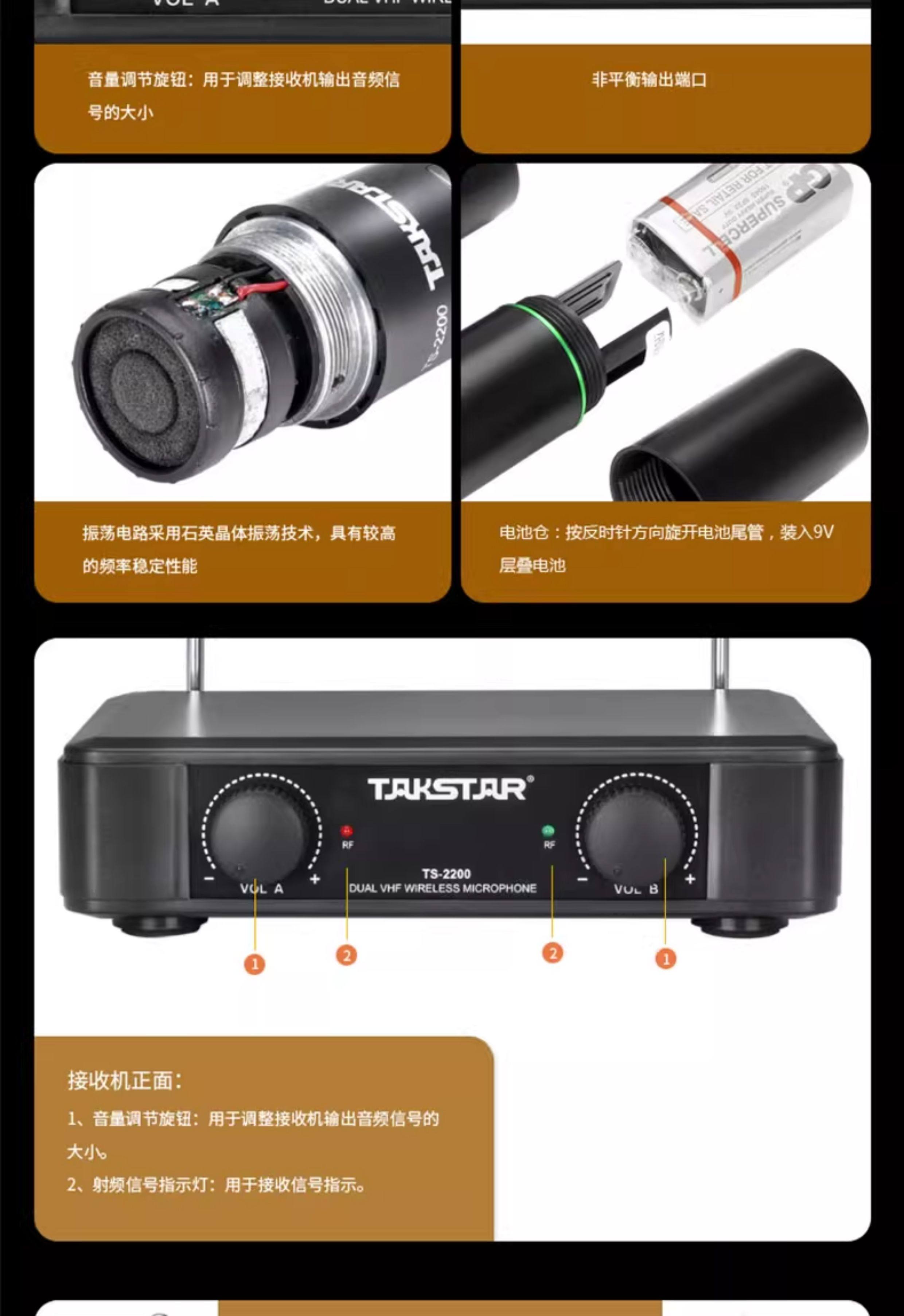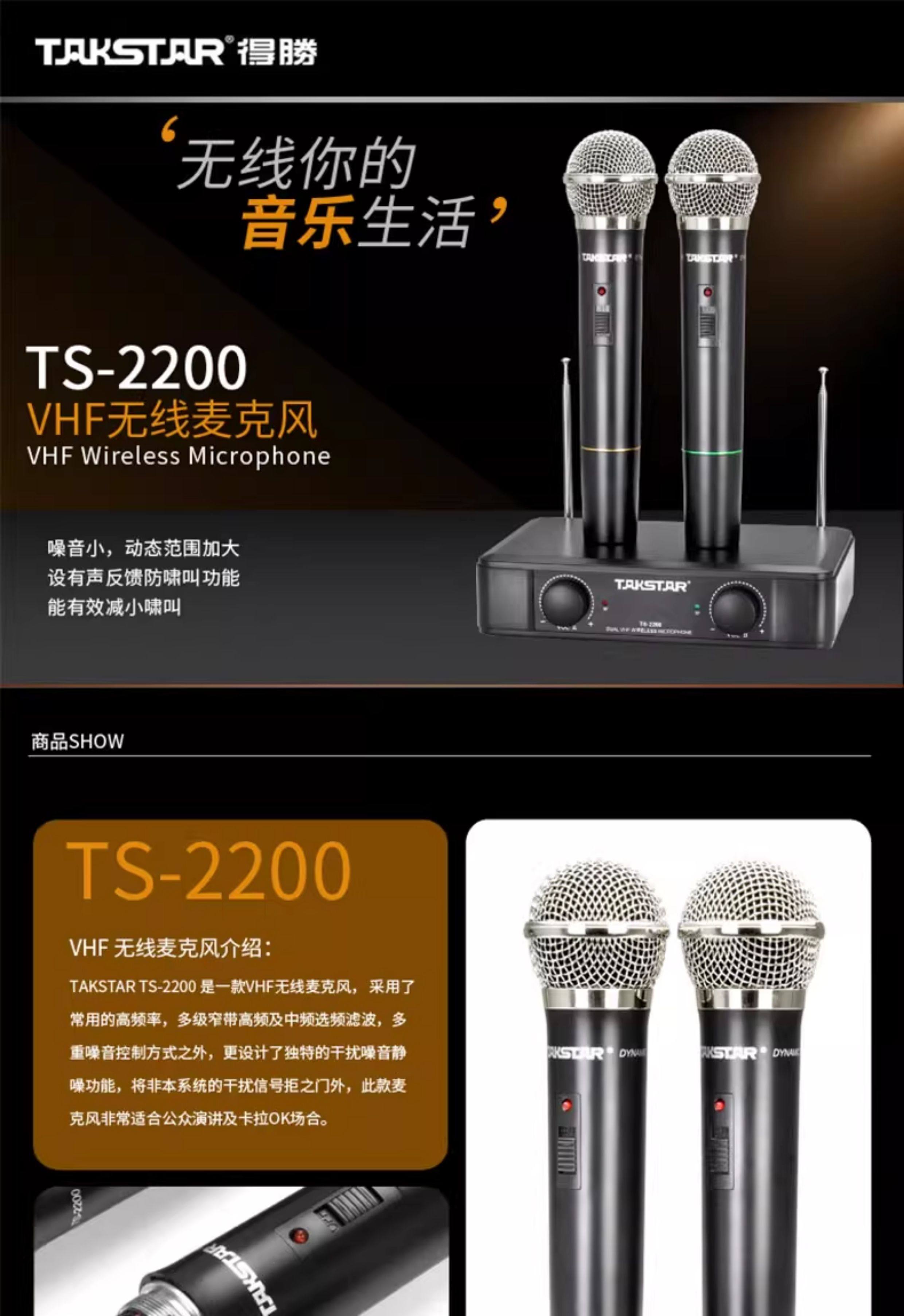 Takstar Ts-2200 Wireless Microphone Dual-System for Conferences, Home Use, Stage, and Ktv Dedicated Handheld Microphone