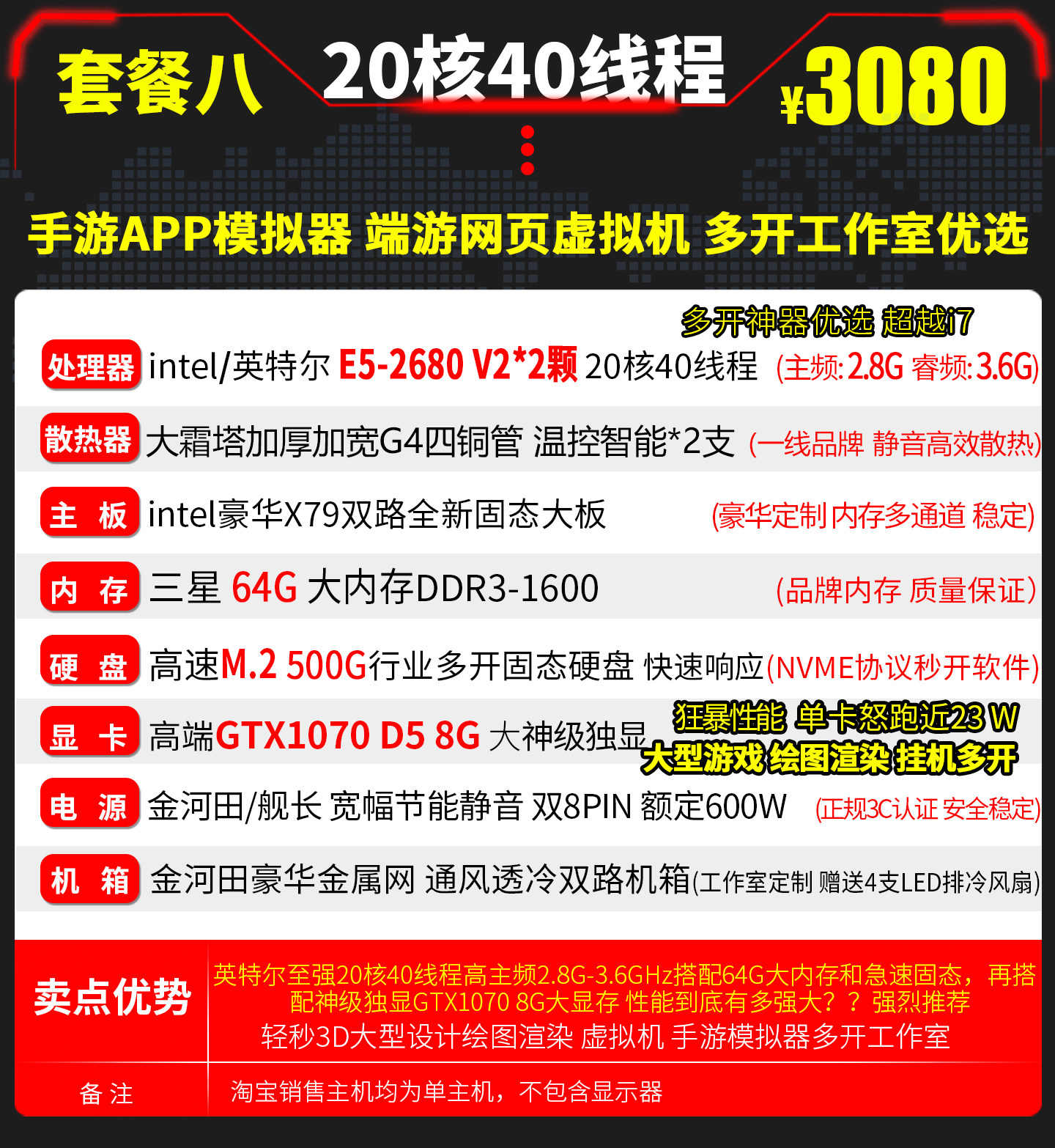 | Package Type | Package 1 [10 Cores 2670V2+7670 1g],Package 2 [10 Cores 2680V2+750 4g],Package Three [10-Core 2680V2+960 4g],Package 4 [10-Core 2680V2+1060 5g],Package 5 [10-Core 2680V2+1060 6g],Package Six [10-Core 2680V2+1070 8g],Package 7 [20-Core 2680V2 Dual-Channel +1060 6g],Package Eight [20-Core 2680V2 Dual-Channel +1070 8g] |
