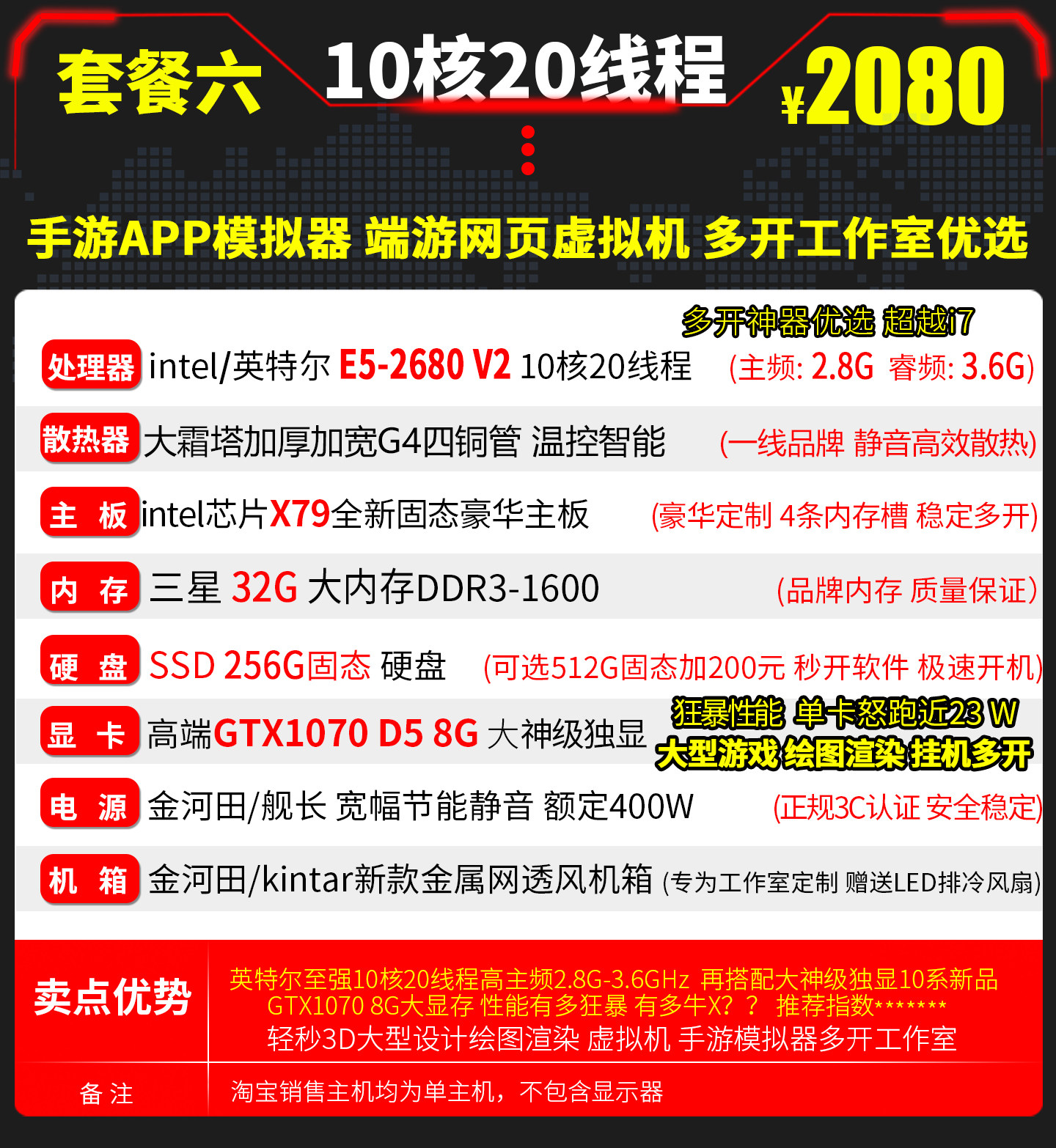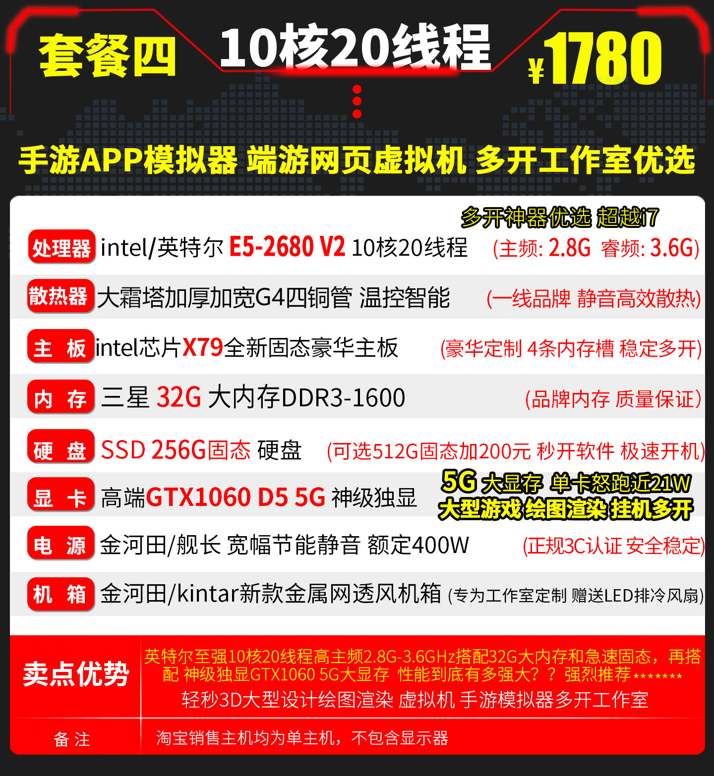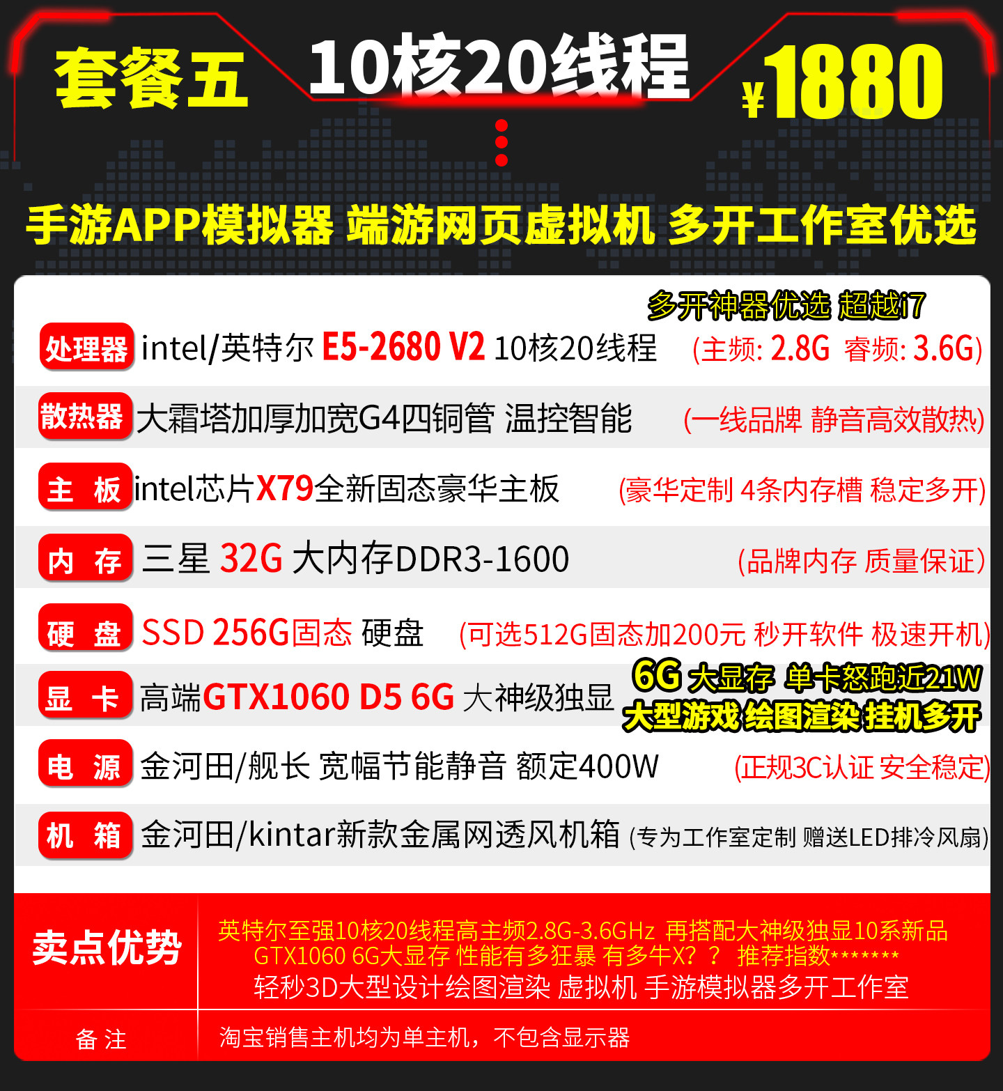 High-End E5-2680V2 Ten-Core Multi-Tasking Studio Computer Assembly with Gtx1060 for Gaming, Outperforms I7