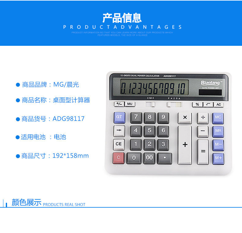 Chenguang Calculator Adg98117 Business Office Desktop Large Desktop Calculator Solar Powered