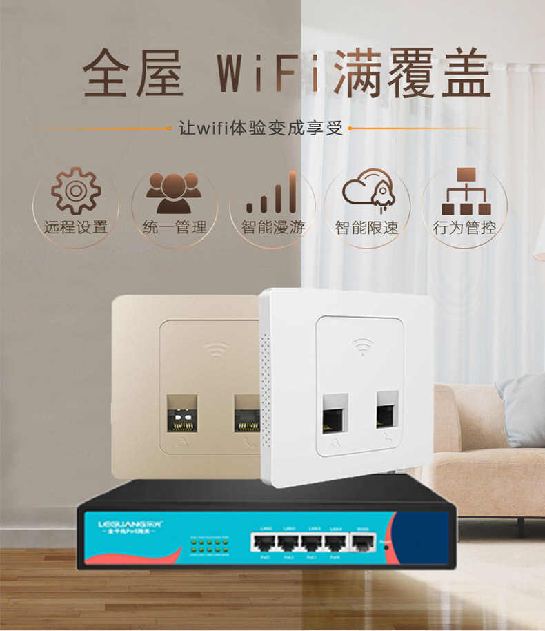 Leguang Wifi6 Wireless Ap Panel 86 Type In-Wall Router Gigabit 5g Network Hotel Guesthouse Whole-House Wifi Coverage Poe Power Supply Seamless Wifi Switching Roaming Sd-Wan Networking