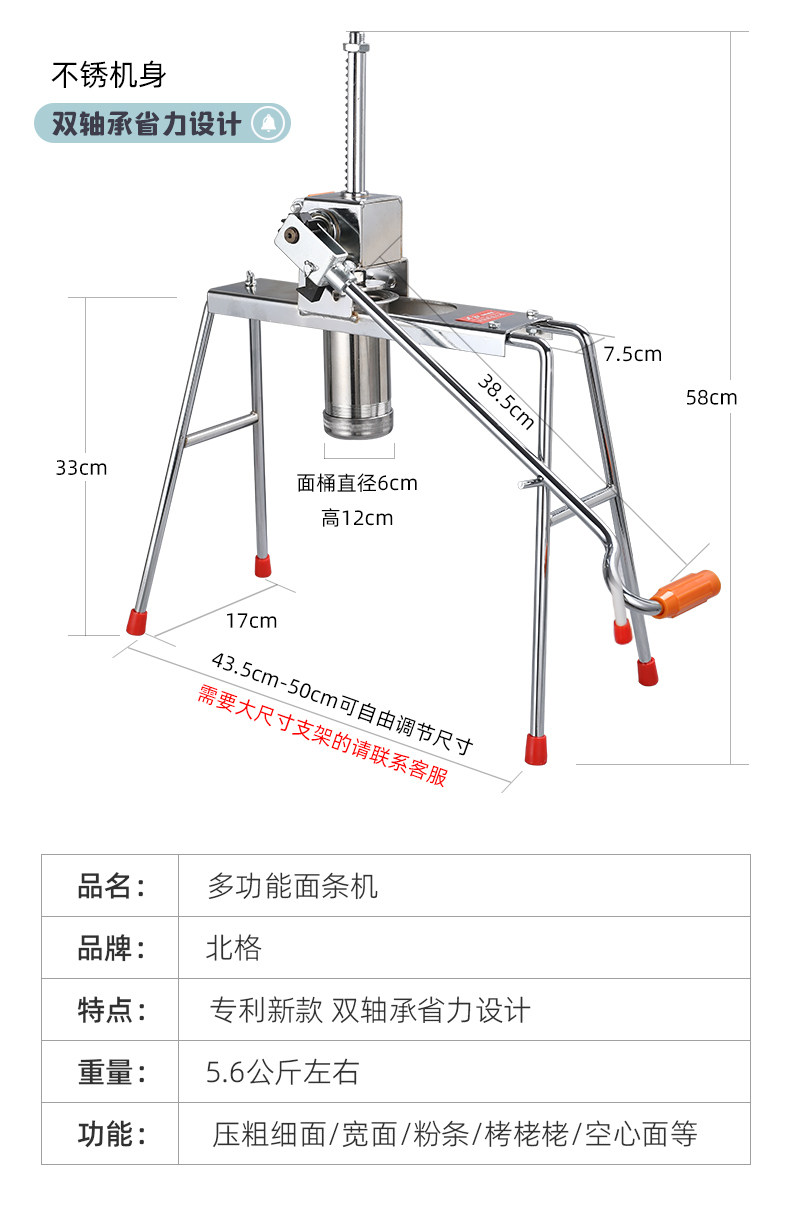 Noodle Maker for Home Use, Manual Multifunctional Noodle Machine, Stainless Steel Noodle Press, Small Noodle Pressing Machine