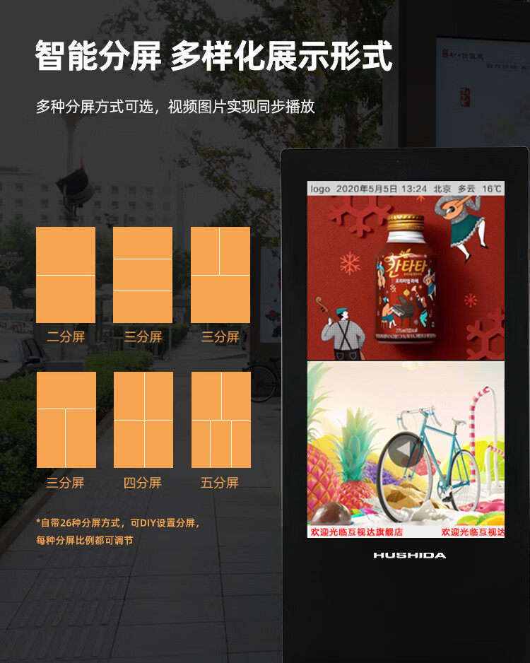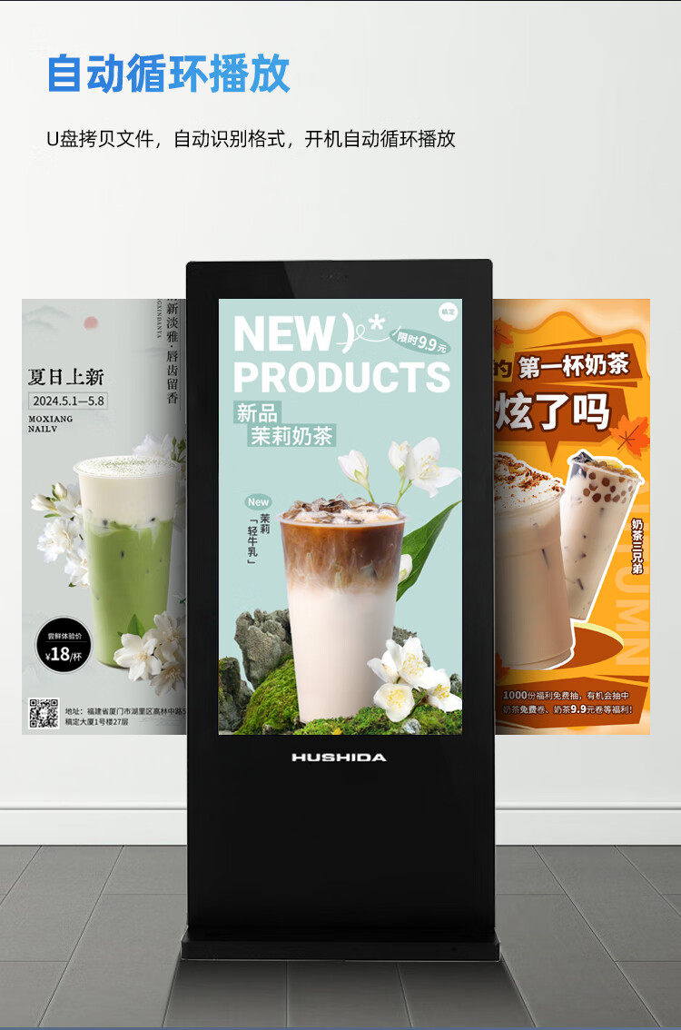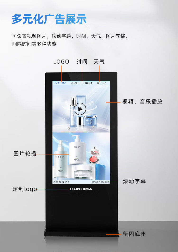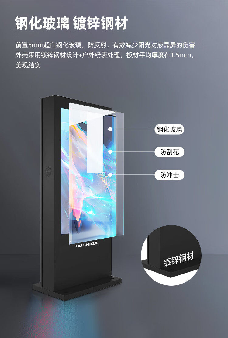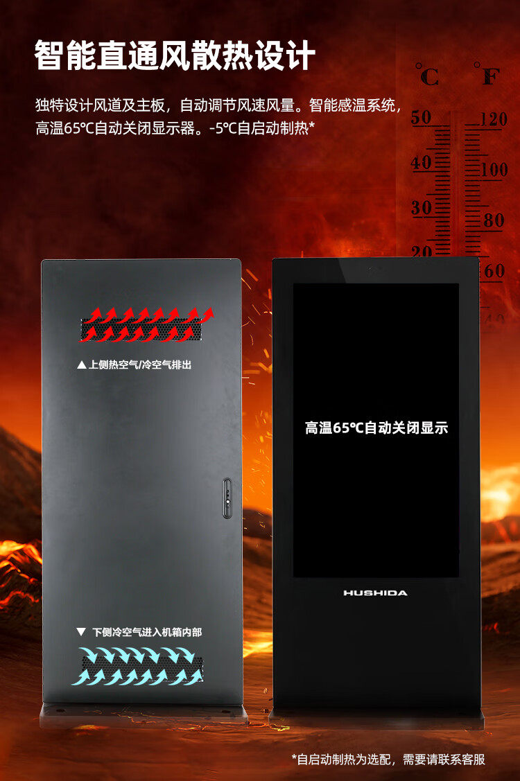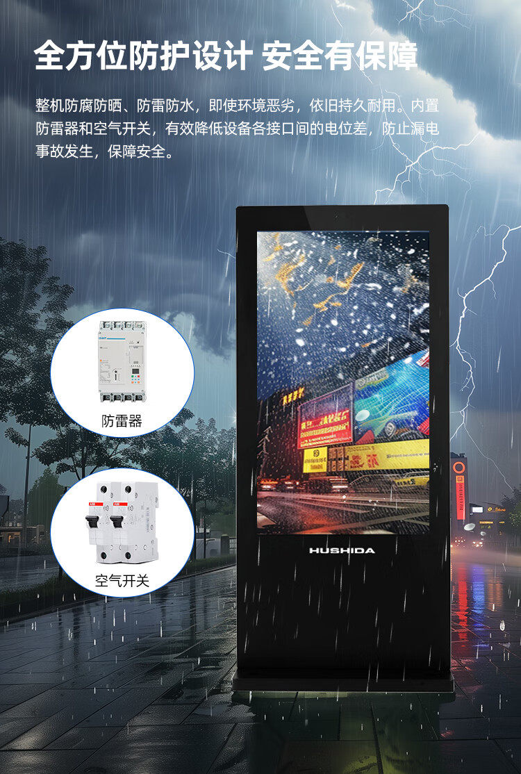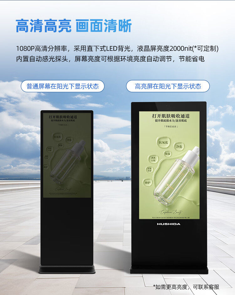 Hushida 32/42/43/49/55/65/75/ 85inch Outdoor Advertising Machine Wall-Mounted Advertising Machine Vertical Rainproof and Waterproof Lcd Promotional Traffic-Attracting Tv Advertising Machine High-Definition Display