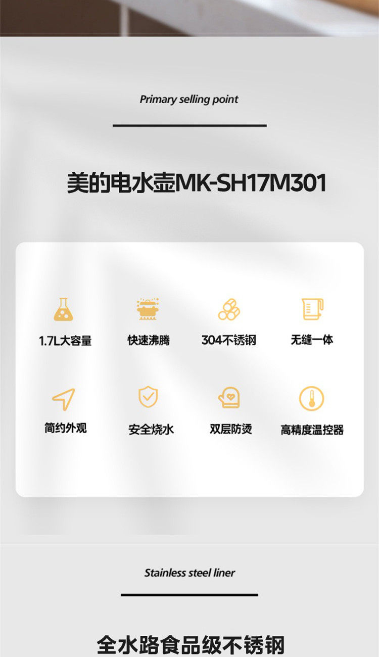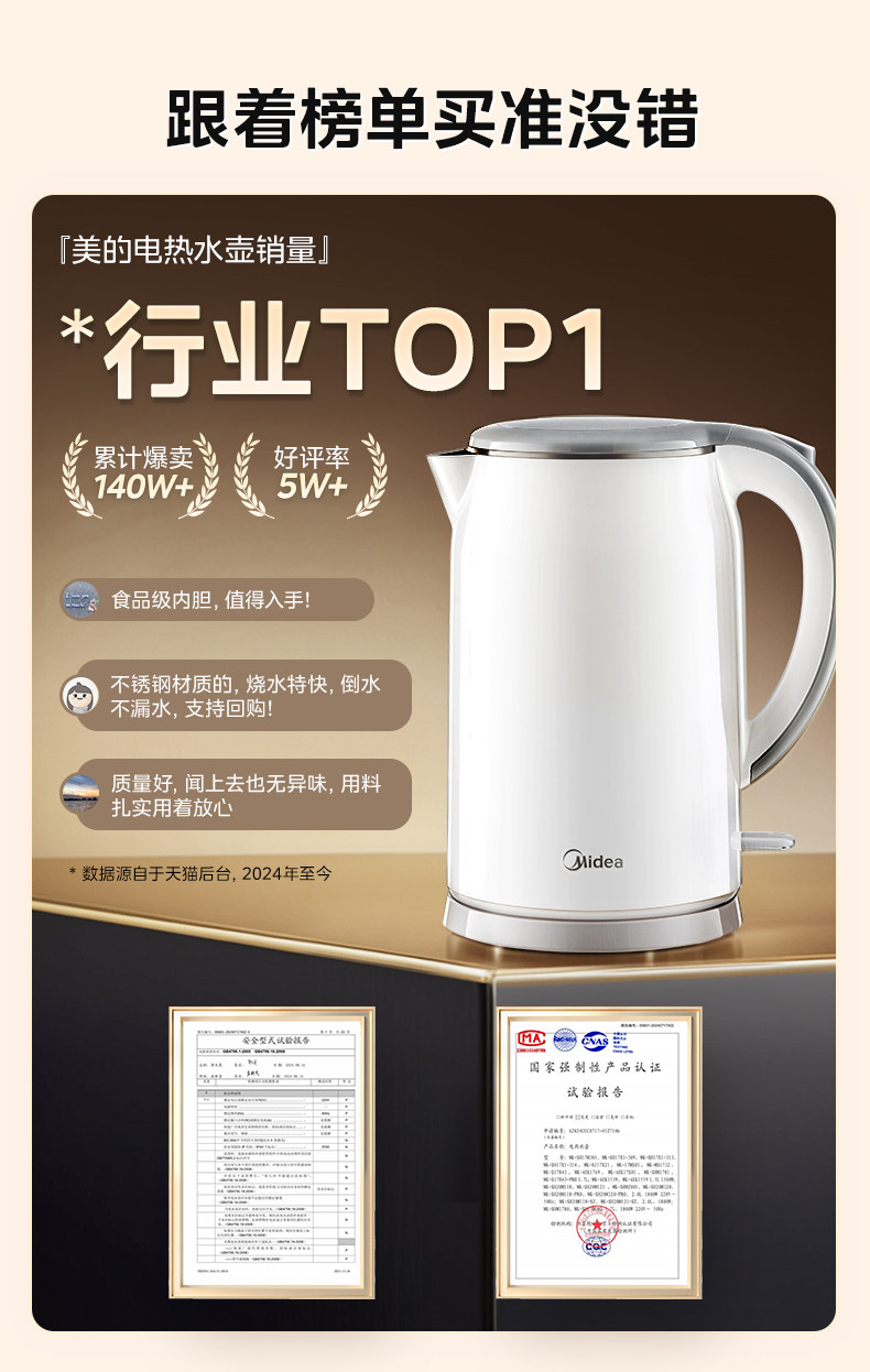 Midea Electric Kettle Smart Water Boiler for Home Use New Model for Making Tea Stainless Steel Insulation Office Hualing Electric Kettle