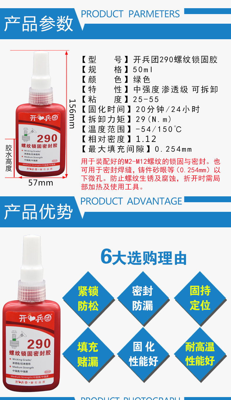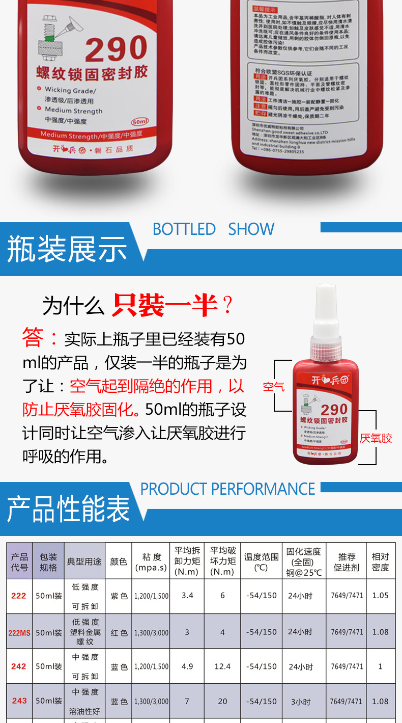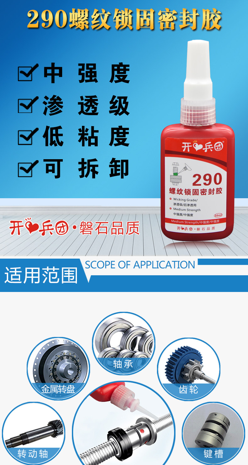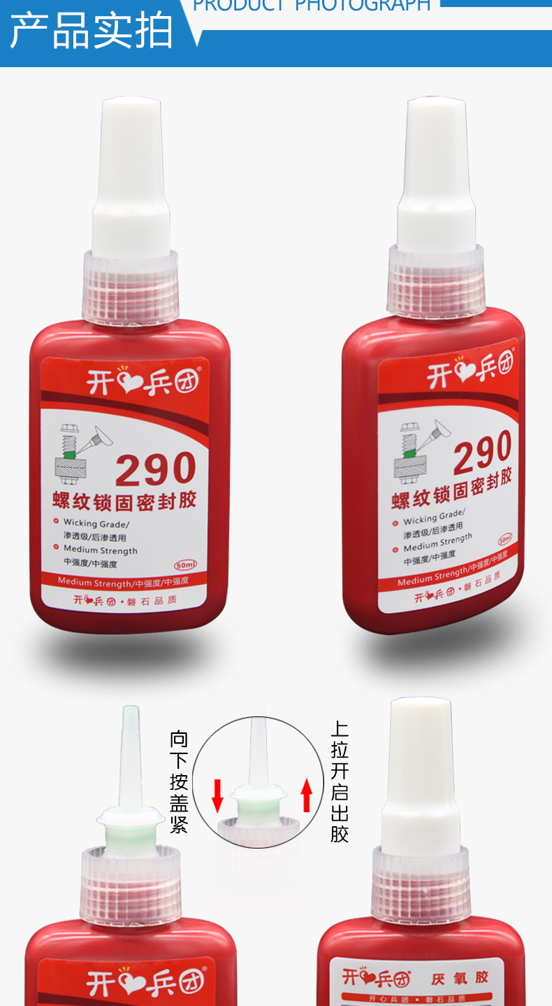 290 Adhesive Penetrating Screw Glue, Fast Medium-Strength Metal Threadlocker, Anaerobic Adhesive 50ml, Anti-Vibration, Anti-Loosening, Removable Threadlocker, Screw Fastening Adhesive, Anti-Loosening Glue