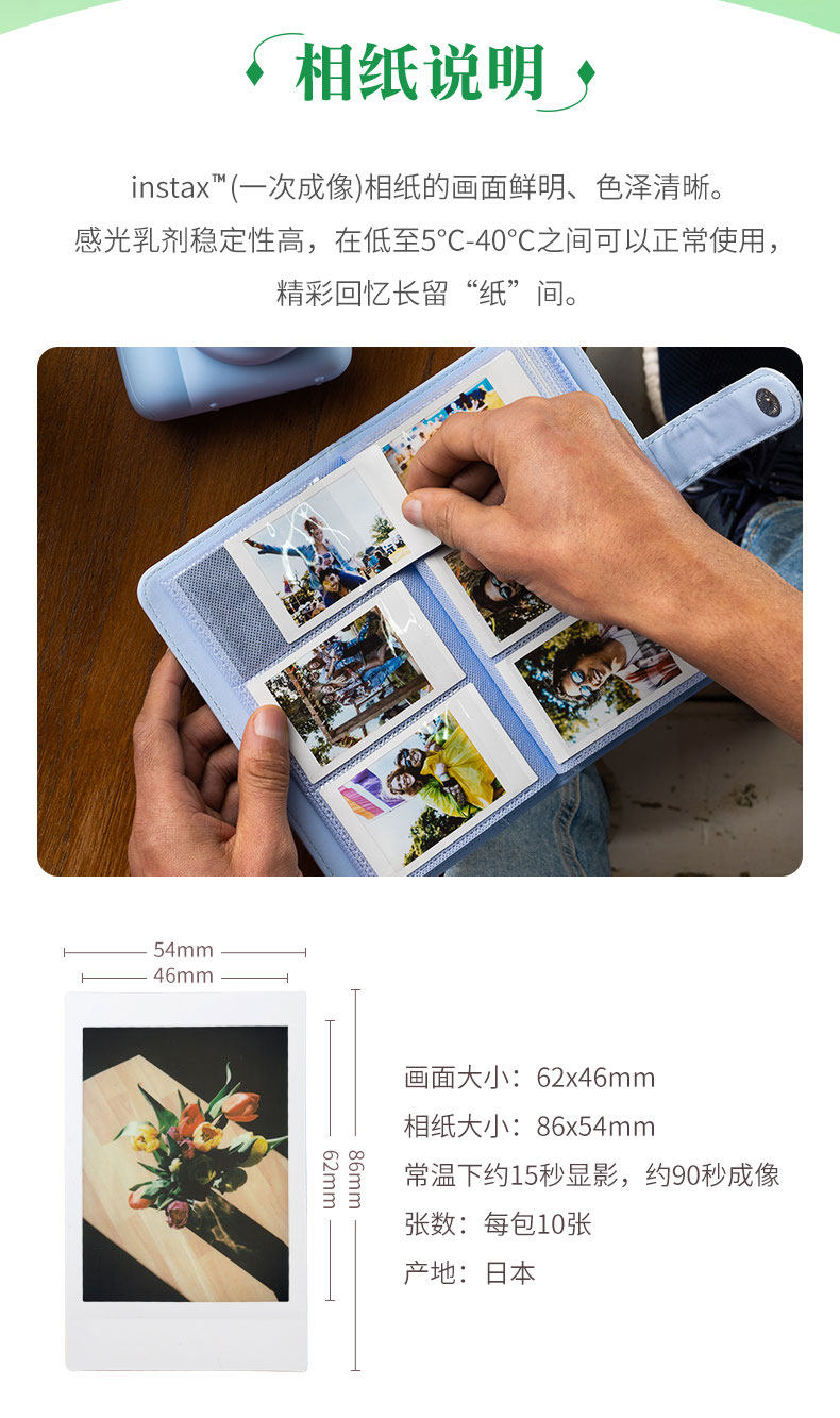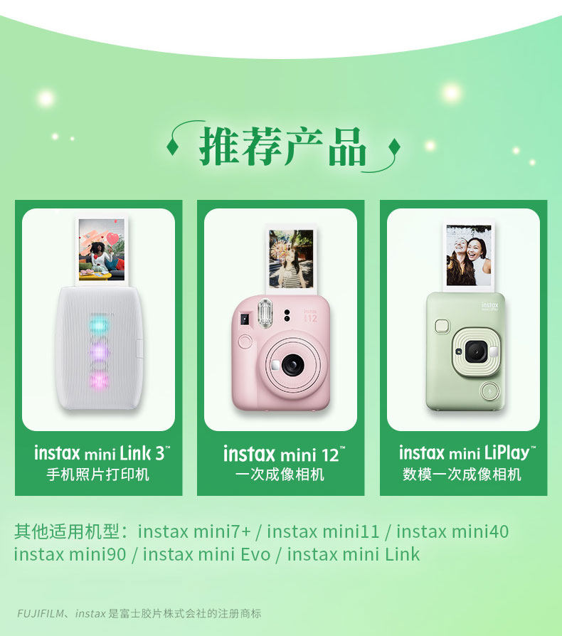 Fuji Instant Photo Paper, One-Shot Mini Film Camera Photo Paper, White Border Photo Paper, Mini12/Se/7+/8/9/25/90/11/40/7S/7C/99/Evo Border Photo Paper