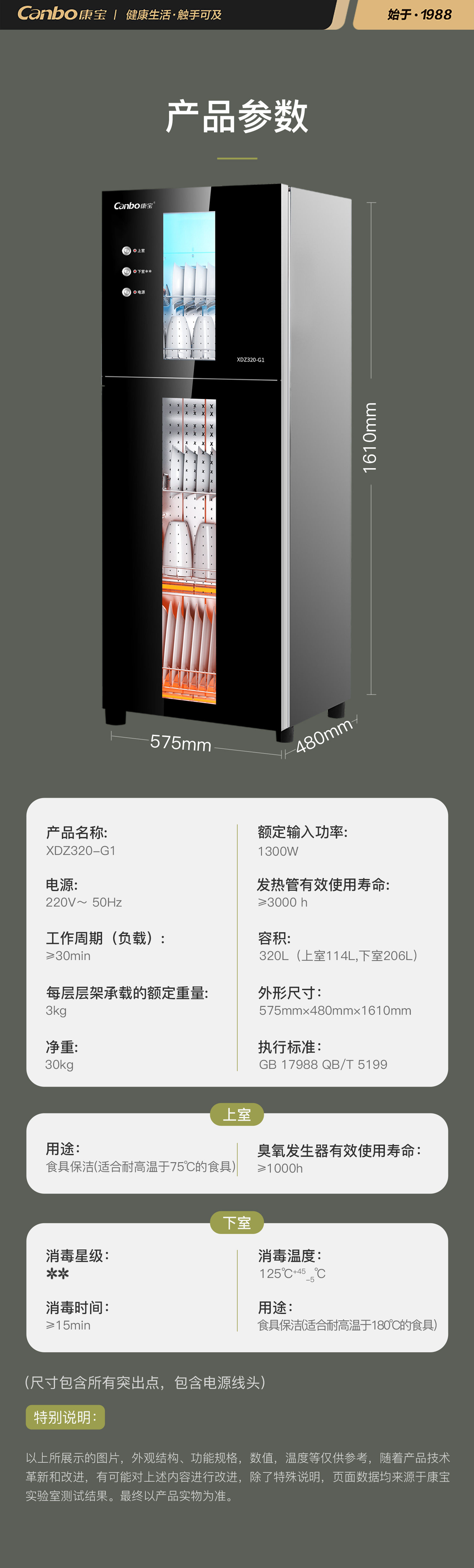 | Disinfection Cabinet Capacity | 291L |