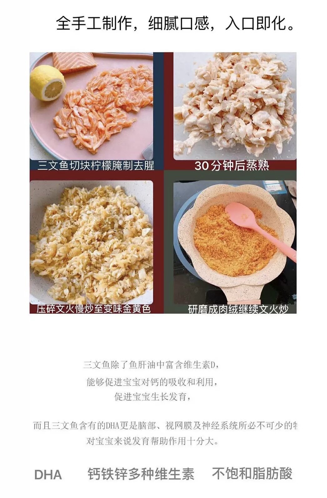 Handmade Baby Salmon Meat Floss Puree, No Sugar or Salt, Nutritious Deep-Sea Fish, Suitable for Infants and Young Children, Complementary Food Recipe