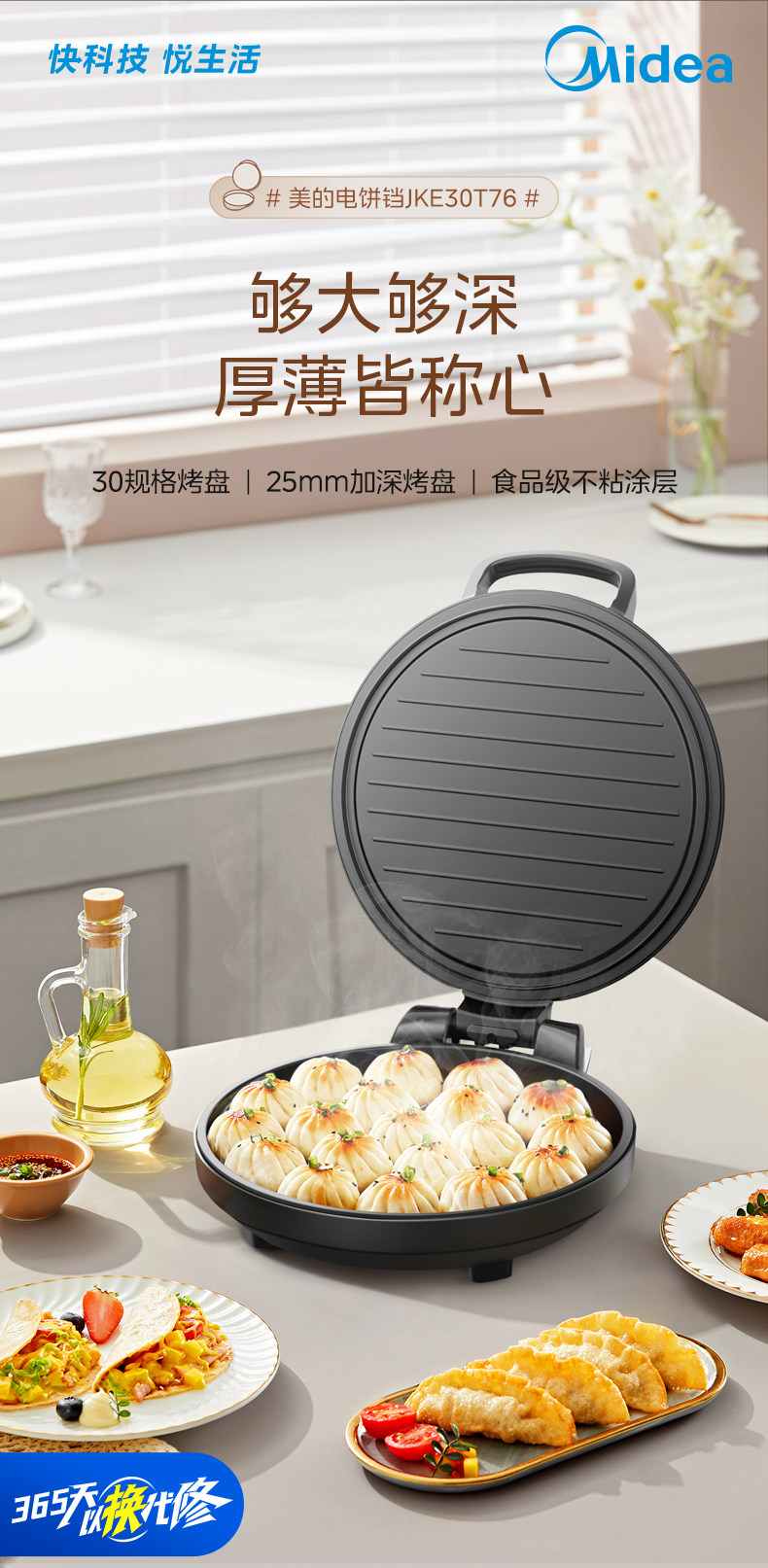 Midea Electric Griddle for Home Use, Double-Sided Heating, Pancake and Flatbread Maker, Integrated Deepened and Enlarged Frying Pan Cooking Machine