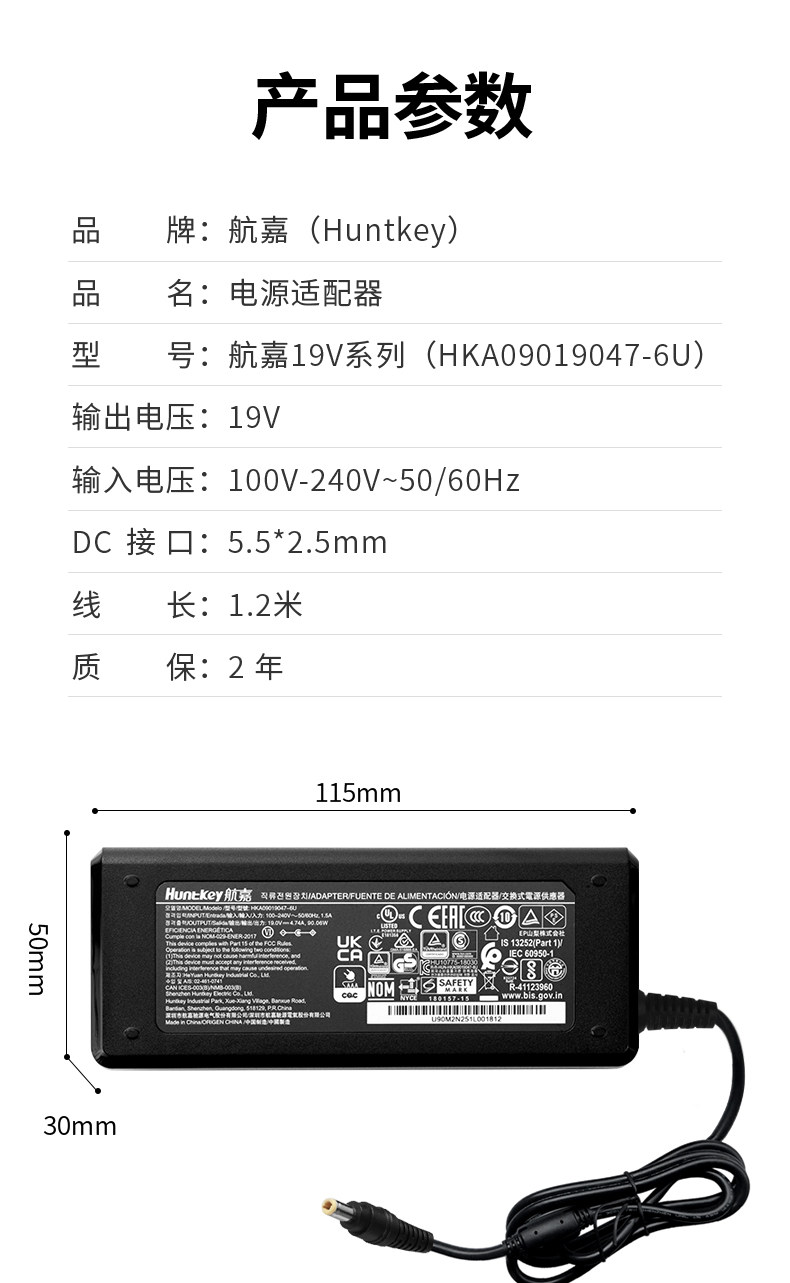 Huntkey Power Adapter Charger Official 3C Certified 19V4.74A 6.3A 7.9A 9.47A Original for Computer Laptop Desktop Monitor Screen Surveillance Camera