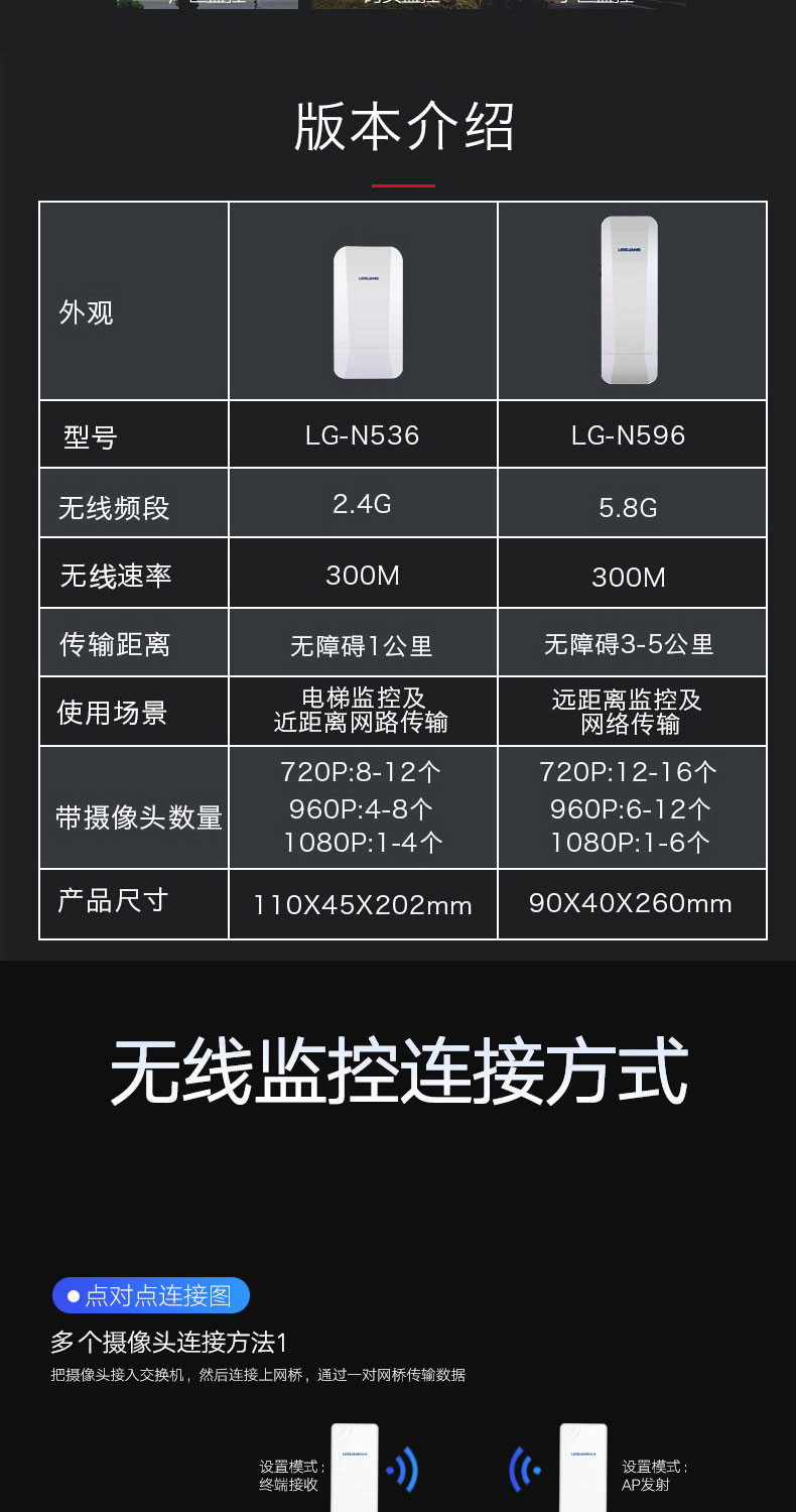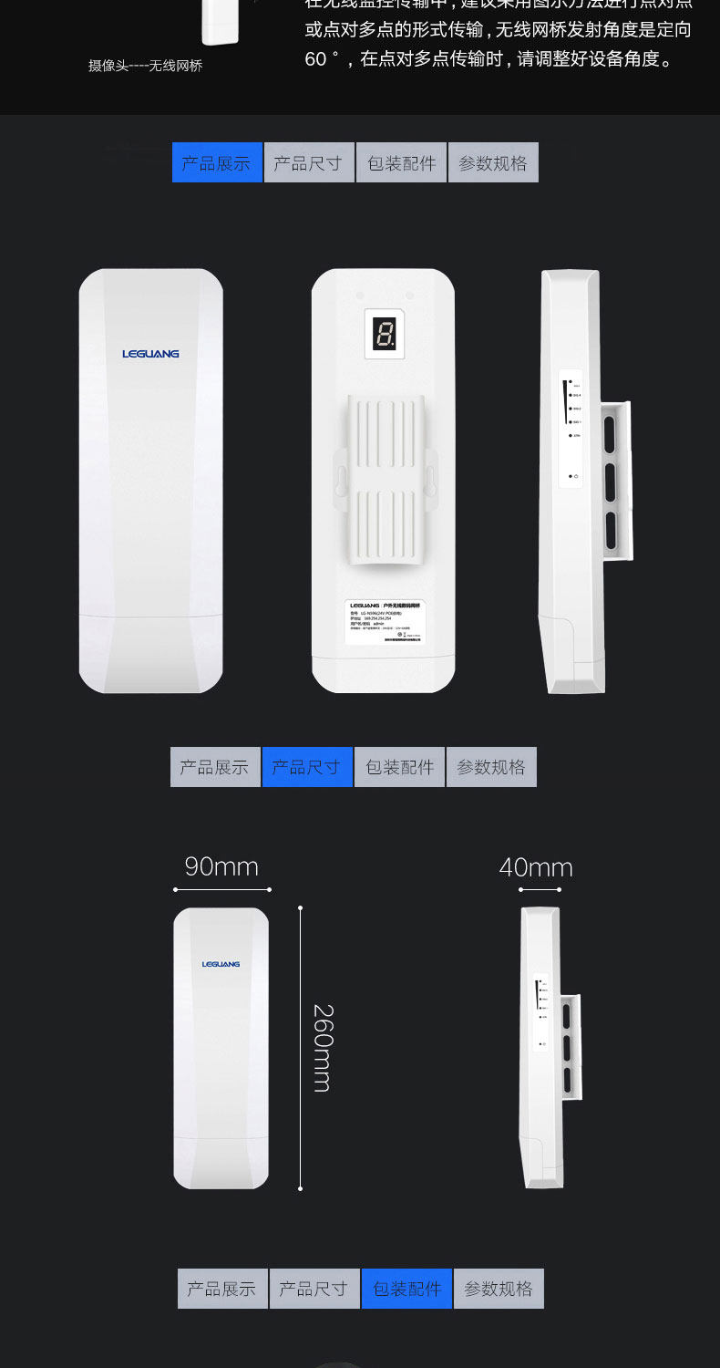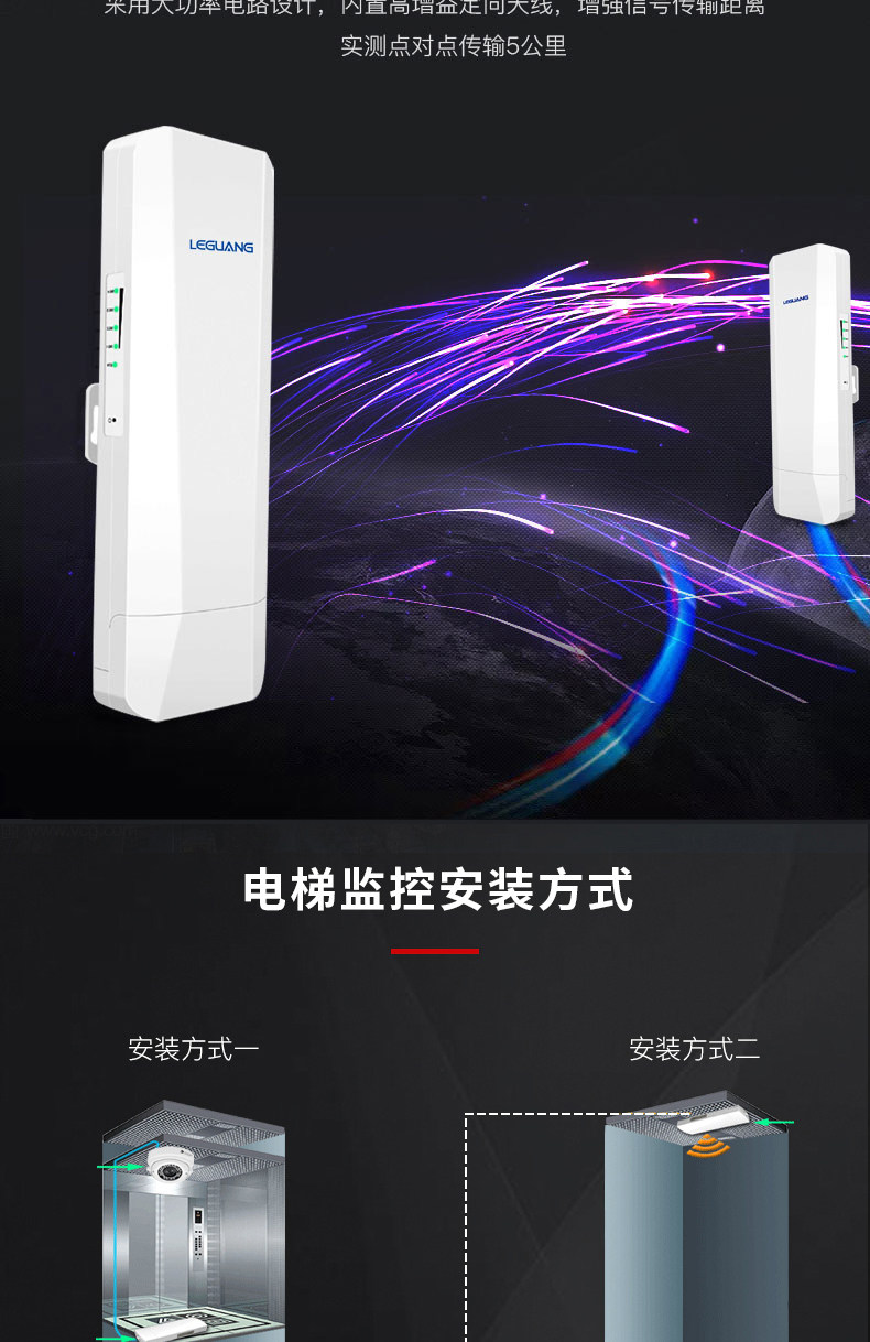 Leguang Digital Network Bridge Wireless Ap Outdoor 3Km Surveillance Tower Crane Elevator Dedicated 5.8g High-Power Cpe Pair