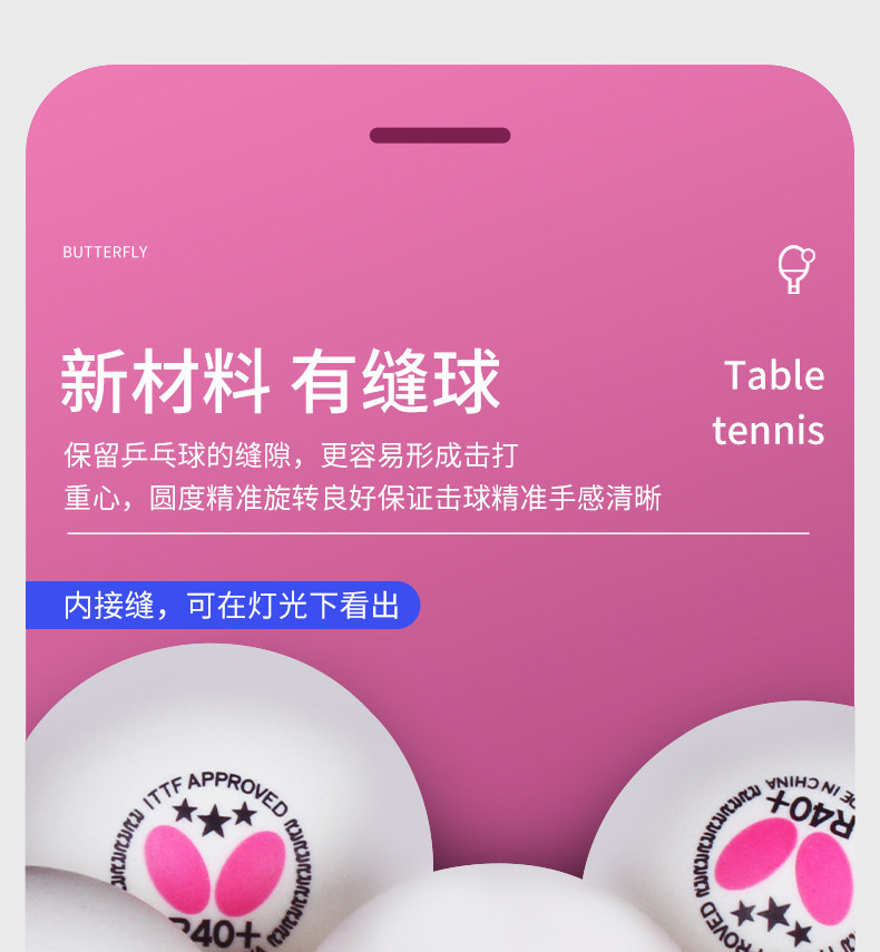 Authentic Butterfly Table Tennis Ball, Three-Star Ball 40+, Seam Ball, New Material, Three-Star Table Tennis Ball