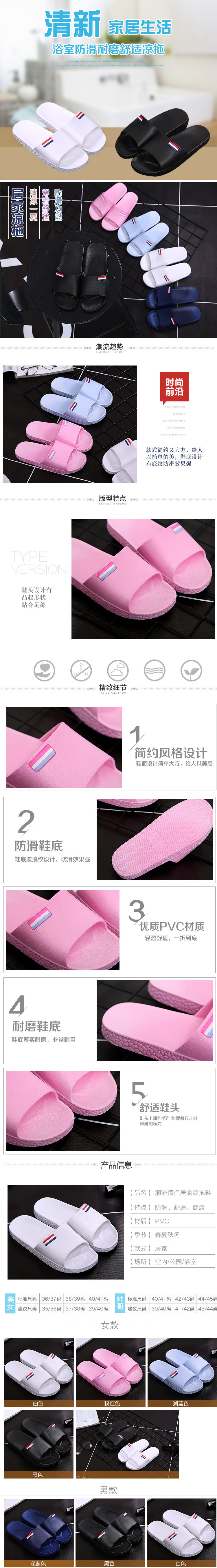 Slippers for Women Indoor Non-Slip Home Use Simple Pure Color Couples Home Bathing Bathroom Slippers Men Black and White Summer