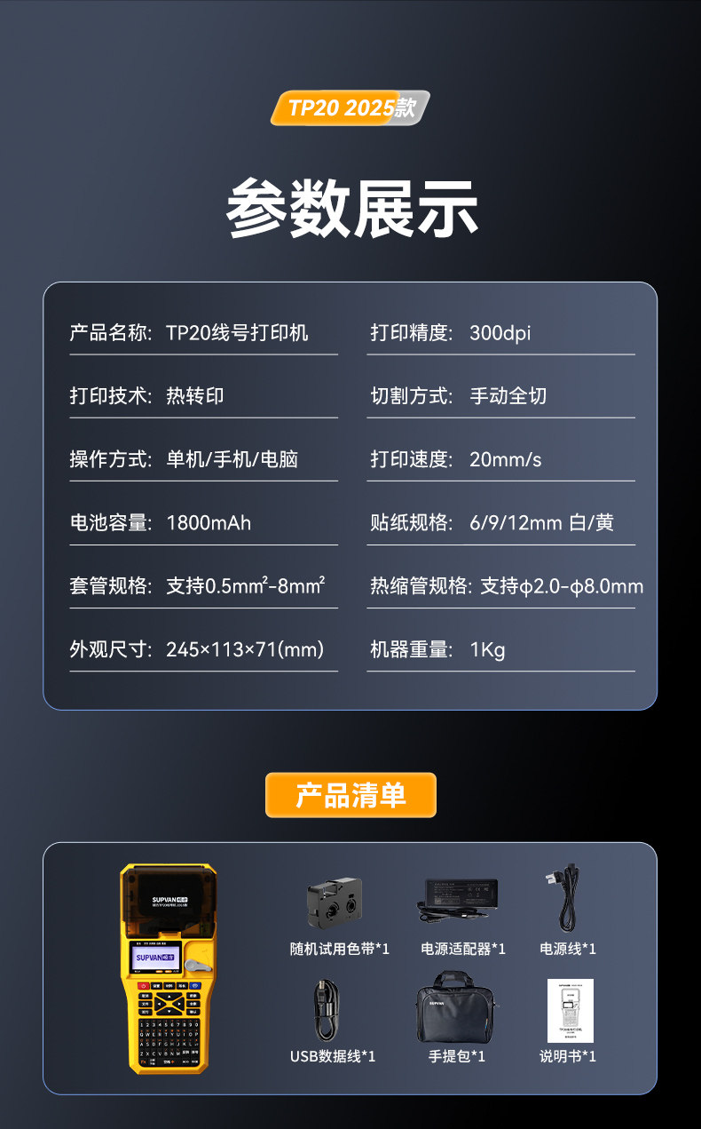 | Color Classification | 2025 Tp20 Standard Package [Includes 1 Ribbon + 1 Label Tape + Free Carrying Case] (Printer Only + Bluetooth + Pc Software/Built-In Lithium Battery),2025 Tp20 [Includes 1 Ribbon + 1 Sleeve + 1 Label Tape + Free Carrying Case] (Stand-Alone + Bluetooth + Pc Version / Built-In Lithium Battery),2025 Tp20 [Includes 2 Ribbons + 2 Sleeves + 1 Label Tape + Free Carrying Case] (Standalone + Bluetooth + Pc Version / Built-In Lithium Battery),2025 Tp20 [Includes 3 Ribbons + 3 Sleeves + 1 Label Ribbon + Free Carrying Case] (Standalone + Bluetooth + Pc Version / Built-In Lithium Battery),2025 Tp20 [Includes 4 Color Ribbons + 4 Sleeves + 1 Label Ribbon + Free Carrying Case] (Standalone + Bluetooth + Pc Version / Built-In Lithium Battery),2025 Tp20 [Includes 5 Ribbons + 5 Sleeves + 1 Label Ribbon + Free Carrying Case] (Standalone + Bluetooth + Pc Version / Built-In Lithium Battery),2025 Tp20 [Includes 6 Ribbons + 6 Sleeves + 1 Label Ribbon + Free Carrying Case] (Standalone + Bluetooth + Pc Version / Built-In Lithium Battery),2025 Tp20 [Includes 7 Color Ribbons + 7 Sleeves + 1 Label Ribbon + Free Carrying Case] (Standalone + Bluetooth + Pc Version / Built-In Lithium Battery),2025 Tp20 [Includes 10 Ribbons + 10 Sleeves + 1 Label Tape + Free Carrying Case] (Standalone + Bluetooth + Pc Version / Built-In Lithium Battery),2025 Tp20 [Includes 2 Ribbons + 200m Heat Shrink Tube + 1 Label Ribbon + Free Carrying Case] (Standalone + Bluetooth + Pc Version / Built-In Lithium Battery),2025 Tp20 [Includes 4 Color Ribbons + 400m Heat Shrink Tubing + 1 Label Ribbon + Free Carrying Case] (Standalone + Bluetooth + Pc Version / Built-In Lithium Battery),Tp70 (Stand-Alone + Bluetooth Version) Comes Standard [Includes 1 Ribbon + 1 Sticker + Carrying Case],Tp70 (Stand-Alone + Bluetooth Version) [Includes 2 Ribbons + 2 Sleeves + 1 Sticker + Carrying Case],Tp76I (Stand-Alone + Bluetooth + Computer Version) [Includes 2 Ribbons + 2 Sleeves + 1 Sticker + Carrying Case],Tp76I (Stand-Alone + Bluetooth + Computer Version) [Includes 5 Ribbons + 5 Sleeves + 1 Sticker + 1 Stand + Carrying Case],The Old Tp20 Comes Standard with [1 Ribbon Included + Free Handbag] (Stand-Alone Version/Promotional Discount of 400),Old Tp20 (Stand-Alone Version/Promotional Discount of 400) [Includes 1 Ribbon + 1 Sleeve + Free Handbag],Old Tp20 (Stand-Alone Version/Promotional Discount of 400) [Includes 2 Ribbons + 2 Sleeves + Free Handbag],Old Tp20 (Stand-Alone Version/Promotional Discount of 400) [Includes 3 Color Belts + 3 Sleeves + Free Handbag],2025 Tp20 [Includes 1 Ribbon + 1 Sleeve + 1 Yellow Label Ribbon + 1 White Label Ribbon + Free Carrying Case] (Stand-Alone + Bluetooth + Computer Version/Built-In Lithium Battery),2025 Tp20 [Includes 2 Ribbons + 2 Sleeves + 1 White Label Ribbon + 1 Yellow Label Ribbon + Free Carrying Case] (Standalone + Bluetooth + Pc Version / Built-In Lithium Battery),2025 Tp20 [Includes 3 Color Ribbons + 3 Sleeves + 1 White Label Ribbon + 1 Yellow Label Ribbon + Free Carrying Case] (Standalone + Bluetooth + Pc Version / Built-In Lithium Battery),2025 Tp20 [Includes 4 Color Ribbons + 4 Sleeves + 1 White Label Ribbon + 1 Yellow Label Ribbon + Free Carrying Case] (Standalone + Bluetooth + Pc Version / Built-In Lithium Battery),2025 Tp20 [Includes 5 Color Ribbons + 5 Sleeves + 1 White Label Ribbon + 1 Yellow Label Ribbon + Free Carrying Case] (Standalone + Bluetooth + Pc Version / Built-In Lithium Battery),2025 Tp20 [Includes 6 Ribbons + 6 Sleeves + 1 White Label Ribbon + 1 Yellow Label Ribbon + Free Carrying Case] (Standalone + Bluetooth + Pc Version / Built-In Lithium Battery),2025 Tp20 [Includes 10 Ribbons + 10 Sleeves + 1 White Label Ribbon + 1 Yellow Label Ribbon + Free Carrying Case] (Standalone + Bluetooth + Pc Version / Built-In Lithium Battery),2025 Tp20 [Includes 2 Ribbons + 200m Heat Shrink Tube + 1 White Label Ribbon + 1 Yellow Label Ribbon + Free Carrying Case] (Standalone + Bluetooth + Pc Version / Built-In Lithium Battery),2025 Tp20 [Includes 4 Color Ribbons + 400m Heat Shrink Tubing + 1 White Label Ribbon + 1 Yellow Label Ribbon + Free Carrying Case] (Standalone + Bluetooth + Pc Version / Built-In Lithium Battery) |