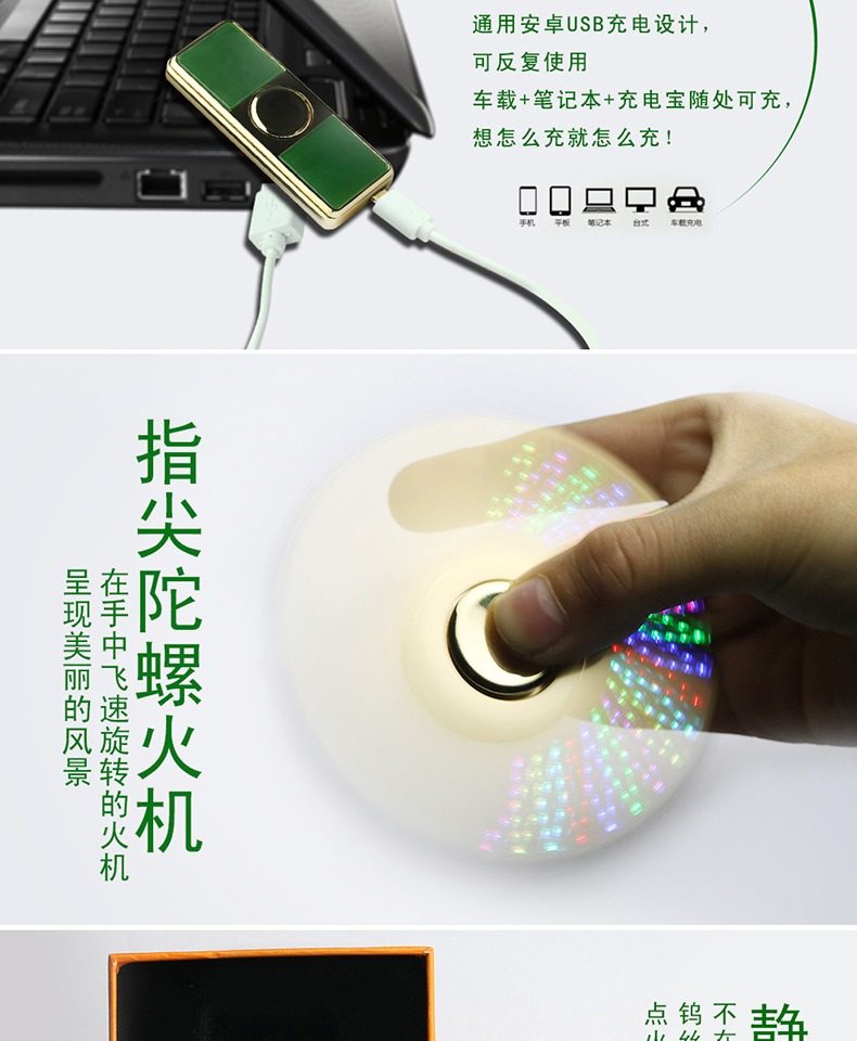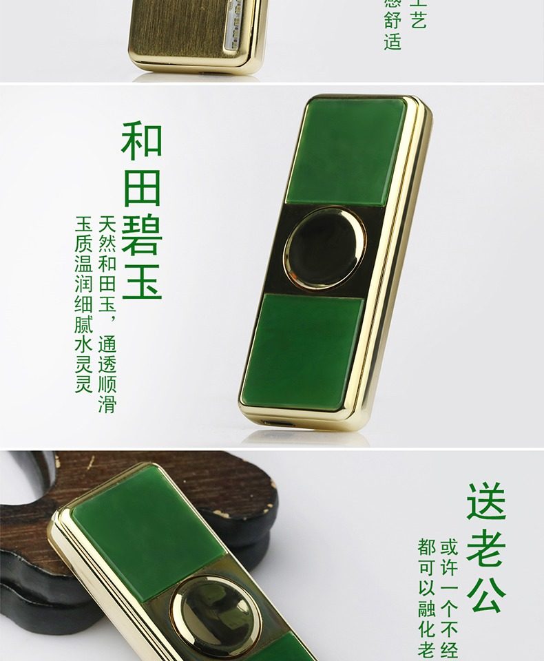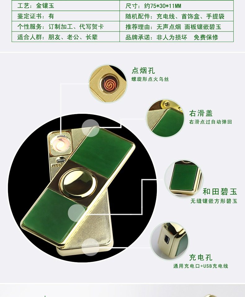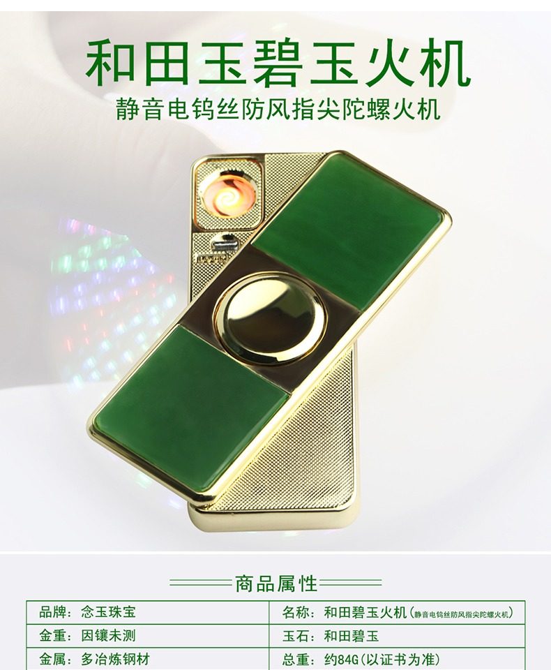 Titanium Alloy Luminous Hetian Jade Lighter Rechargeable Tungsten Wire Windproof Silent Fuel-Free Jade Fidget Spinner Lighter