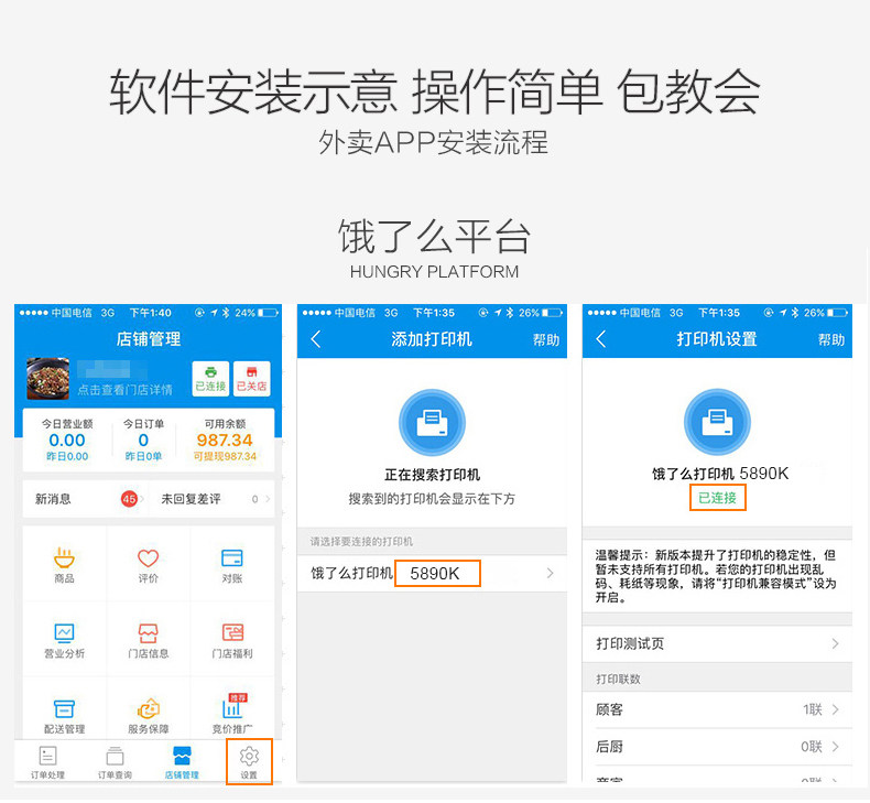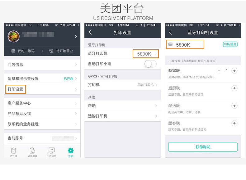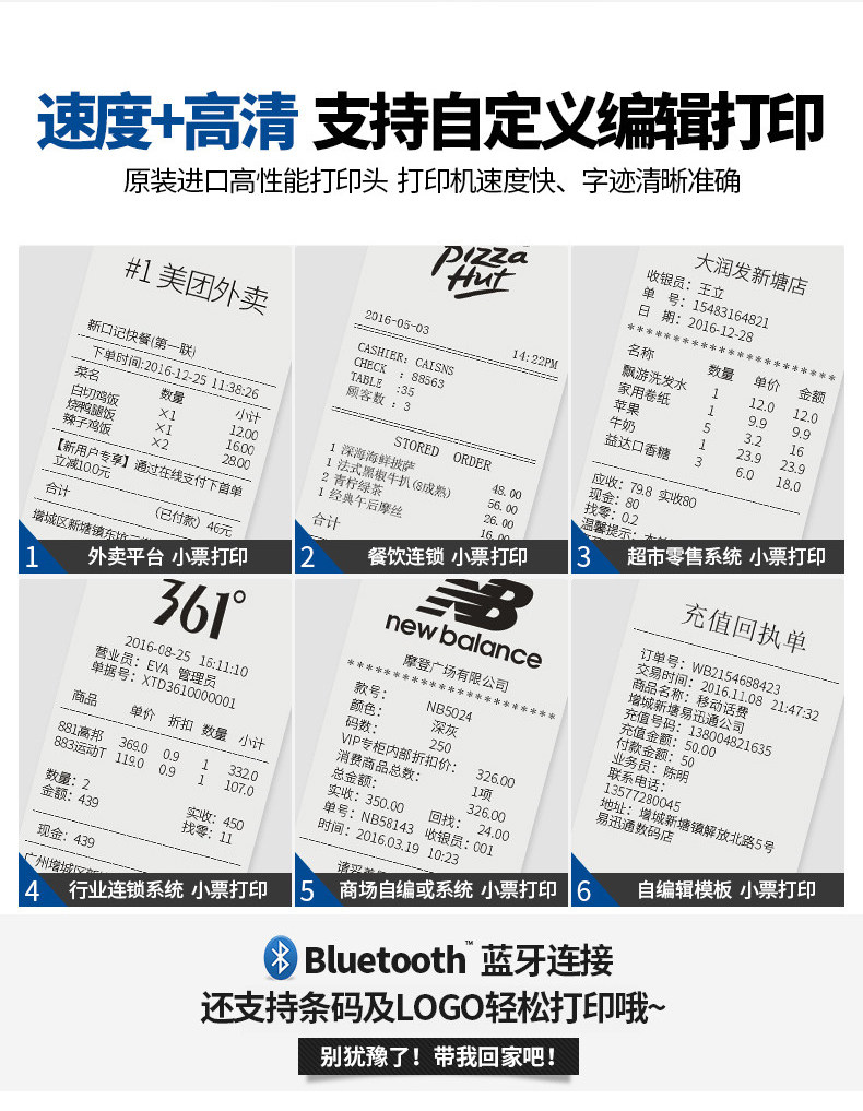 Xunlai Takeaway Printer Automatically Receives Orders, Supermarket Cash Register Receipt Printer, Bluetooth Printer, Thermal Paper 58mm, Ele.Me Meituan Order Printer, Receipt Printer, Catering Kitchen Printer, Menu Printer