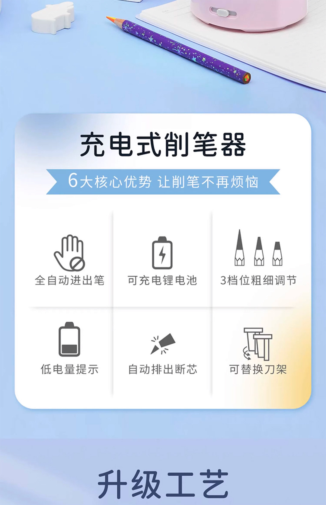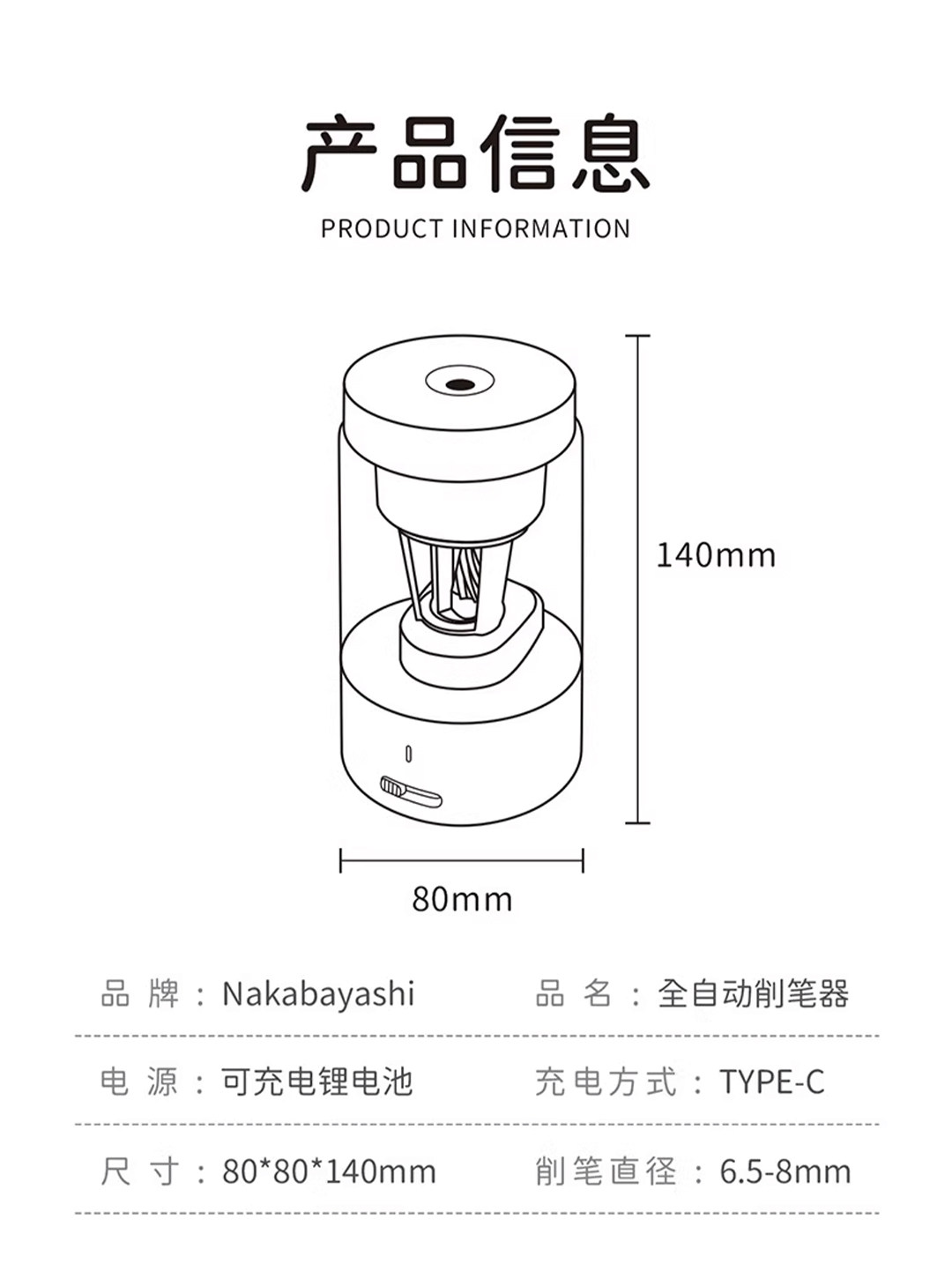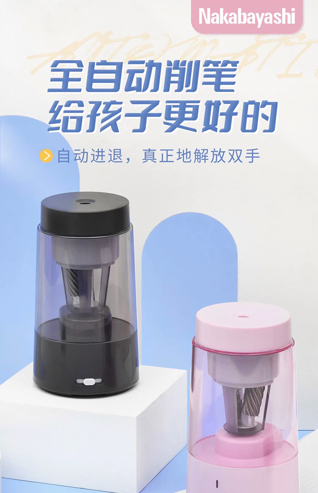 Nakabayashi Zhonglin Electric Pencil Sharpener, Pencil Sharpener for Children, Pencil Sharpener for Students, New Model Children's Stationery and School Supplies