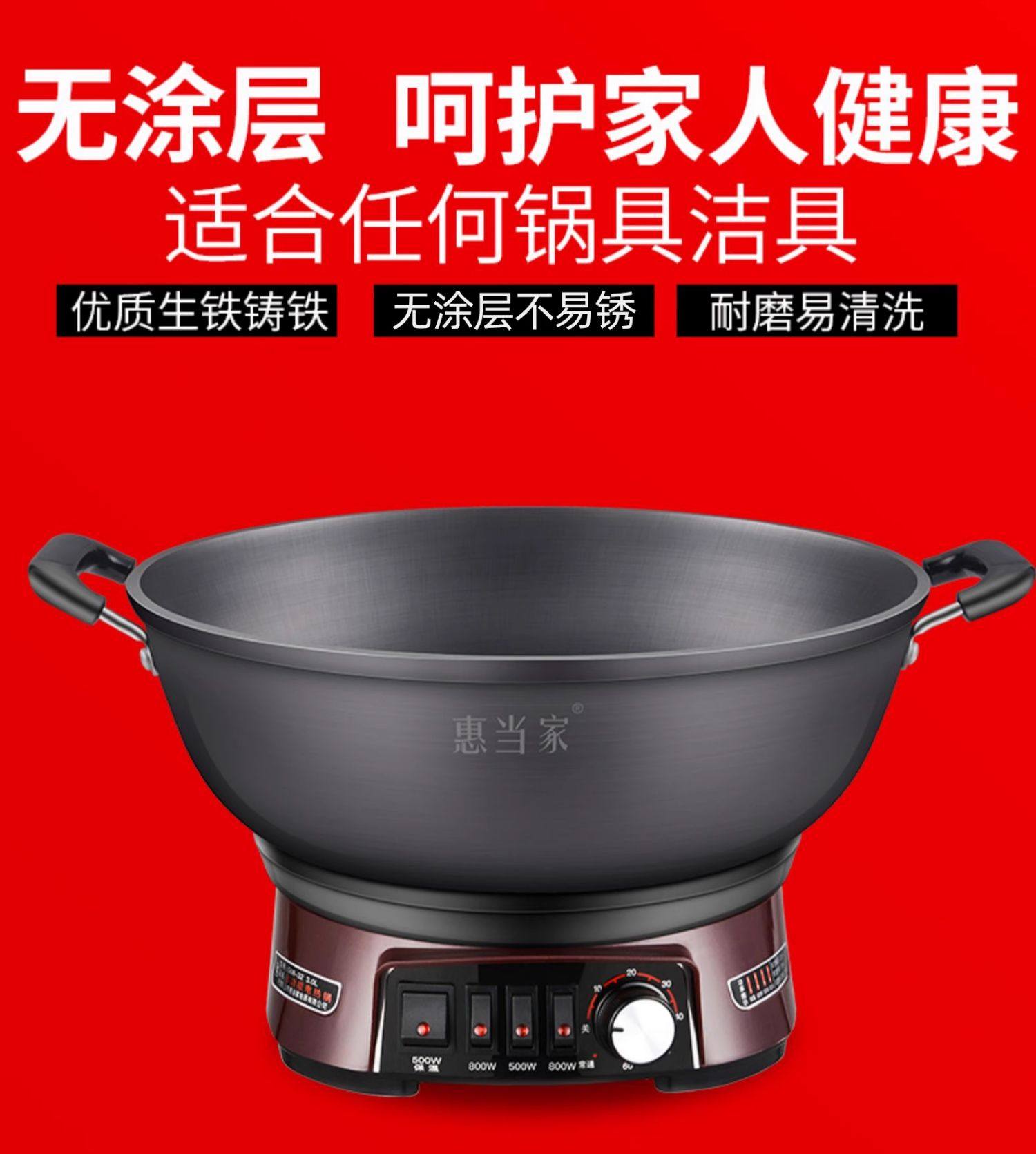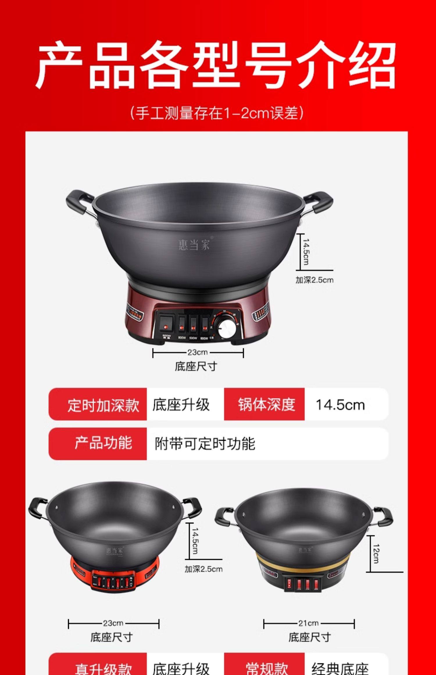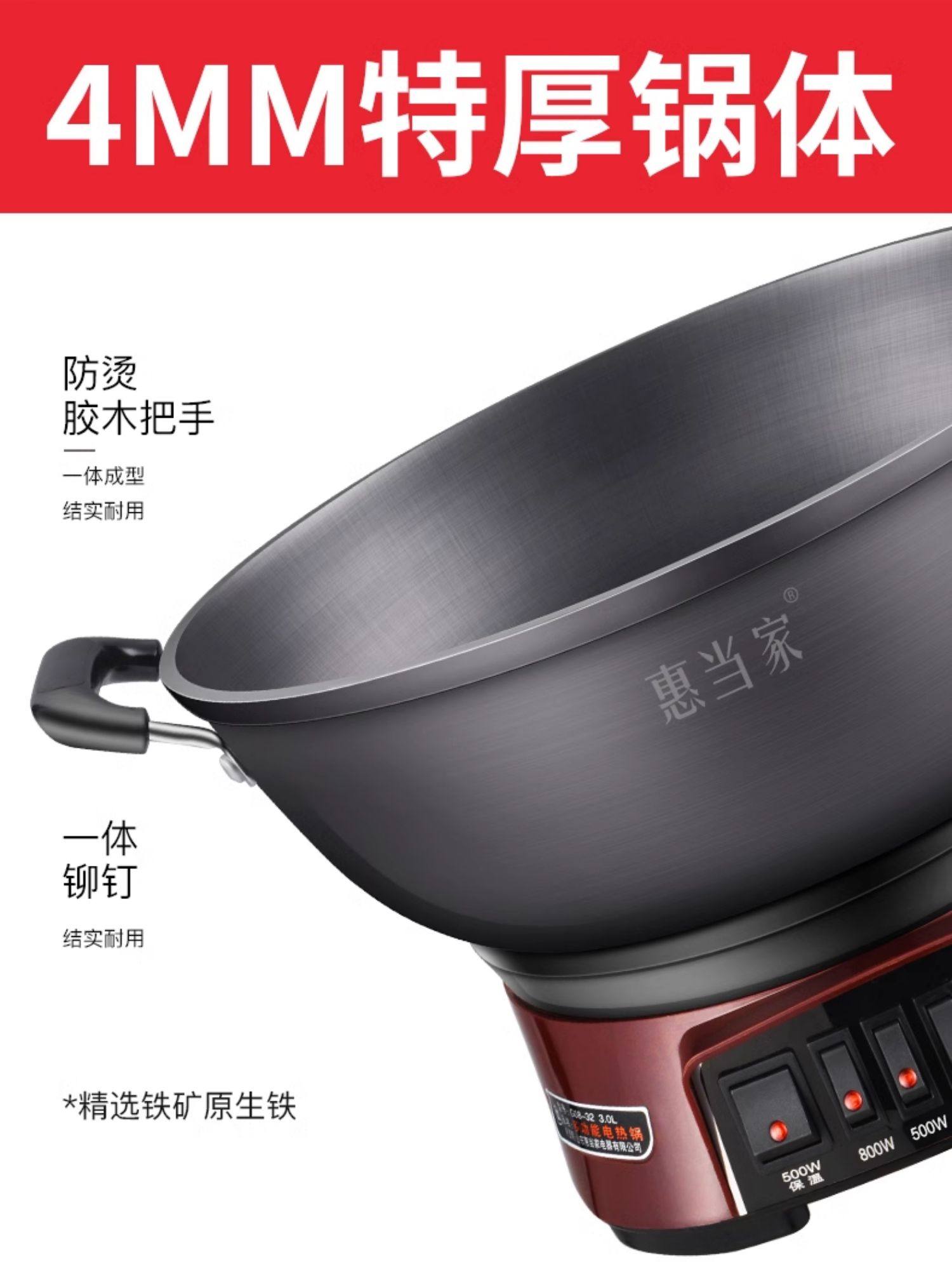 Huidangjia Multifunctional Electric Wok, Household Electric Cast Iron Wok, Stir-Fry All-In-One Non-Stick Pot, Hot Pot Cooking Pot
