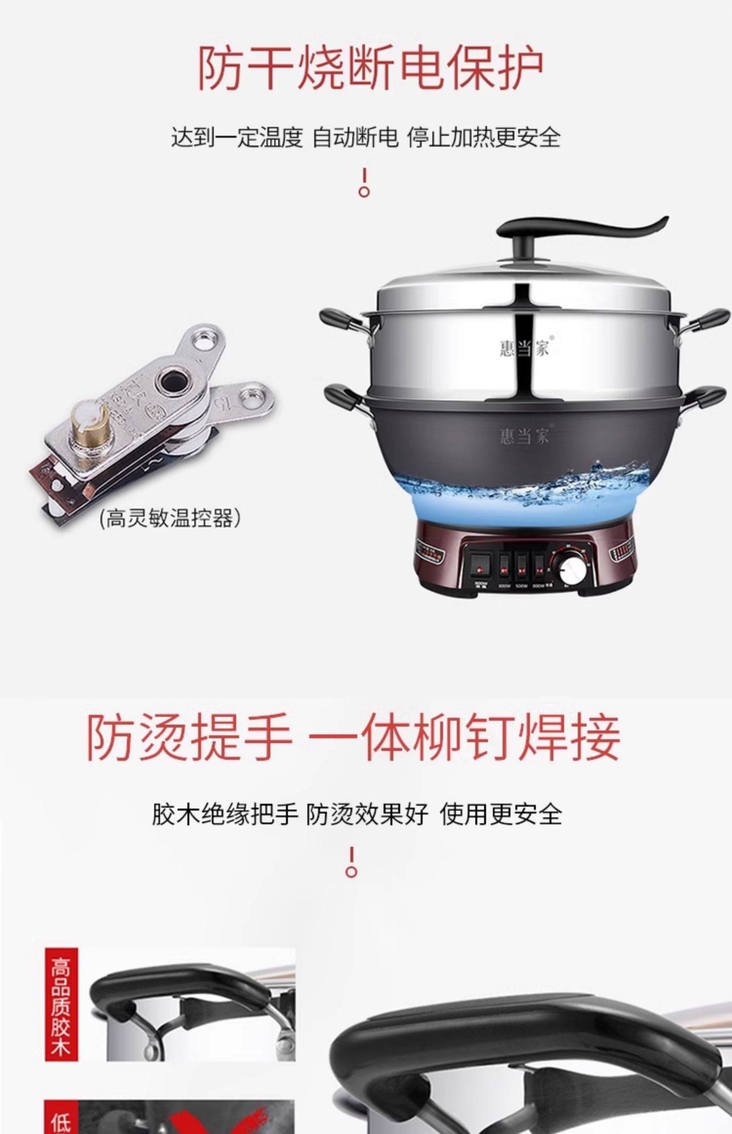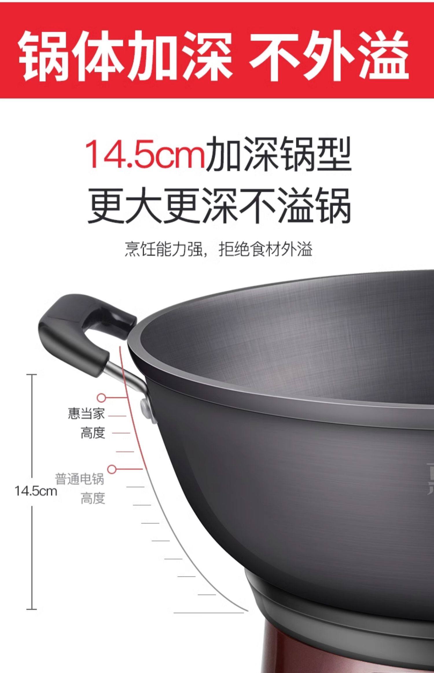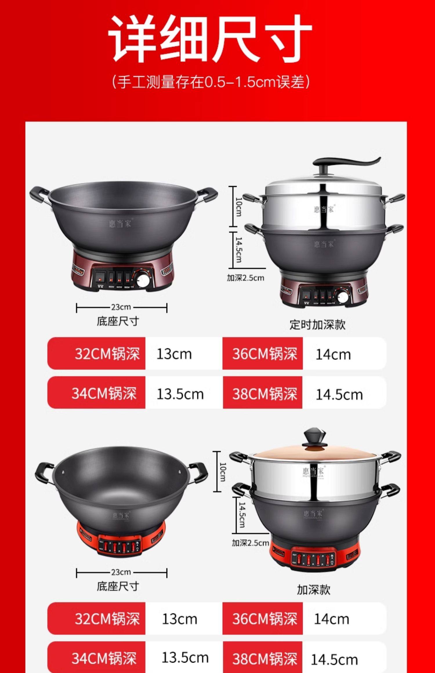 Huidangjia Multifunctional Electric Wok, Household Electric Cast Iron Wok, Stir-Fry All-In-One Non-Stick Pot, Hot Pot Cooking Pot
