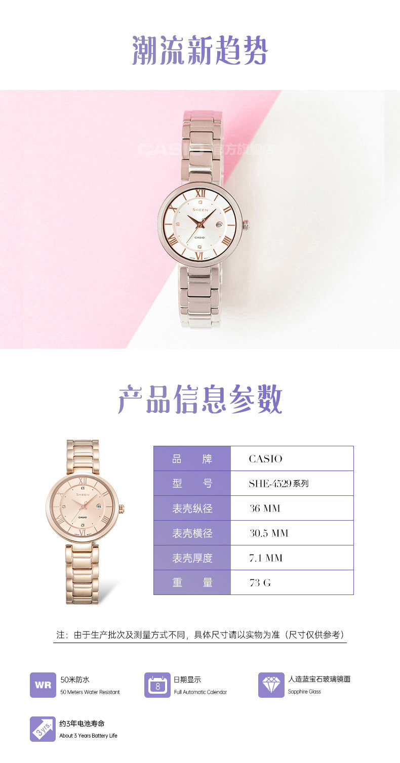 Casio Flagship Store She-4529 Waterproof Student Simple Student Watch Women's Model Casio Genuine Sheen