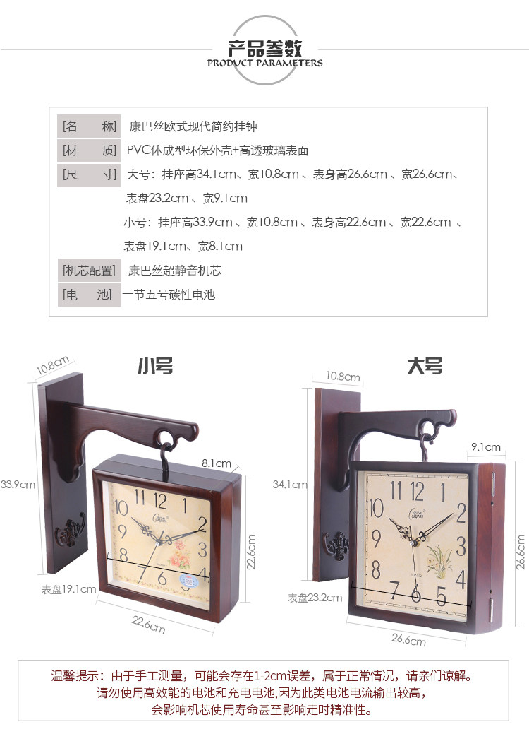 Kangbas Wall Clock Double-Sided Clock Simple Living Room Stylish Creative Wall Decoration Artist's Silent Clock