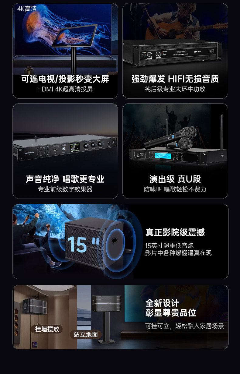 | Color Classification | 【Professional Brand】2025's Hottest Seller! Complete, Premium, Original Configuration. Seamless Compatibility. Professional Audio, All in One!,【Audio Upgrade】For Singing, Go Pro with a Four-Way Speaker System! Get Ultimate Vocal Performance, Layered Sound Effects, and Immersive Audio Experience!,【Configuration Upgrade】Upgraded Pre- and Post-Amplifier Independent Effects Configurations Deliver Pristine, Distortion-Free Audio for a Professional Karaoke Experience!,【Dual 10inch Four-Way Original Professional 2.0】Upgraded with Independent Effects, Crystal-Clear Vocals (Professional Ktv-Grade Effects),【Dual 10inch Four-Way Original Professional 2.1】+ 12inch Subwoofer (Rumbling Bass for Karaoke and Movies - Double the Impact!),【Dual 10inch Four-Way Original High-Spec 2.0】Upgraded to Performance-Grade Effects and Microphones (80% Enhanced Singing Experience),【Dual 10inch Four-Way Original High-Spec 2.1】+ 12inch Subwoofer (Professional Karaoke & Enhanced Movie Experience),【Dual 12inch Four-Way Original Exclusive 2.0】Punchy Bass, Crystal-Clear Vocals (Super Impressive Ktv Room Experience),【Dual 12inch Four-Way Flagship Exclusive 2.1】+ 12inch Subwoofer (Super Immersive Ktv + Theater Experience),【Dual 12inch Four-Way Flagship Premium 2.1】+ 15inch Subwoofer (Deep Bass, True Cinematic Immersion),【Dual 12inch Four-Way Original Top-Tier 2.0】Upgraded to Top-Tier Amplifier, Effects Processor, and Microphone (Achieve Professional Singing Effects Instantly),【Dual 12inch Quad-Crossover Flagship Top-Tier 2.1】+ 12inch Subwoofer (Top-Tier Karaoke + Movie Experience, Maximum Impact),【Dual 12inch Quad-Crossover Supreme Configuration 2.1】+ 15inch Subwoofer (Ultimate Luxury Performance, Peak Entertainment for Movie & Karaoke),【Quad-Crossover, Four-Way, Premium 4.0】 Immersive Surround Sound, Covers Large Areas with No Dead Zones,【Four-Way, Four-Unit High-End 4.1 System】+ 【Subwoofer】 (Ultimate Surround Sound for Karaoke and Movies),【Quad-Core, Quad-Speaker, Premium 4.0】High-Power Output: Effortlessly Handles Complex Environments Like Villas and Grand Living Rooms,[12inch Four-Way Two-To-Four Top Luxury 4.1] + 15inch Subwoofer (Top Luxury Surround, Large Space Film K God) |