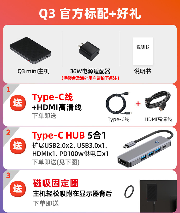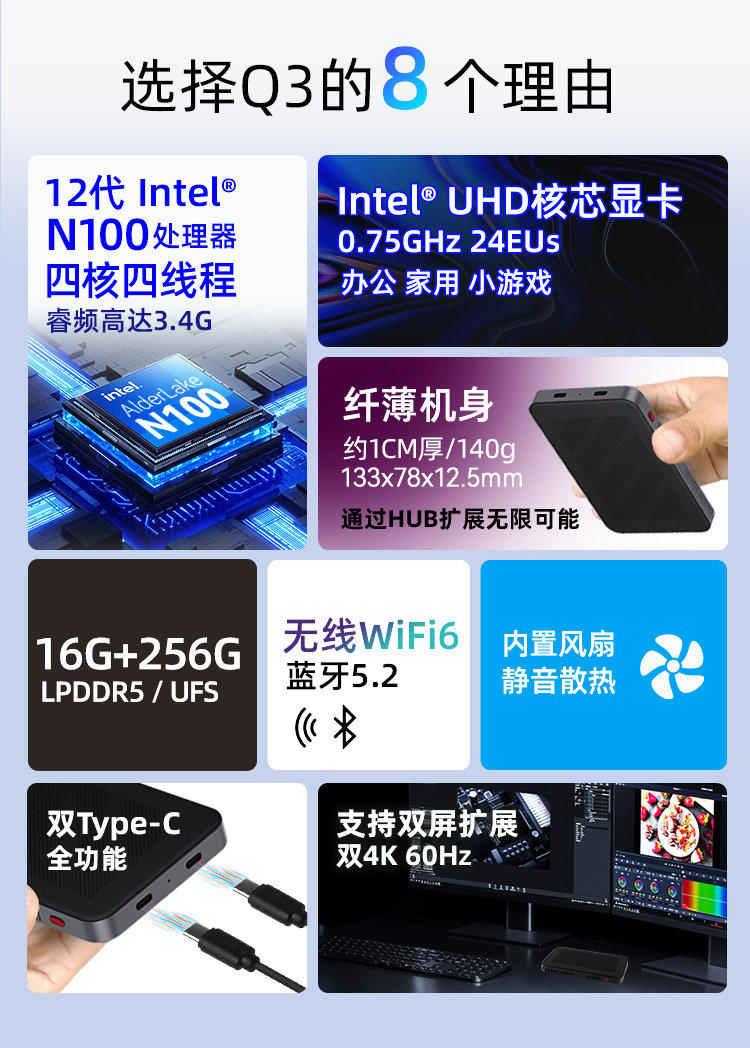 | Package Type | N100 Quad-Core Processor, Dual Type-C One-Cable Connection [Includes Hub] |