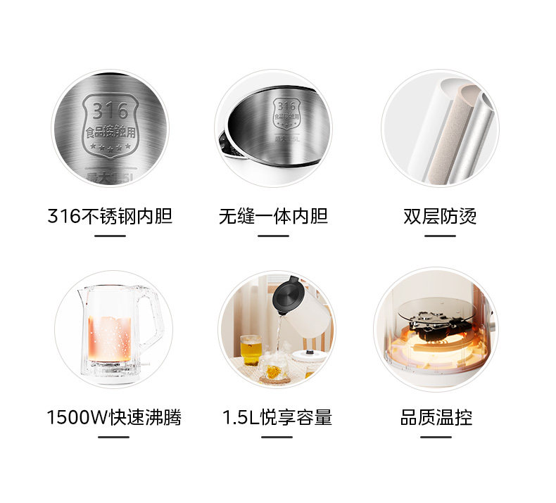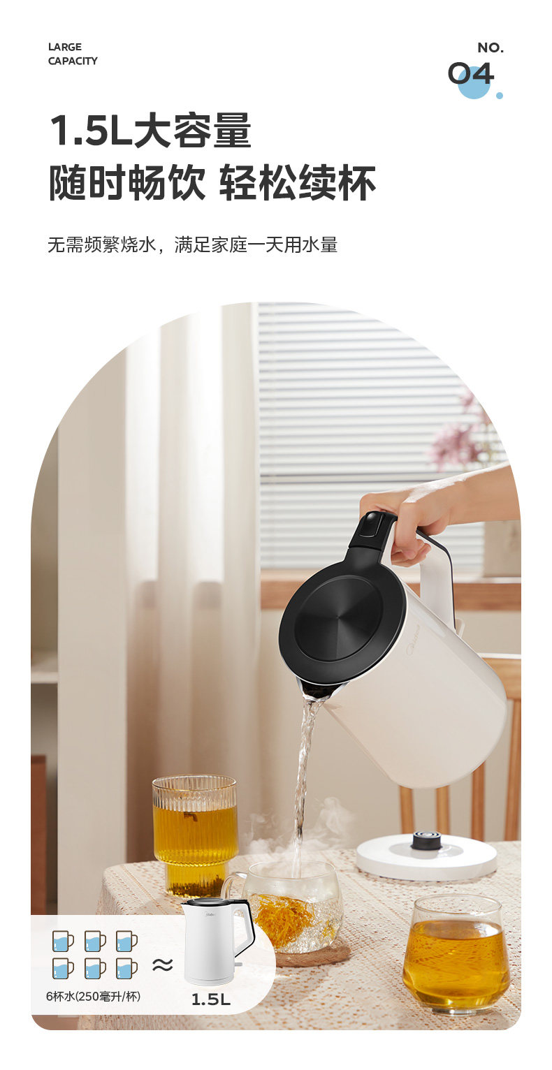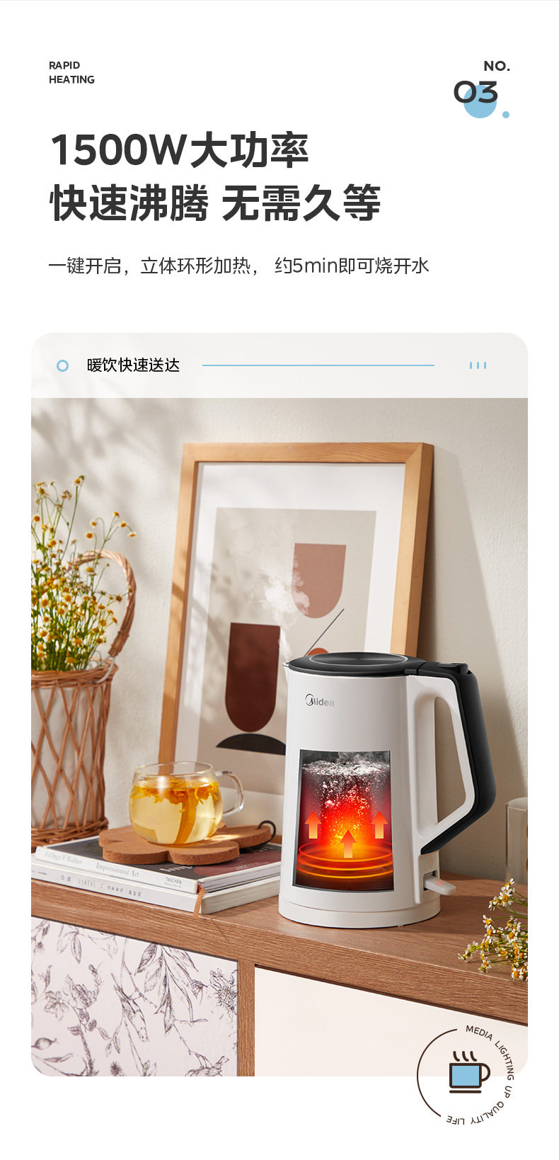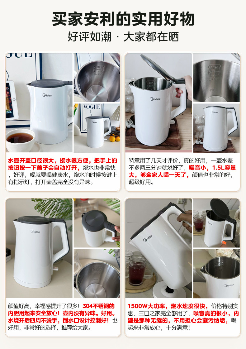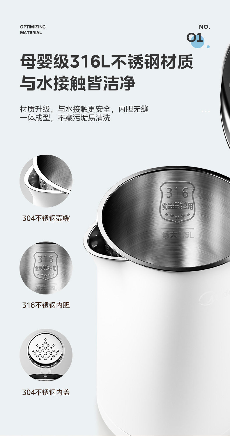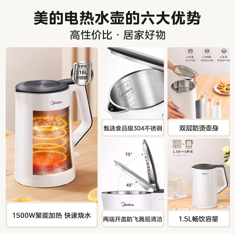 Midea Electric Kettle for Home Use, Stainless Steel Electric Heating and Insulation Integrated Kettle, Automatic Large-Capacity Water Boiling Kettle, Hualing