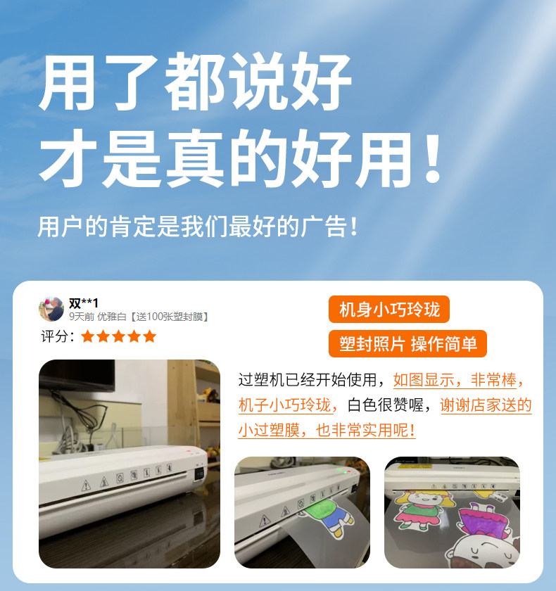 | Color Classification | Brand New Appearance Model [Faster Plasticization - Comes with Pallet],Brand New Appearance Model [100 Pieces of Plastic Film Included],Brand New Appearance Model [Comes with a Corner Fillet + 100 Pieces of Plastic Film],Brand New Appearance Model [Comes with Paper Cutter + 100 Pieces of Plastic Film],Brand New Appearance Model [Comes with Corner Fillet + Paper Cutter + 100 Sheets of Plastic Film],Classic and Elegant White [Smooth and Non-Blistering after Plasticization],Classic and Elegant White [Free 100 Pieces of Plastic Film],Classic and Elegant White [Comes with a Corner Fillet + 100 Pieces of Plastic Film],Classic and Elegant White [Comes with Paper Cutter + 100 Pieces of Plastic Film],Classic and Elegant White [Comes with Corner Rounder + Paper Cutter + 100 Sheets of Plastic Film],Classic Light Luxury Black [Smooth and Non-Blistering after Plasticization],Classic Light Luxury Black [Free 100 Pieces of Plastic Film],Classic Light Luxury Black [Comes with a Corner Fillet + 100 Pieces of Plastic Film],Classic Light Luxury Black [Comes with Paper Cutter + 100 Pieces of Plastic Film],Classic Light Luxury Black [Comes with Corner Rounder + Paper Cutter + 100 Sheets of Plastic Film],Upgraded High-Speed Model [Quick Preheating and High-Speed Film Passing],Upgraded High-Speed Model [100 Pieces of Plastic Film Included],Upgraded High-Speed Model [Comes with a Corner Fillet + 100 Sheets of Plastic Film],Upgraded High-Speed Model [Comes with Paper Cutter + 100 Sheets of Plastic Film],Upgraded High-Speed Model [Comes with Corner Fillet + Paper Cutter + 100 Sheets of Plastic Film],Upgraded to Light Luxury Black [Smooth and Non-Blistering after Plasticization],Upgrade to Light Luxury Black [100 Pieces of Plastic Film Included],Upgraded to Light Luxury Black [Comes with a Corner Fillet + 100 Pieces of Plastic Film],Upgraded to Light Luxury Black [Comes with Paper Cutter + 100 Pieces of Plastic Film],Upgraded to Light Luxury Black [Comes with Corner Fillet + Paper Cutter + 100 Sheets of Plastic Film],Good-Looking Green [Fast Plasticized - Comes with Pallet],Good-Looking Green [Free 100 Pieces of Plastic Film],Good-Looking Green [Comes with a Corner Fillet + 100 Pieces of Plastic Film],Good-Looking Green [Comes with Paper Cutter + 100 Pieces of Plastic Film],Good-Looking Model [Comes with a Corner Fillet + Paper Cutter + 100 Sheets of Plastic Film],A3/A4 Universal Flagship Model - Comes with Pallet❤️Hot Mounting and Cold Mounting - Adjustable Temperature [100 Pieces of Plastic Film Included],A3/A4 Universal Flagship Model [Comes with Corner Fillet + 100 Sheets of Plastic Film],A3/A4 Universal Flagship Model [Comes with Paper Cutter + 100 Sheets of Plastic Film],A3/A4 Universal Flagship Model [Comes with Corner Fillet + Paper Cutter + 100 Sheets of Plastic Film],[the Top Sales in the Industry Proves Its Strength in Sales],[Won the Top Three Lists of Tmall Laminating Machines] |