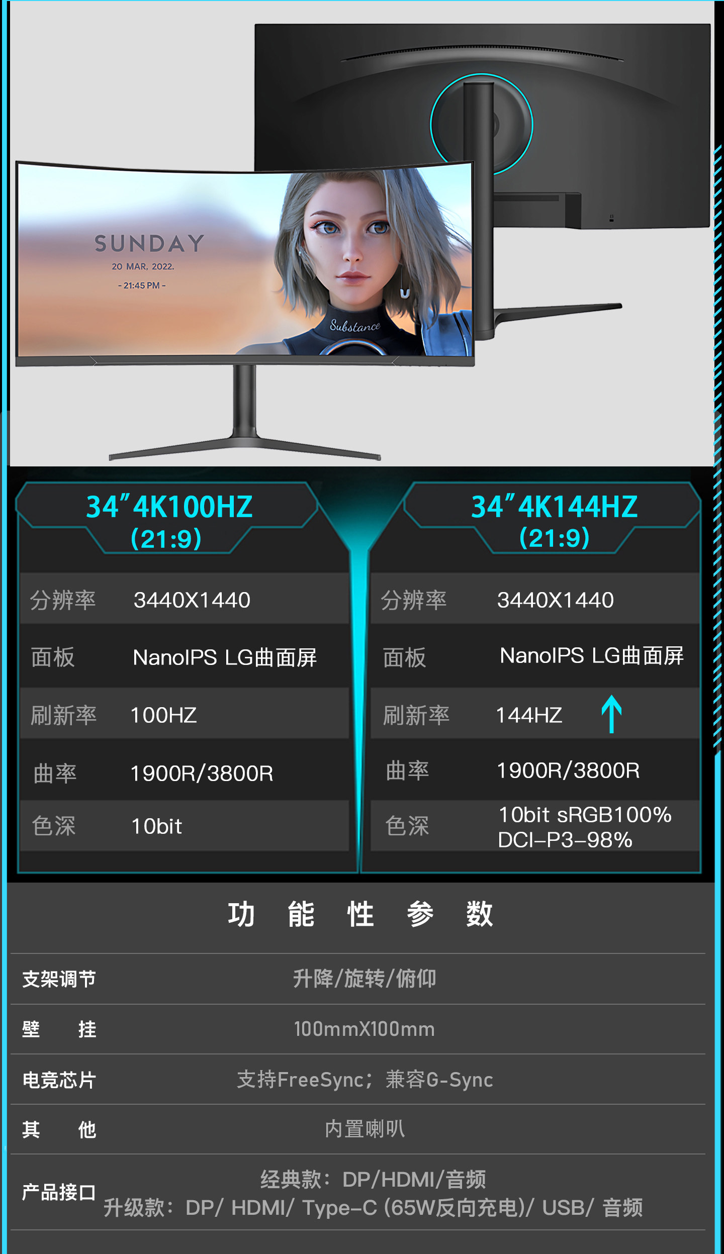 | Color Classification | 34-Inch 2K [Ips Direct Screen 120Hz] Black/Split Screen-Promotional Model,34-Inch 4K [Hva Direct Screen 165Hz] Black/Split Screen-Special Price,34-Inch 4K [Hva Large Curved Screen 165Hz] Black/Split Screen-Special Price,34-Inch 4K Monitor with Hva Wide Screen and 165Hz Refresh Rate - Height Adjustable, Rotatable, Black / Split Screen Supported / Built-In Speakers / Special Offer,34-Inch 4K Monitor with Hva Wide Screen and 165Hz Refresh Rate - Height Adjustable, Rotatable, White - Split Screen Supported, Built-In Speakers - Special Offer,34-Inch 4K [Nanoips Lg Curved Screen 100Hz] Lifting and Rotating, Split Screen/Speaker/10Bit,34-Inch 4K [Nanoips Lg Curved Screen 100Hz] Lifting and Rotating, Split Screen/Typec Screen Projection/65W Recoil/Speaker,34-Inch 4K [Nanoips Lg Curved Screen 120Hz] Lifting and Rotating, Split Screen/Speaker/10Bit,34-Inch 4K [Nanoips Lg Curved Screen 120Hz] Lifting and Rotating, Split Screen/Typec Screen Projection/65W Recoil/Speaker,34-Inch 4K Monitor [Fast Ips Flat Panel 165Hz] - Height Adjustable & Rotatable, Black / Split Screen Supported / Built-In Speakers / Special Offer,34-Inch 4K [Fastips Curved Screen 165Hz] Lifting and Rotating Typec Mobile Phone Screen Projection/65W Recoil/Speaker,34-Inch 4K [Hva Large Curved Screen 240Hz] Lifting and Rotating, High Color Gamut/Split Screen,34-Inch 4K [Hva Large Curved Screen 144Hz] Lifting and Rotating, High Color Gamut/Split Screen/Built-In Speaker,34-Inch 4K [Hva Large Curved Screen 165Hz] Lifting and Rotating, High Color Gamut/Split Screen/Built-In Speaker,34-Inch 4K [Hva Large Curved Screen 165Hz] Lifting and Rotating Split Screen/Typec Screen Projection/65W Recoil/Speaker,34-Inch 4K [Hva Large Curved Screen 165Hz] Lifting and Rotating White/Typec Screen Projection/65W Recoil/Speaker,34-Inch 4K [Hva Large Curved Screen 180Hz] Lifting and Rotating, High Color Gamut/Split Screen/Built-In Speaker,34-Inch 4K [Hva Large Curved Screen 180Hz] Lifting and Rotating Split Screen/Typec Screen Projection/65W Recoil/Speaker,34-Inch 4K [Hva Large Curved Screen 180Hz] Lifting and Rotating White/Typec Screen Projection/65W Recoil/Speaker,34-Inch 4K Monitor [Fast Ips Flat Panel 180Hz] with Height Adjustment, Rotating Stand, Type-C Mobile Screen Mirroring/65W Power Delivery/Speakers,38-Inch 4K [Nanoips Lg Curved Screen 100Hz] Lifting and Rotating Built-In Speaker/Hdr400/10Bit,38-Inch 4K [Nanoips Lg Curved Screen 100Hz] Lifting and Rotating, Split Screen/Typec Screen Projection/65W Recoil/Speaker,38-Inch 4K [Nanoips Lg Curved Screen 100Hz] Lifting and Rotating White/Typec Screen Projection/65W Recoil/Speaker,38-Inch 4K [Nanoips Lg Curved Screen 144Hz] Lifting and Rotating, Split Screen/Typec Screen Projection/65W Recoil/Speaker,38-Inch 4K Nano Ips Lg Curved Monitor (144Hz) - Height Adjustable & Rotatable, White / Type-C Screen Mirroring / 65W Power Delivery - Speakers Included,40-Inch 5K [Nanoips Lg Curved Screen 75Hz] Lifting and Rotating Typec Screen Projection/65W Recoil-Speaker,40-Inch 5K [Nanoips Lg Curved Screen 120Hz] Lifting and Rotating, Split Screen/Typec Screen Projection/65W Recoil/Speaker,49-Inch 4K [Large Curved Screen 165Hz] Split Screen/Built-In Speakers/Cool Craftsmanship,49-Inch 4K [Large Curved Screen 144Hz] Lifting and Rotating, Split Screen/Typec Screen Projection/65W Recoil-Speaker/Cool Craftsmanship,49-Inch 4K [Large Curved Screen 165Hz] Lifting and Rotating, Split Screen/Typec Screen Projection/65W Recoil-Speaker/Cool Craftsmanship,49-Inch 5K [Large Curved Screen 130Hz] Split Screen/Built-In Speakers/Cool Craftsmanship,49-Inch 5K [Large Curved Screen 120Hz] Lifting and Rotating, Split Screen/Typec Screen Projection/65W Recoil-Speaker/Cool Craftsmanship,49-Inch 5K [Large Curved Screen 165Hz] Split Screen/Built-In Speakers/Cool Craftsmanship,49-Inch 5K [Large Curved Screen 165Hz] Lifting and Rotating, Split Screen/Typec Screen Projection/65W Recoil-Speaker/Cool Craftsmanship,49-Inch 5K [Large Curved Screen 240Hz] Lifting and Rotating, Split Screen/Typec Screen Projection/65W Recoil-Speaker/Cool Craftsmanship,49-Inch 5K [Nanoips Lg Curved Screen 144Hz] Lifting and Rotating, Split Screen/Typec Screen Projection/65W Recoil/Speaker,49-Inch 5K [Nanoips Lg Curved Screen 144Hz] White Lifting and Rotating Split Screen/Typec Screen Projection/65W Recoil/Speaker |