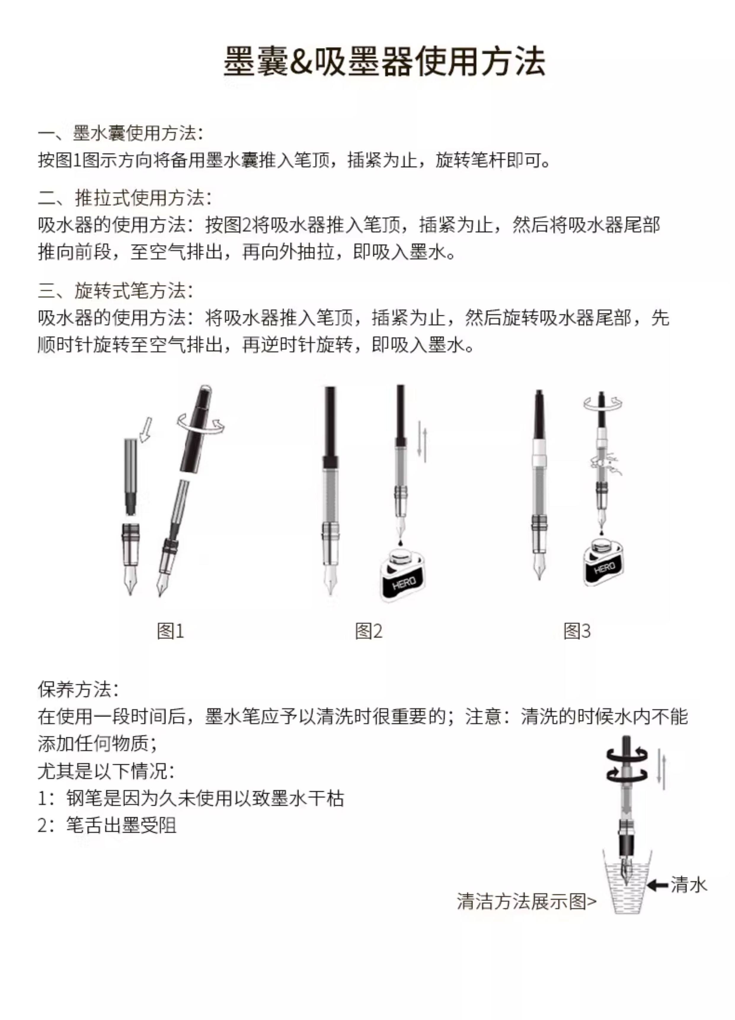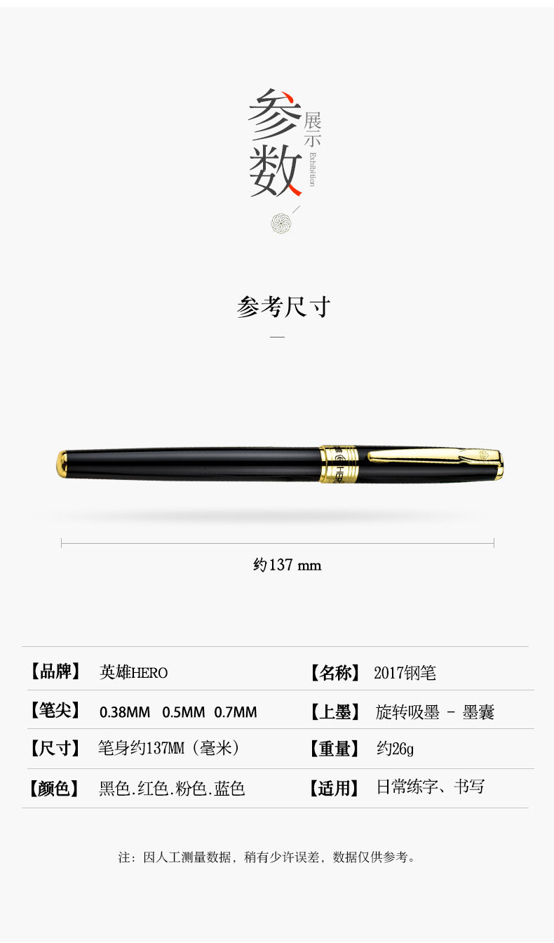 Hero Brand Fountain Pen for Students, Hard Pen for Calligraphy Practice, Extra Fine Dark Tip, Beginner Level, Suitable for Third and Fourth Grade, Junior High School Students, Boys and Girls, Fairy Gift, Official Ink Cartridge Replaceable, Engraved, Official Genuine Product