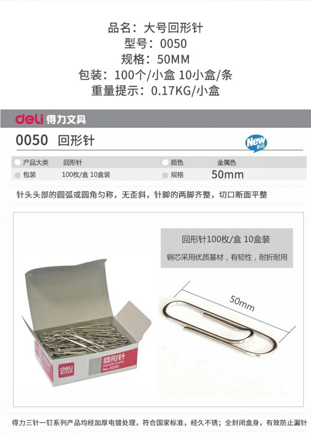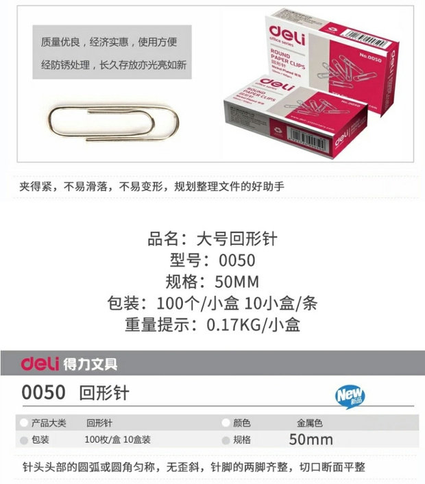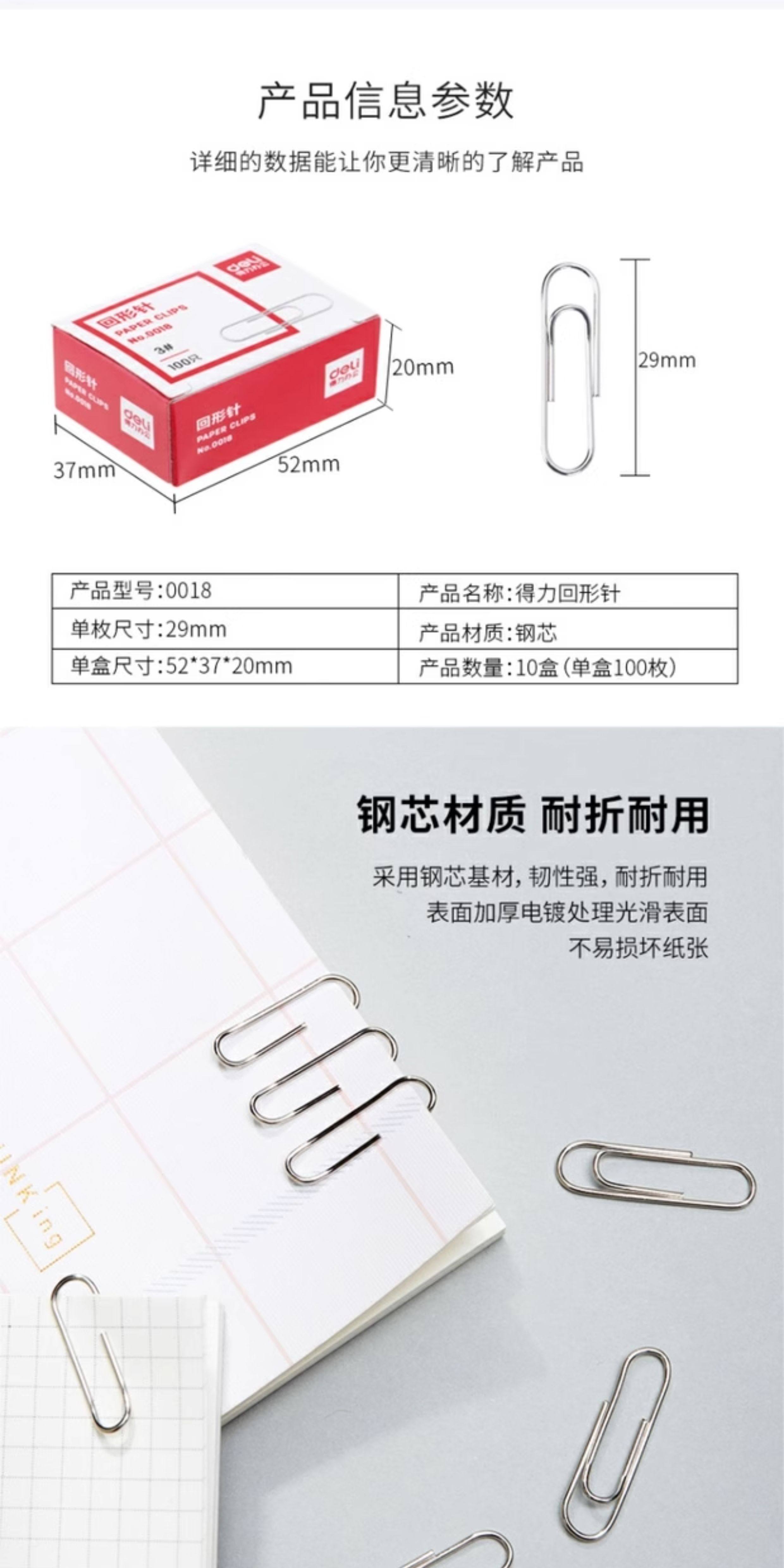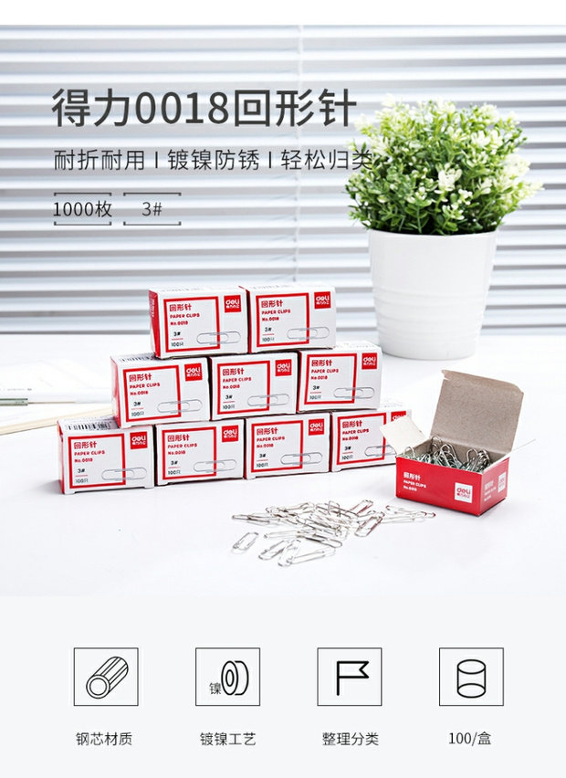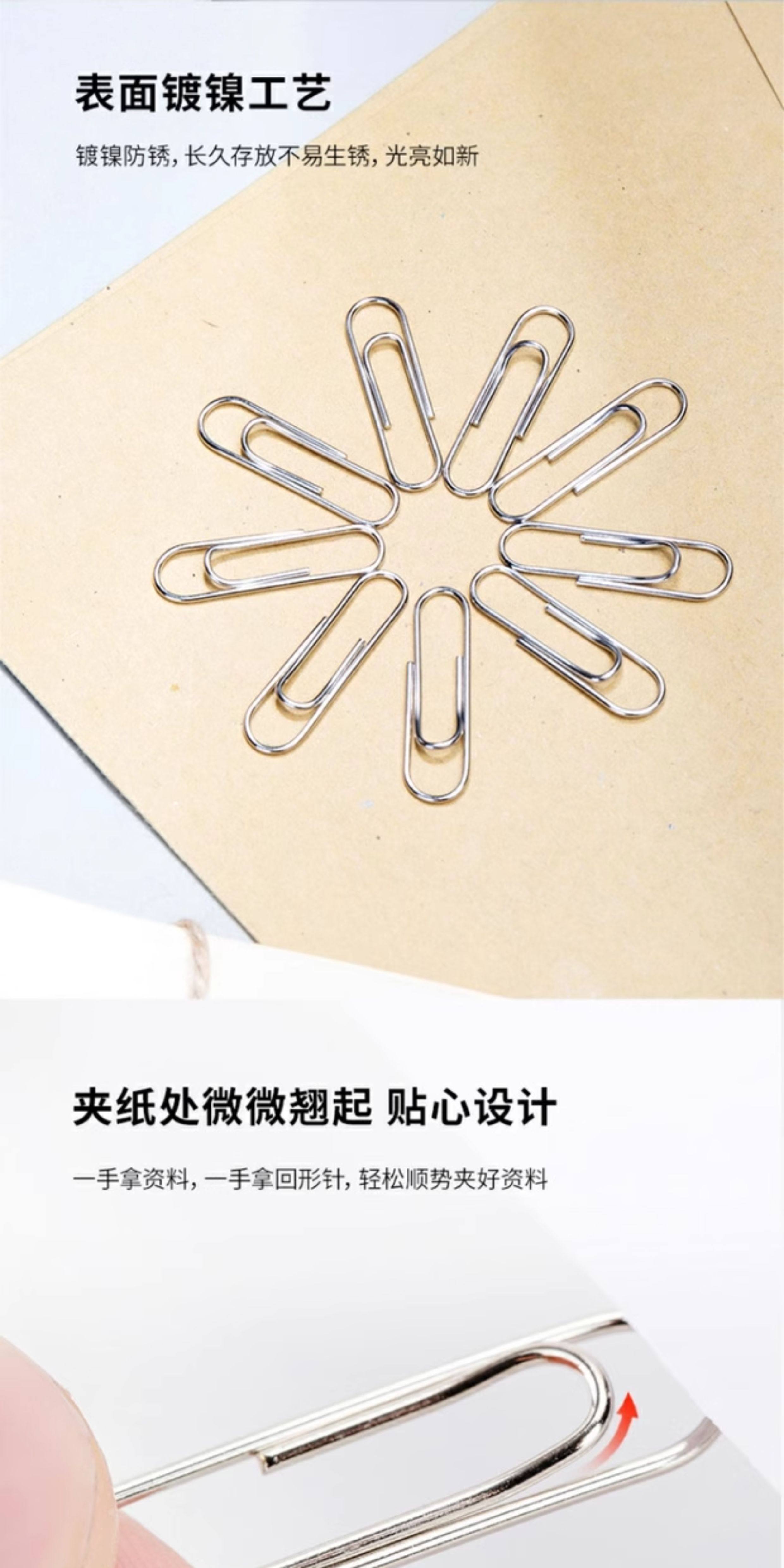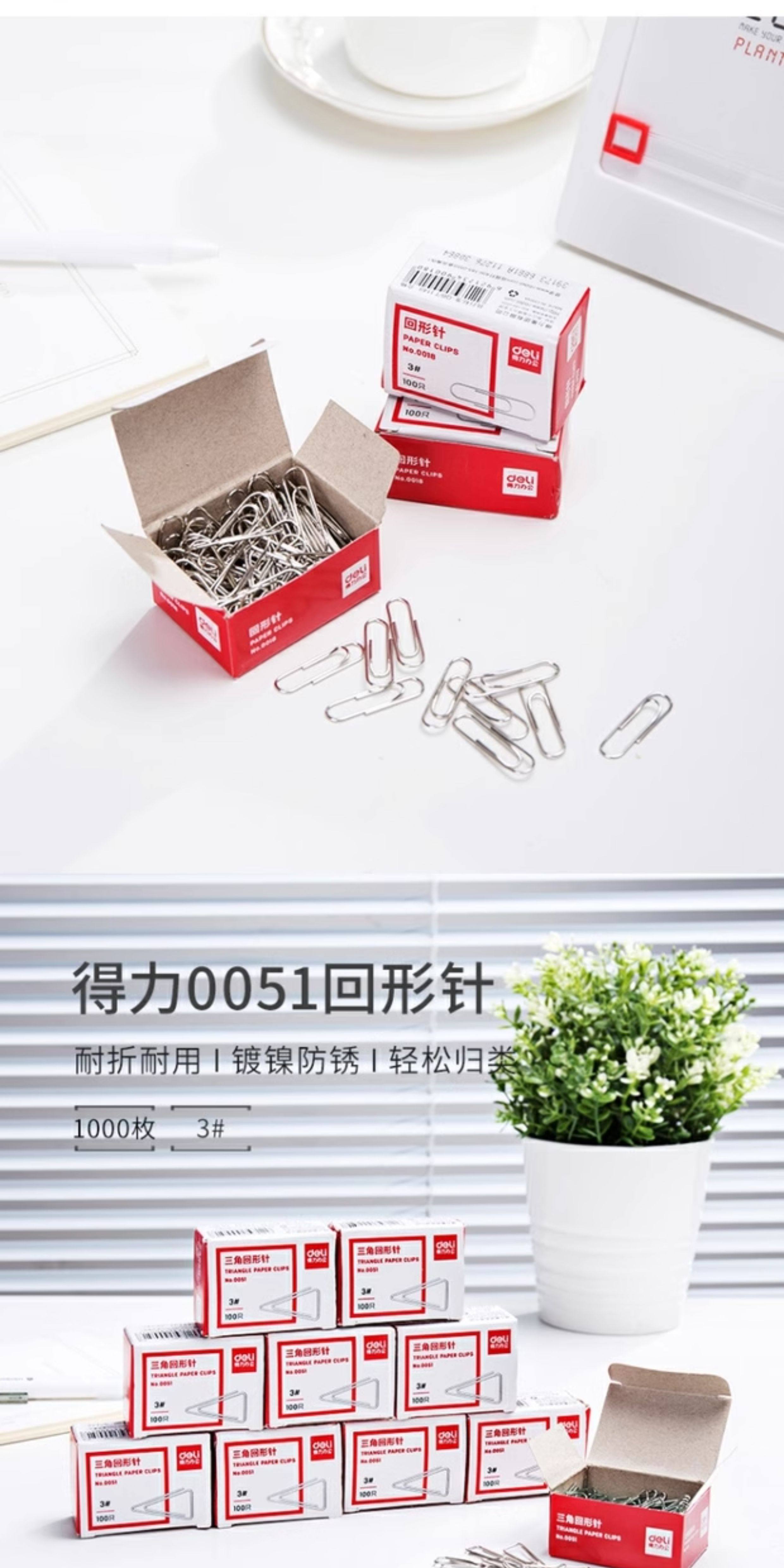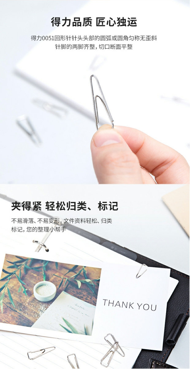 Deli Paper Clips Office Supplies, Curved Paper Clips, Binding Stationery, Nickel-Plated, Thickened, 1000 Pieces, Large