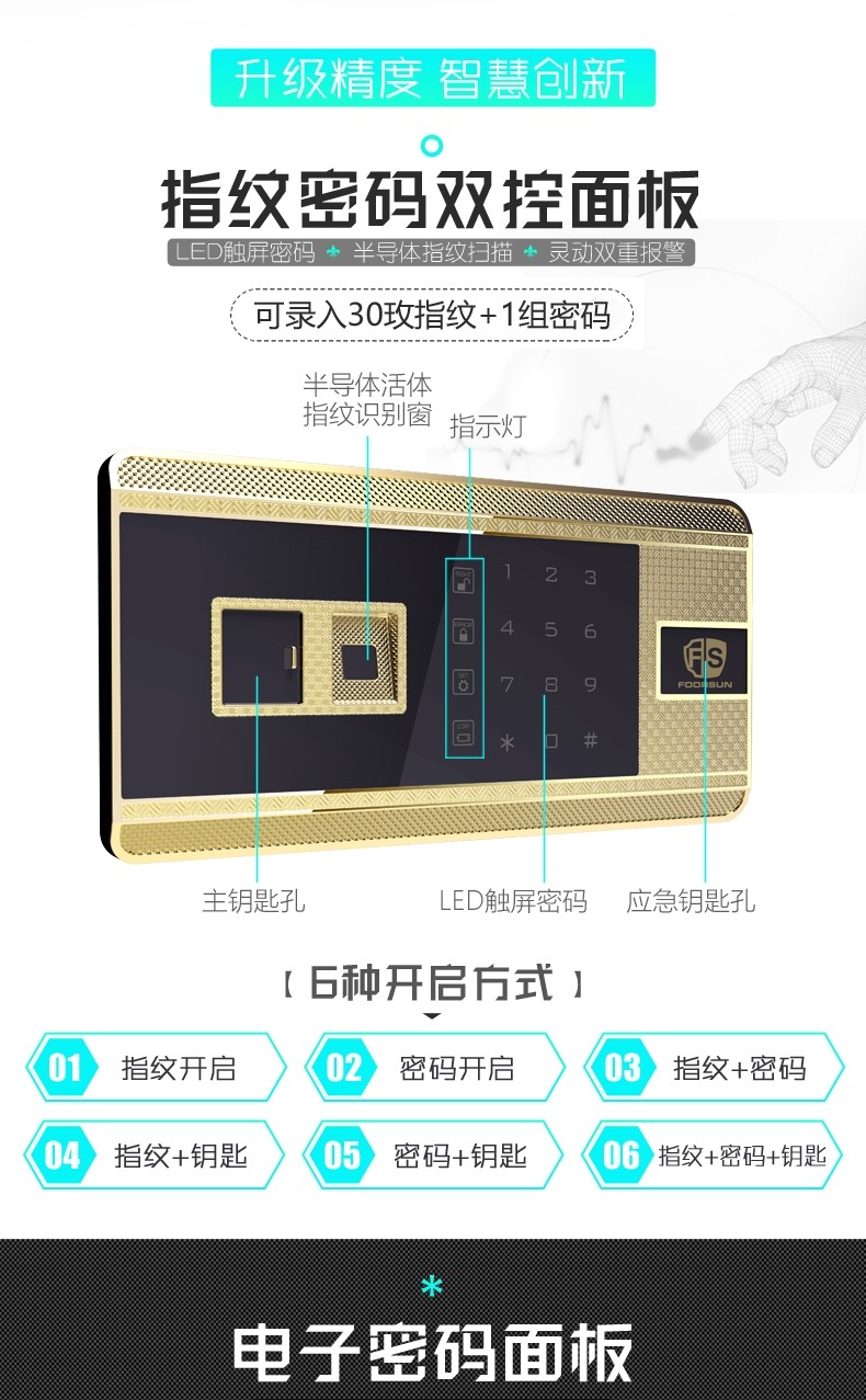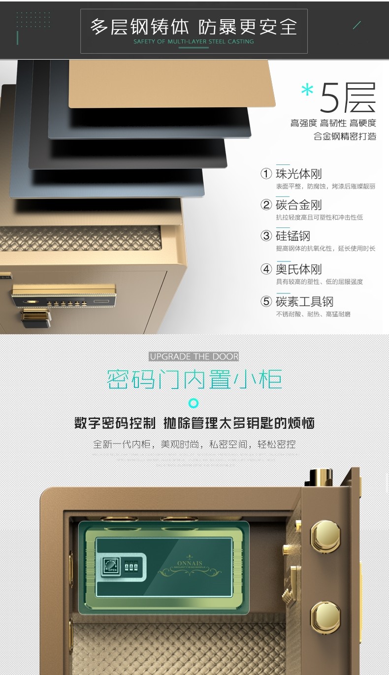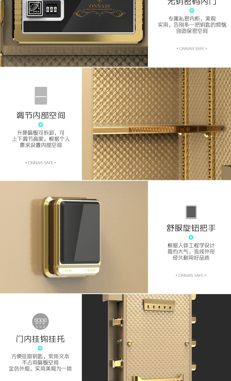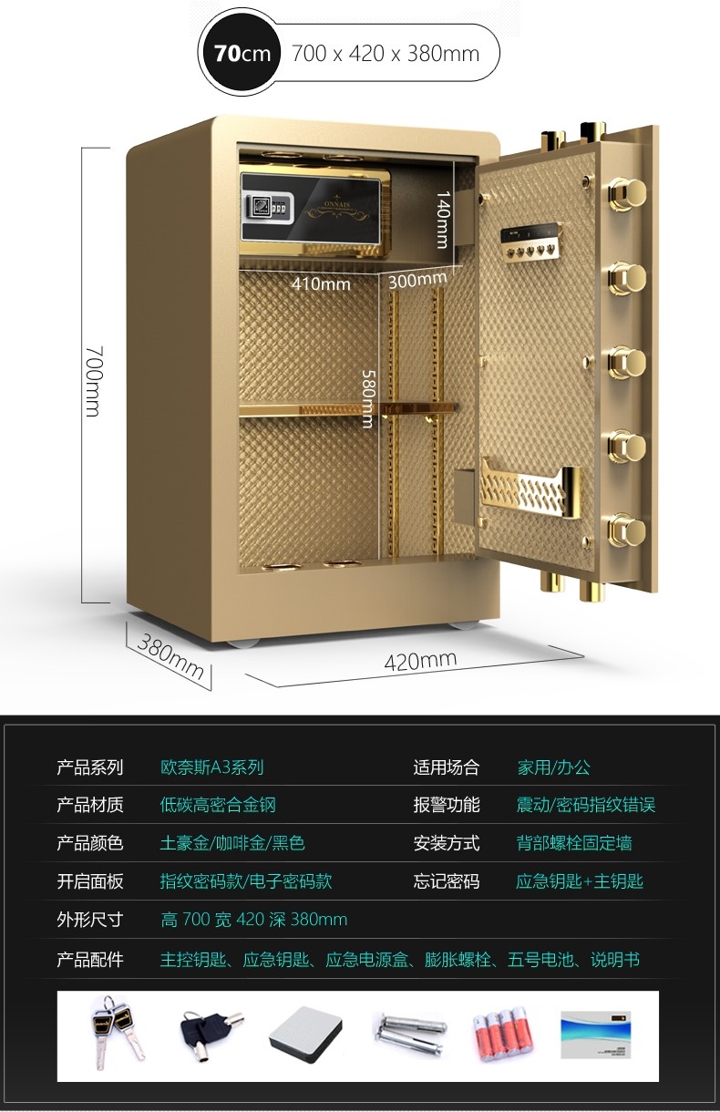 Onais All-Steel 70cm Fingerprint Password Safe Office In-Wall Safe Bedside Large Home Safe