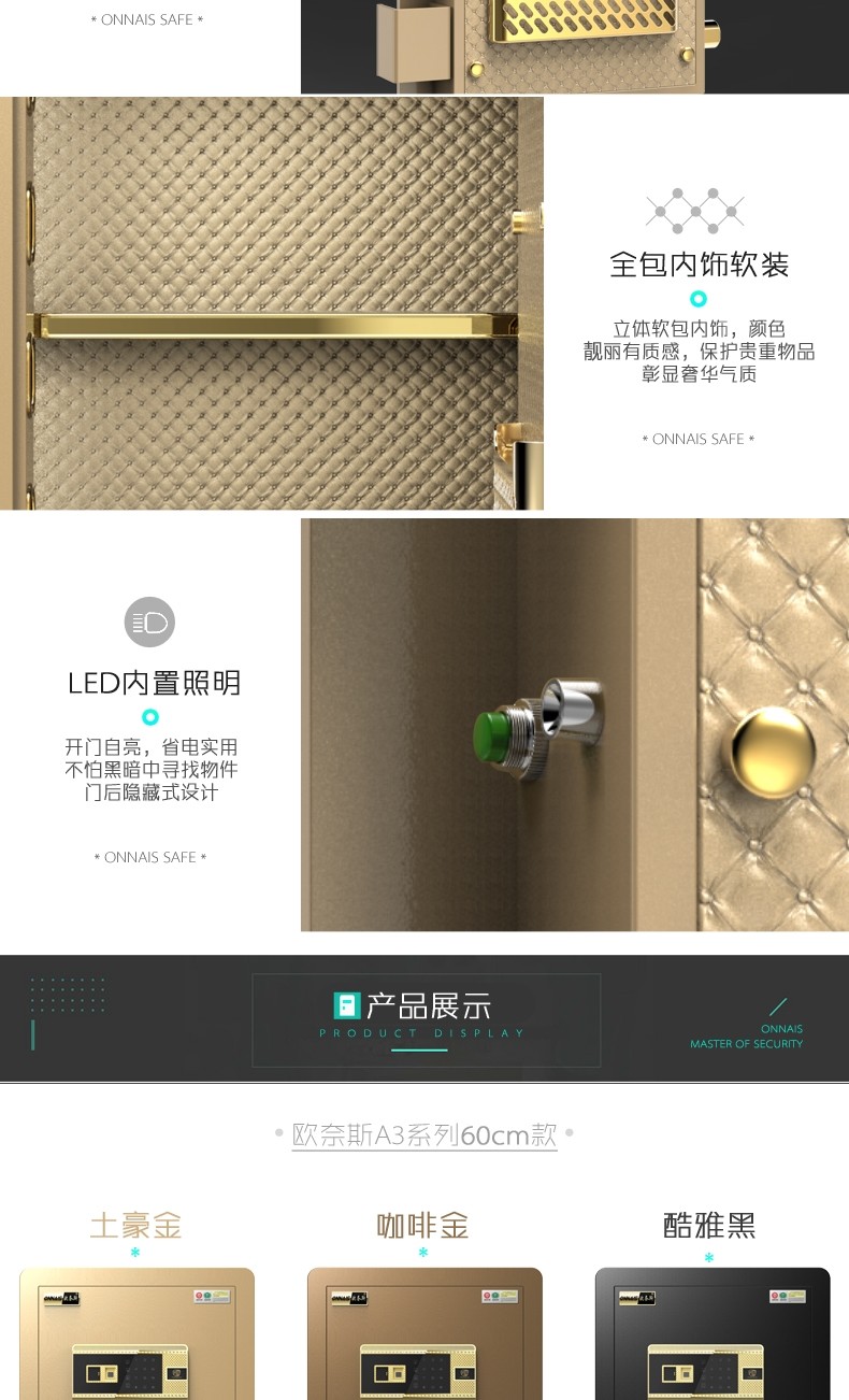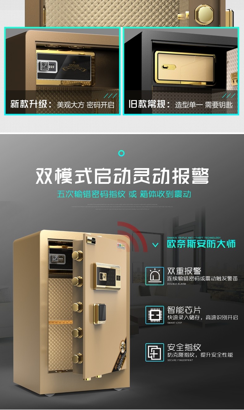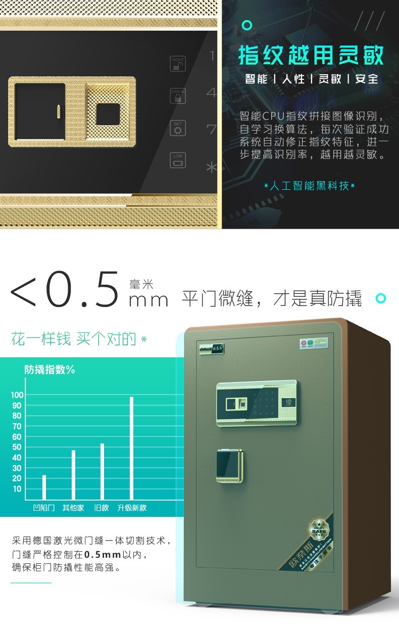 Onais All-Steel 70cm Fingerprint Password Safe Office In-Wall Safe Bedside Large Home Safe