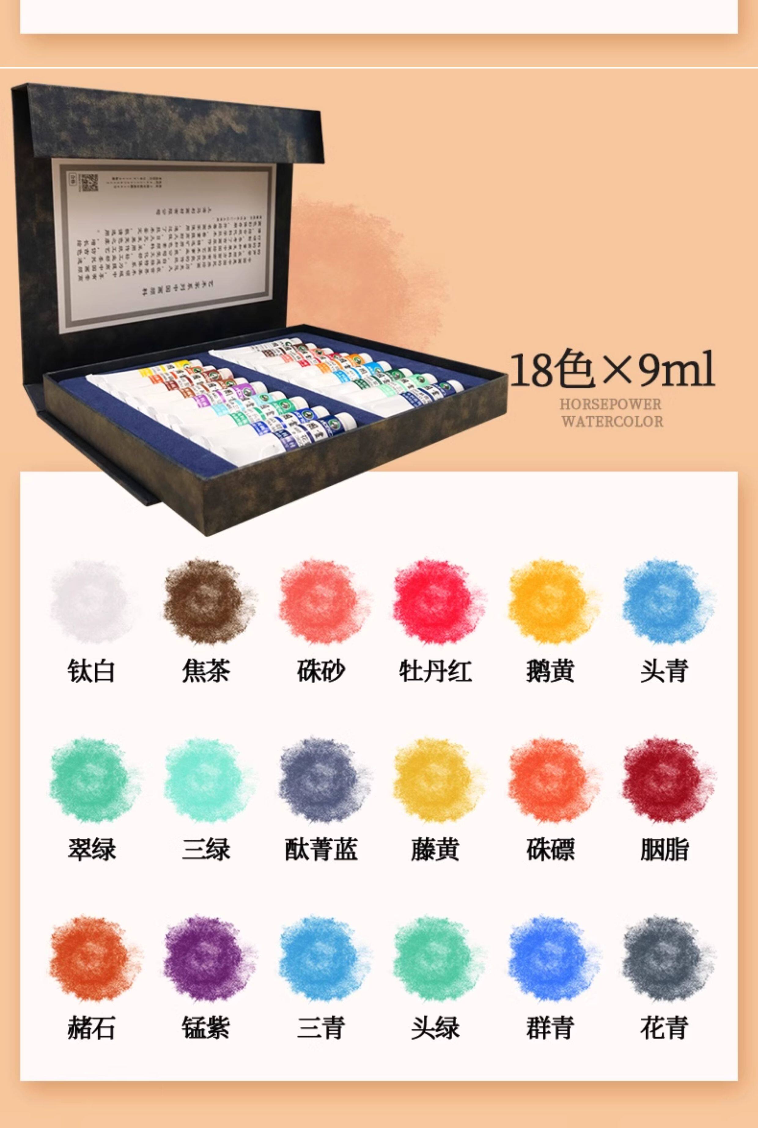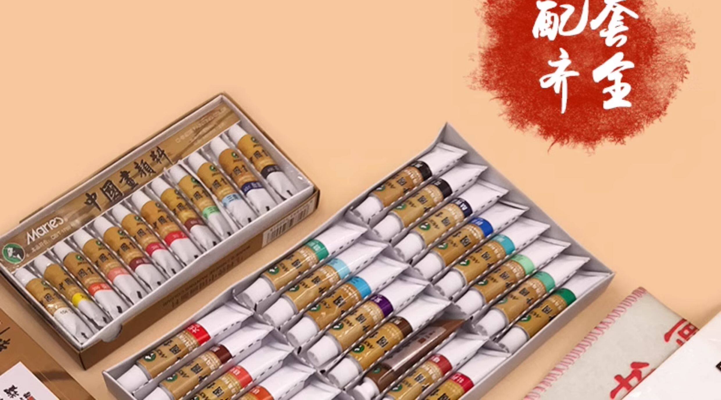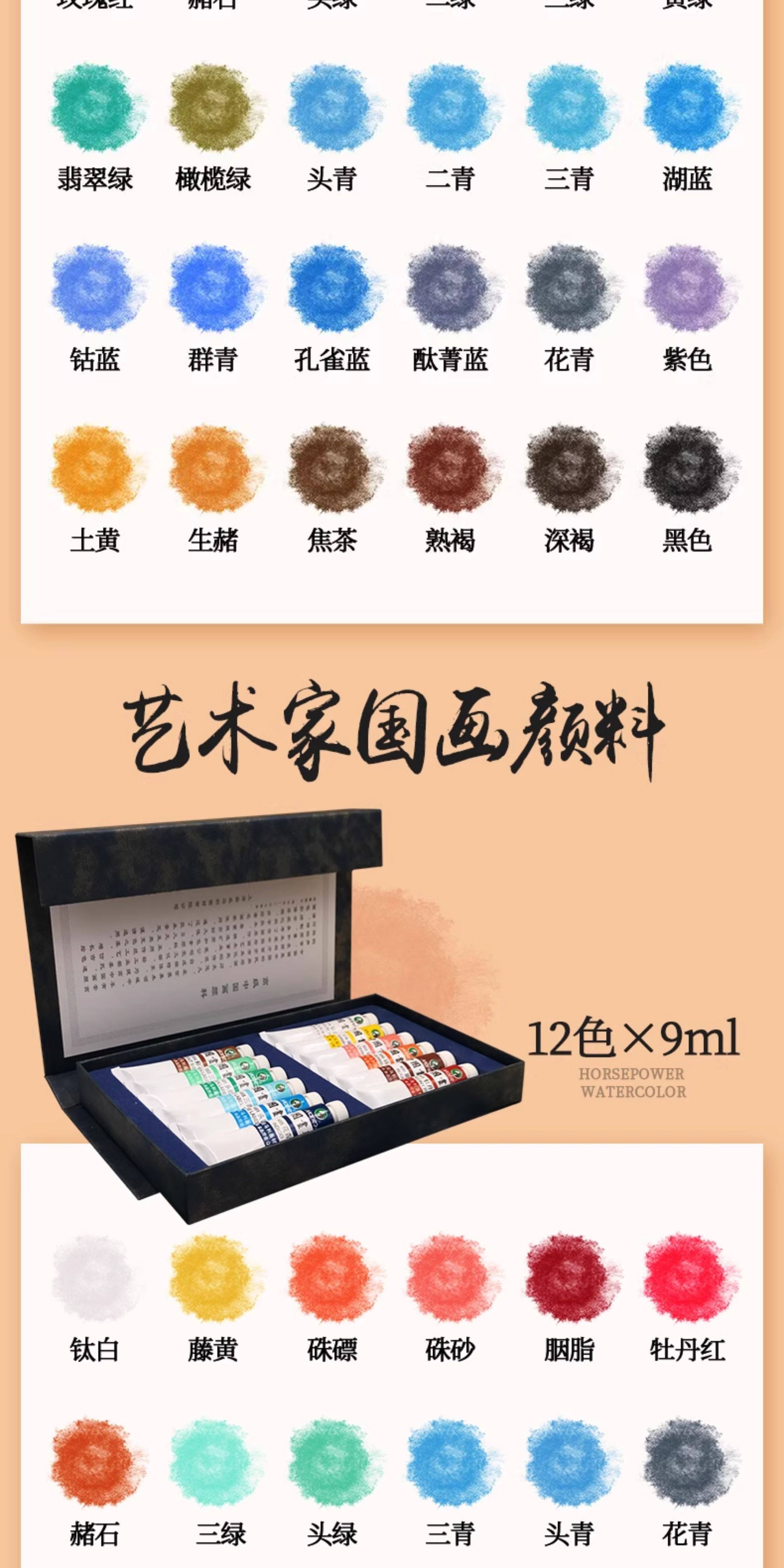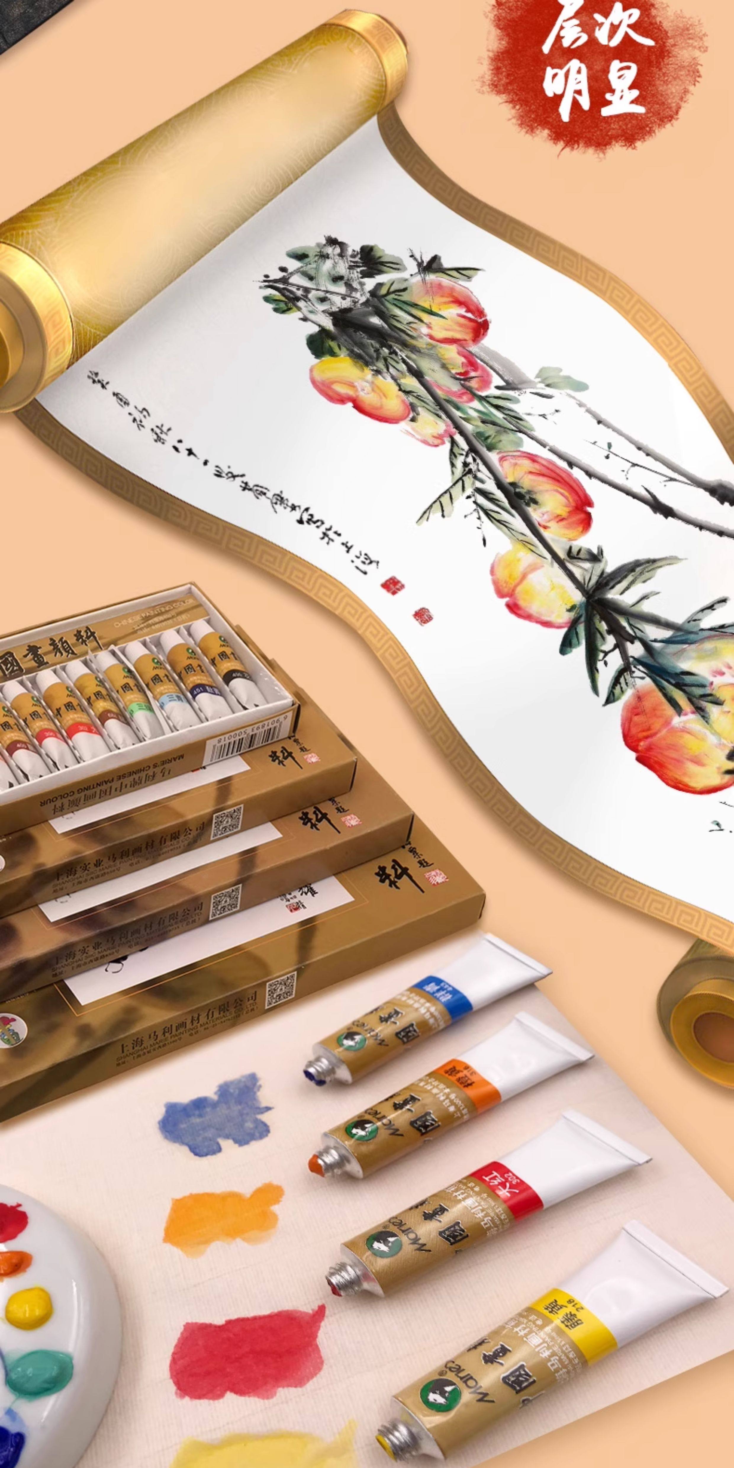 Marley Brand Chinese Painting Pigments 12 Colors 18 Colors 24 Colors 36 Colors Ink Painting Beginner's Starter Kit Fine Brush Painting Materials for Elementary School Students and Adults Single Brush Mineral Painting Materials Complete Set