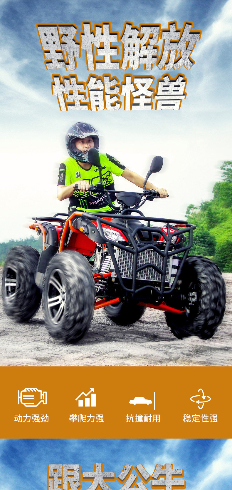 Big Bull Four-Wheel Drive Beach Vehicle Four-Wheel Off-Road Motorcycle Gasoline All-Terrain Mountain Bike Agricultural Vehicle Atv Cargo Box