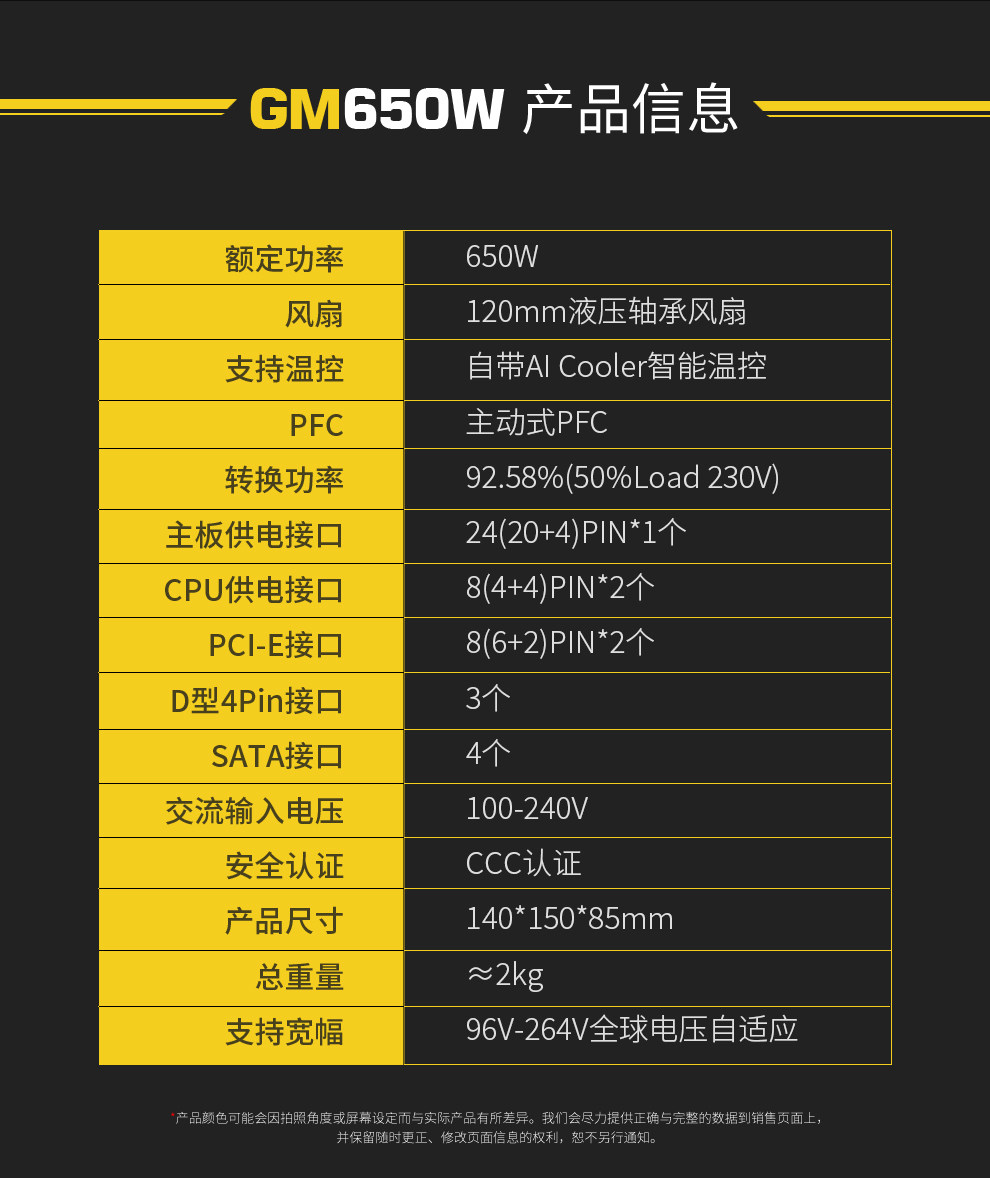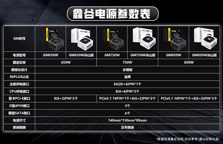 | Color Classification | [Three-Year Warranty] An550W (White Label Direct Release),[Three-Year Warranty] An650W (White Label Direct Release),[Three-Year Warranty] An750W (White Label Direct Release),[Five-Year Warranty] Gm650W (Gold Medal Full Module),[Five-Year Warranty] (Atx3.1) Gm750W (Gold Medal Full Module),[Five-Year Warranty] (Atx3.1) Gm850W (Gold Medal Full Module),【5-Year Warranty】Gn550W (Gold Direct Output),[Five-Year Warranty] Gn650W (Gold Medal Direct Release),[Five-Year Warranty] (Atx3.1) Gn750W (Gold Medal Direct Output),[Five-Year Warranty] (Atx3.1) Gn850W (Gold Medal Direct Output),[Three-Year Warranty] An550W Iceberg Edition (White Label Direct Release),[Three-Year Warranty] An650W Iceberg Edition (White Label Direct Release),[Three-Year Warranty] An750W Iceberg Edition (White Label Direct Release),[Five-Year Warranty] Gm650W Iceberg Edition (Gold Medal Full Module),[Five-Year Warranty] (Atx3.1) Gm750W Iceberg Edition (Gold Medal Full Module),[Five-Year Warranty] (Atx3.1) Gm850W Iceberg Edition (Gold Medal Full Module),[Three-Year Warranty] Am650W (White Label Full Module),[Three-Year Warranty] Am650W Iceberg Edition (White Label Full Module),[Three-Year Warranty] Am750W (White Label Full Module),[Three-Year Warranty] Am750W Iceberg Edition (White Label Full Module),[Three-Year Warranty] Am850W Iceberg Edition (White Label Full Module) (Standard Pcie5.1 Cable),[Three-Year Warranty] Am850W (White Label Full Module) (Standard Pci5.1 Cable),[Three-Year Warranty] Am1000W (White Label Full Module) (Standard Pci5.1 Cable),[Five-Year Warranty] (Atx3.1) Gm1000W Iceberg Edition (Gold Medal Full Module),[Five-Year Warranty] (Atx3.1) Gm1250W (Gold Medal Full Module),[Three-Year Warranty] Endless N650W (White Label Direct Release),[Five-Year Warranty] (Atx3.1) Gm1000W (Gold Medal Full Module),[Five-Year Warranty] (Atx3.1) Unbounded P850W Pro Iceberg Edition Full-Modular Platinum Power Supply, All Japanese Capacitors,[Five-Year Warranty] (Atx3.1) Unbounded P850W Pro Full-Modular Platinum Power Supply, All Japanese Capacitors,[Five-Year Warranty] Gp500W Black Gold Version (Gold Japanese Capacitor),[Five-Year Warranty] Gp600W Black Gold Version (Gold Japanese Capacitor) |
