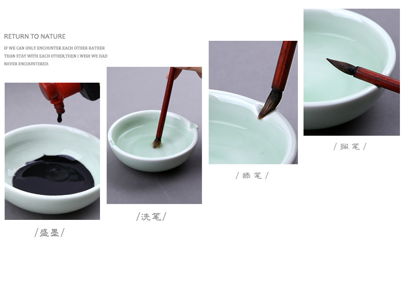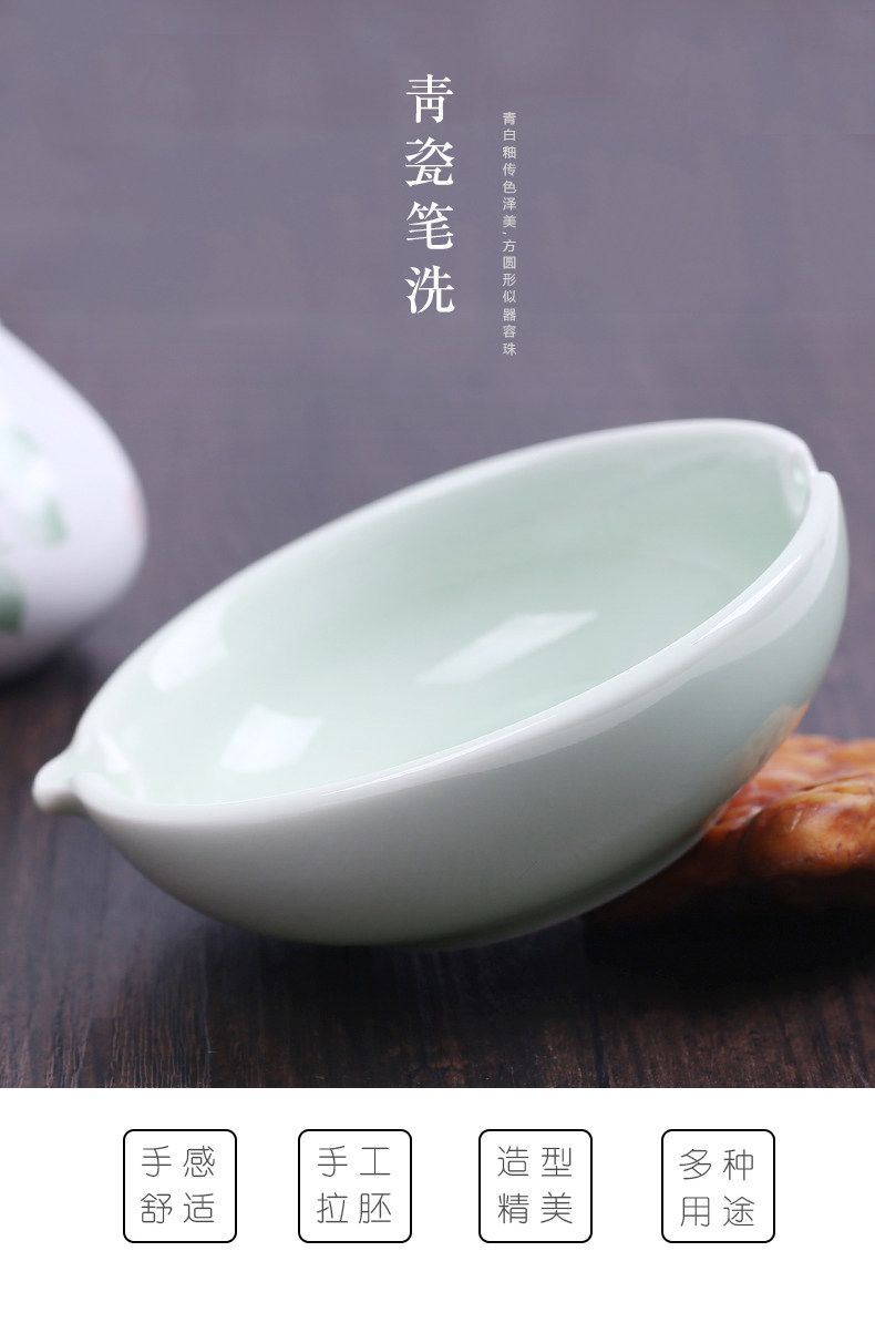 Multifunctional Celadon Pen Washer, Ceramic Small Inkstone, Student Study Supplies, Calligraphy Supplies, Pen Rest, Ink Container, Pen Washer