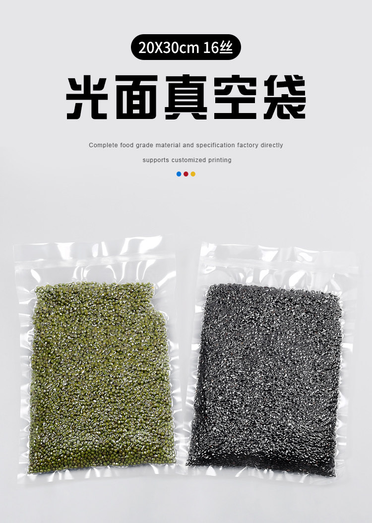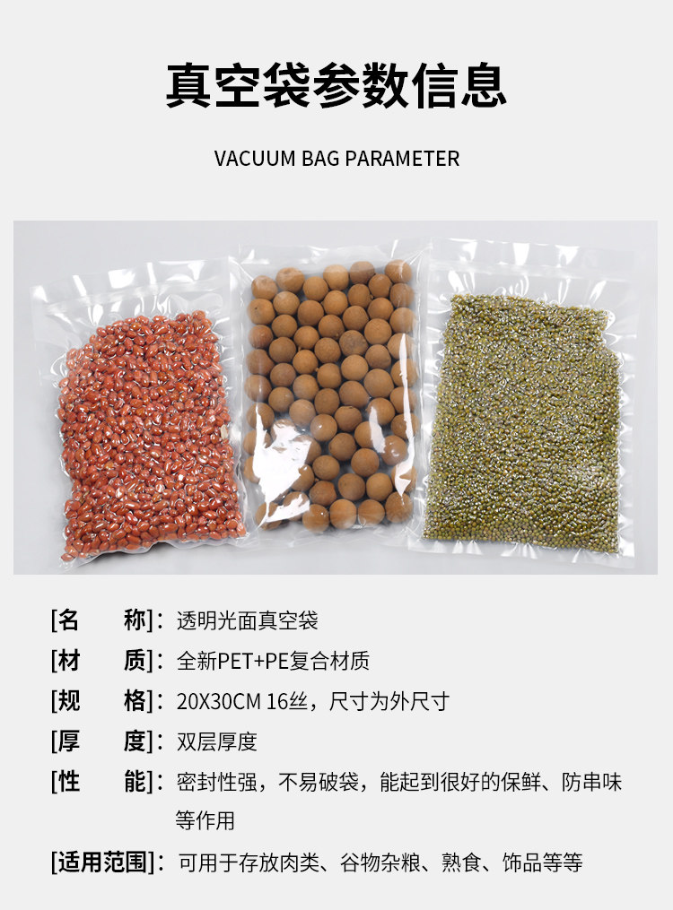 20×30cm 16-Micron Vacuum Food Bags for Grains, Pig's Trotters, and Marinated Products, Packaging Bags, Fresh-Keeping Bags, Commercial Glossy Surface